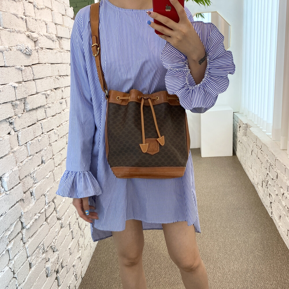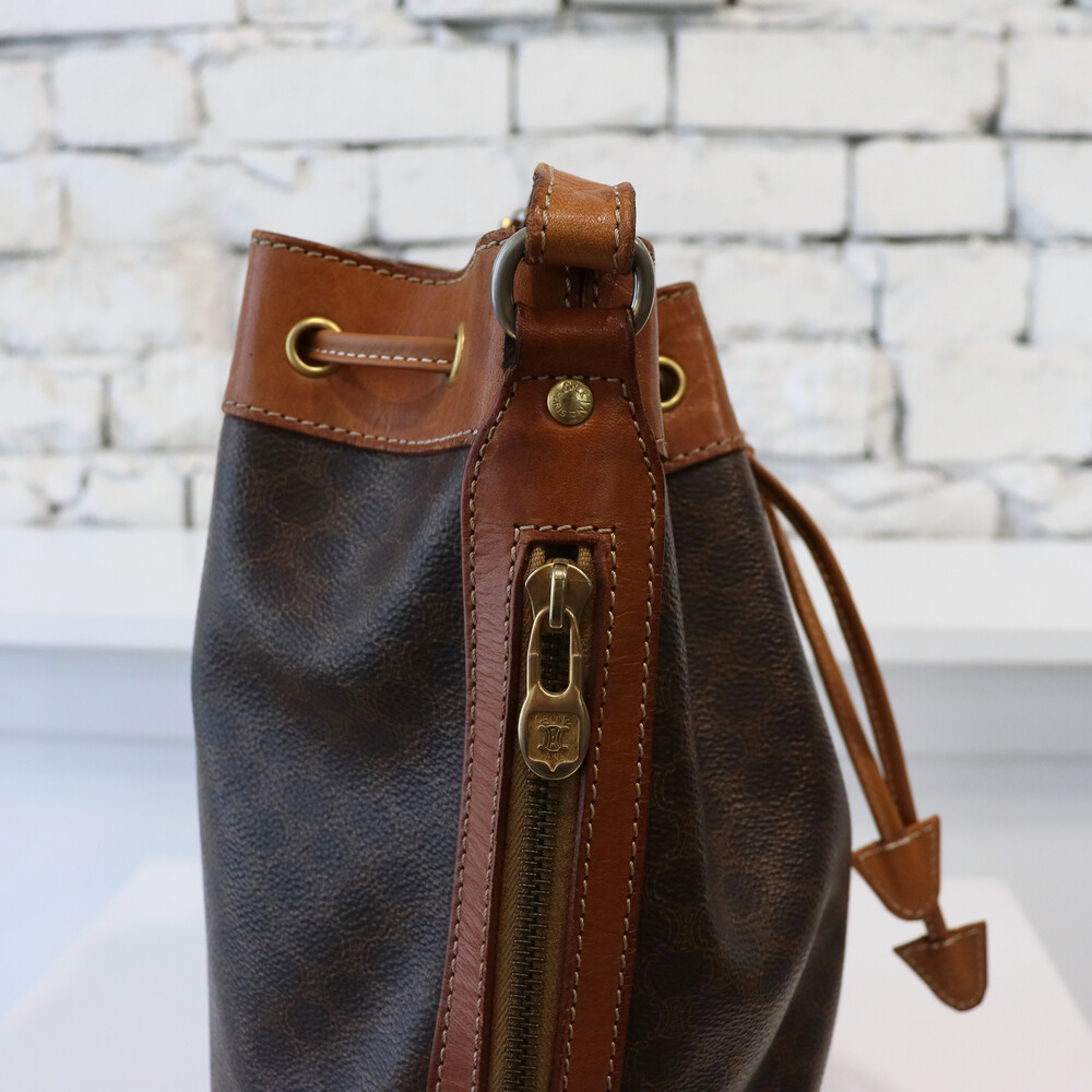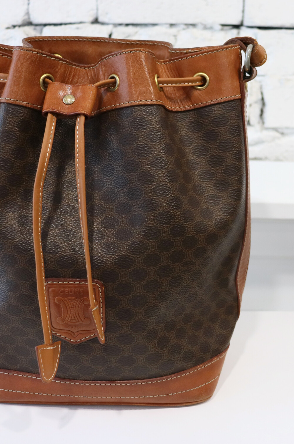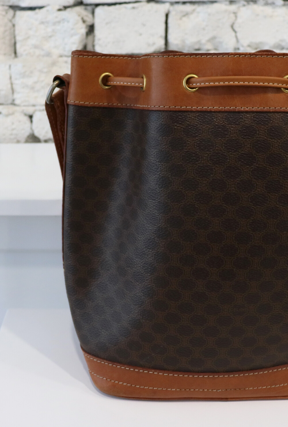 부드러운 셀린느 시그니처 마카담 바디와 에이징 된 브라운 톤의 가죽 트림이