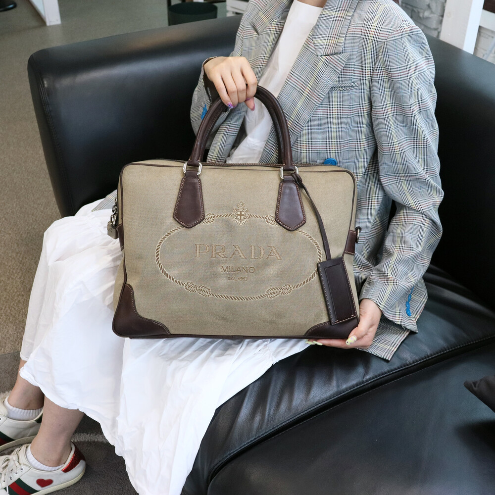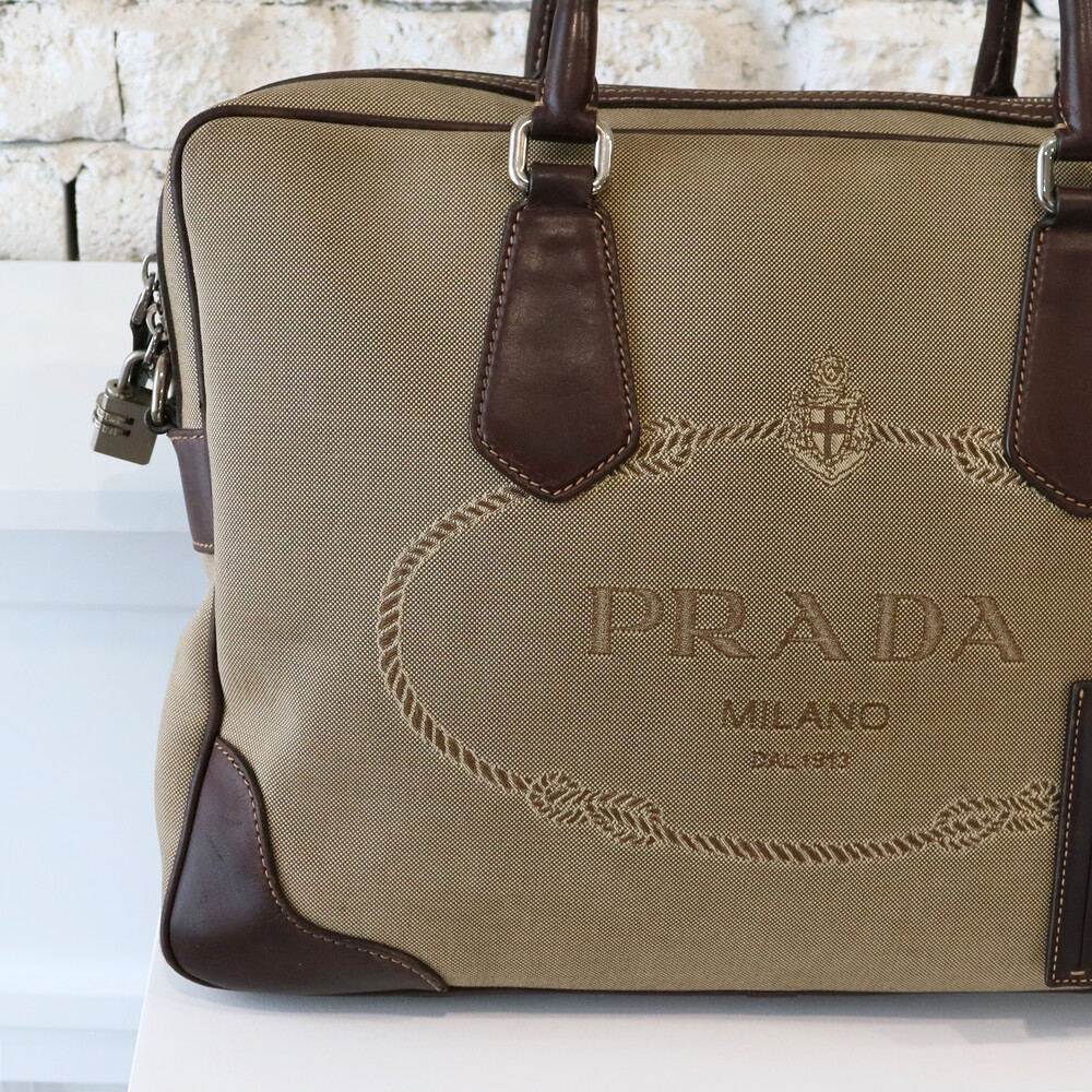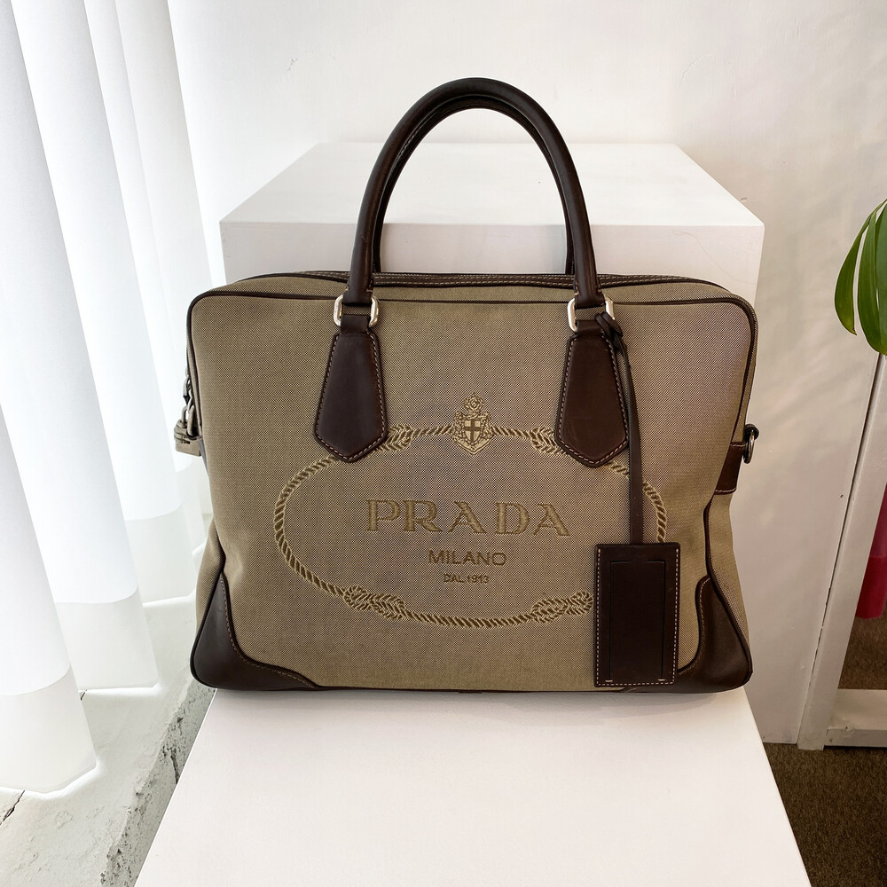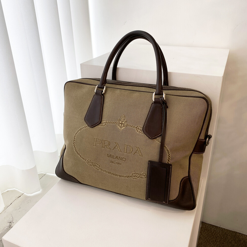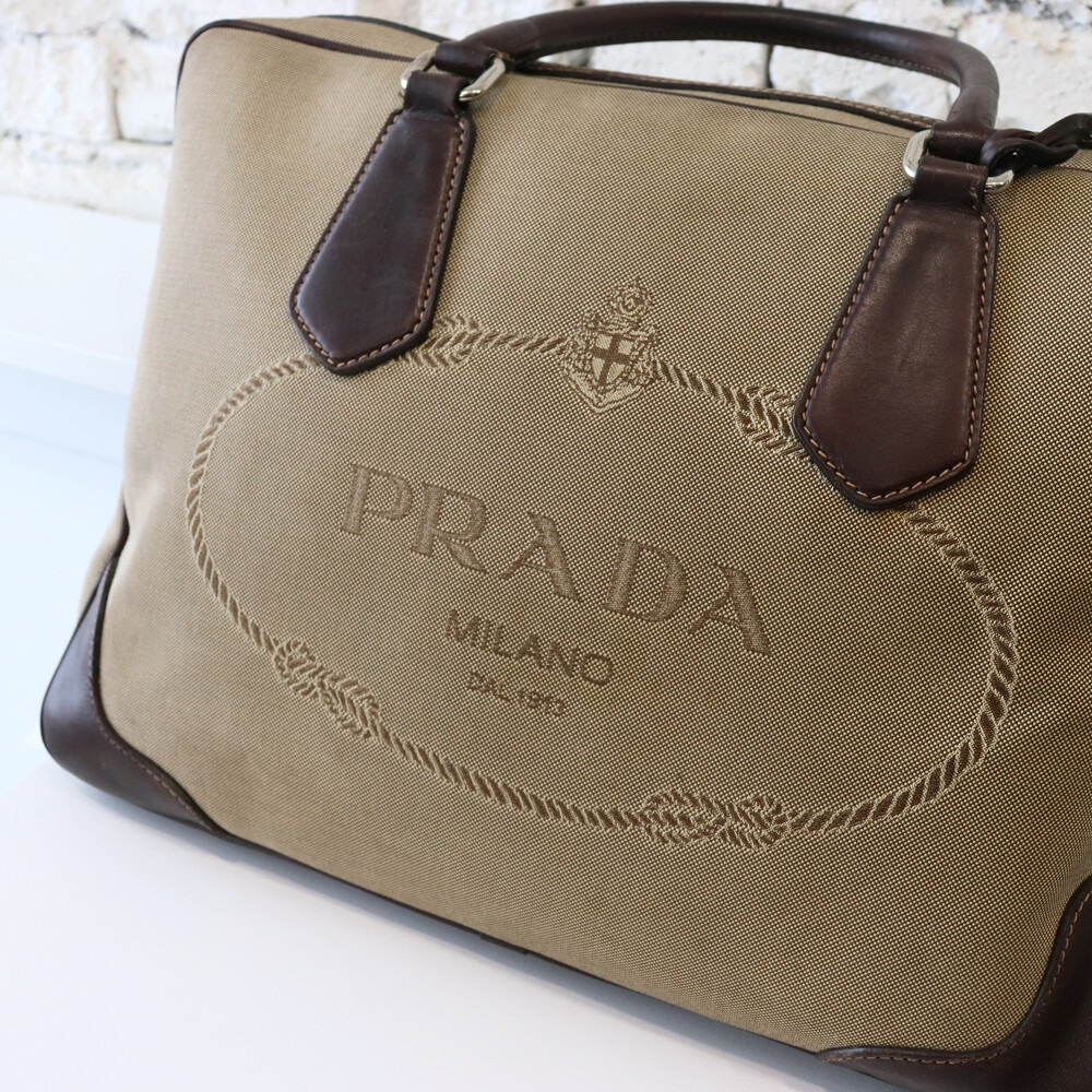 빈티지 프라다 자가드 캔버스 토트백입니다.