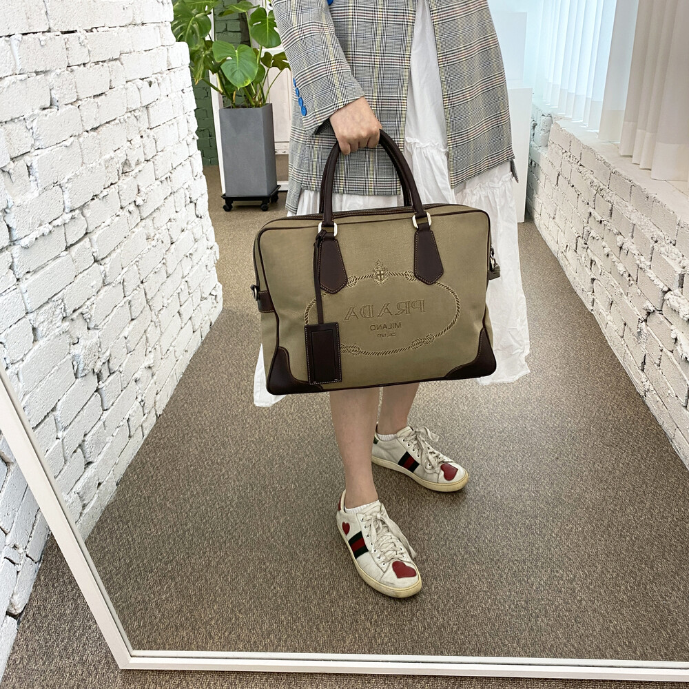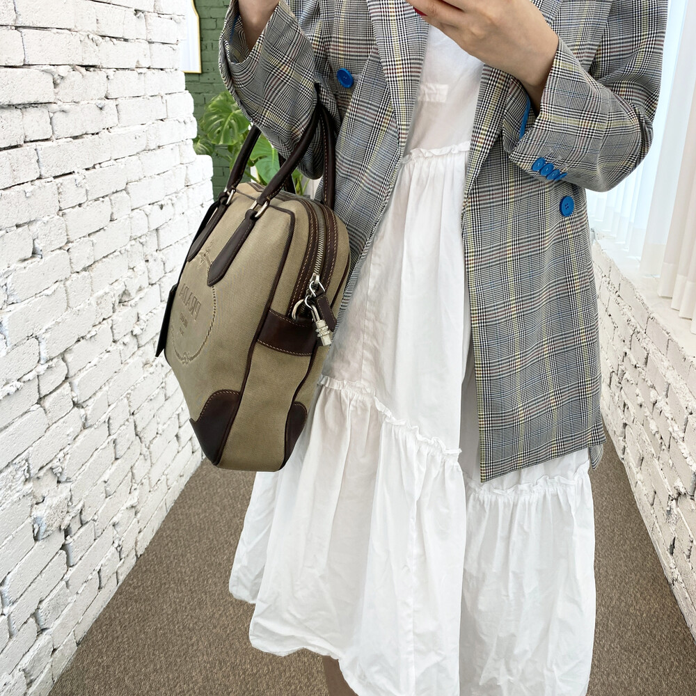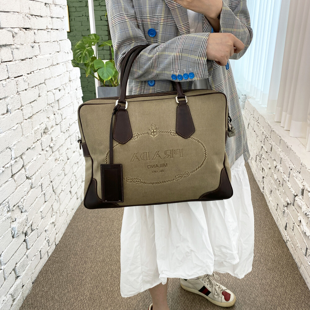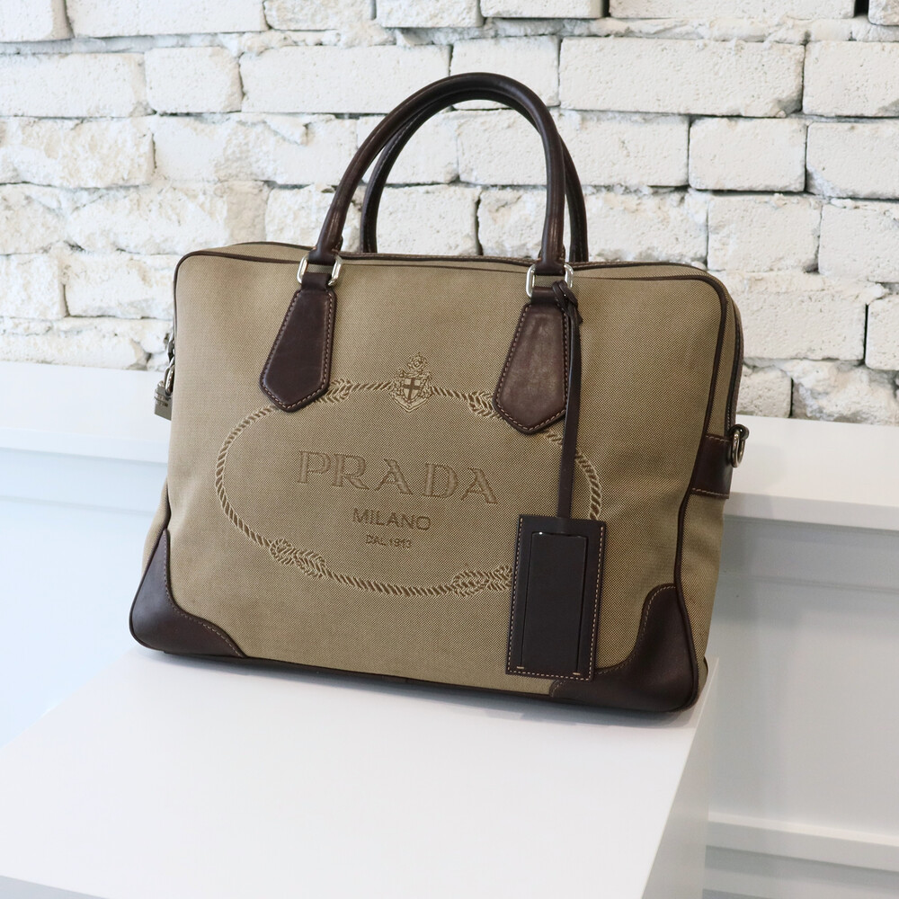 빈티지 프라다 자가드 캔버스 토트백입니다.