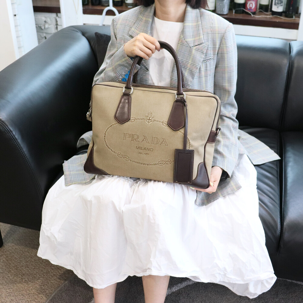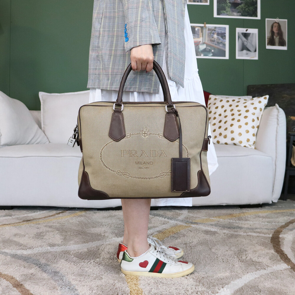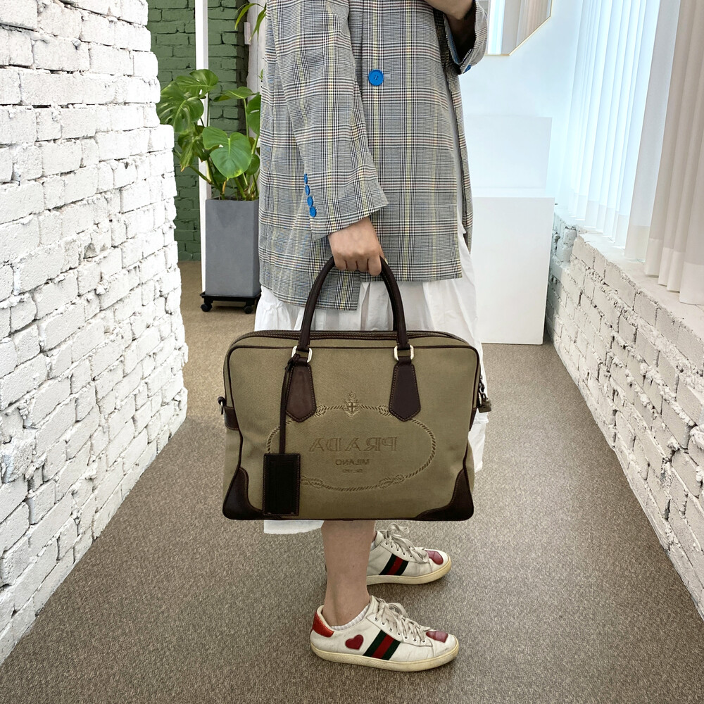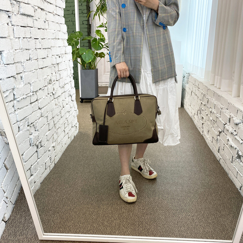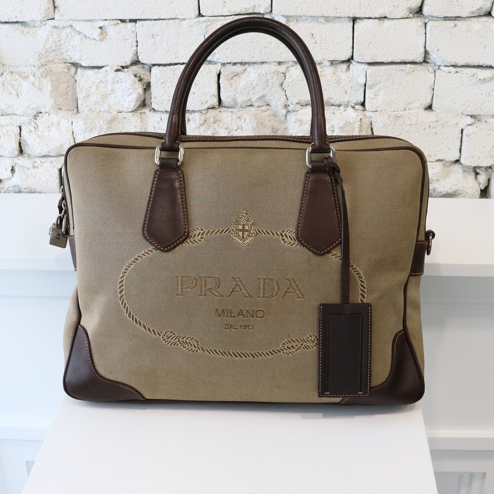 빈티지 프라다 자가드 캔버스 토트백입니다.