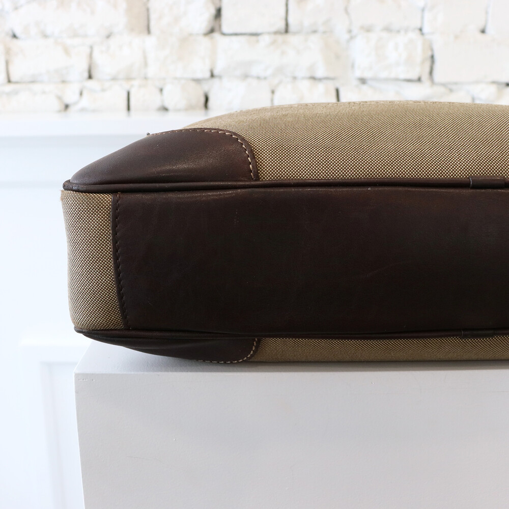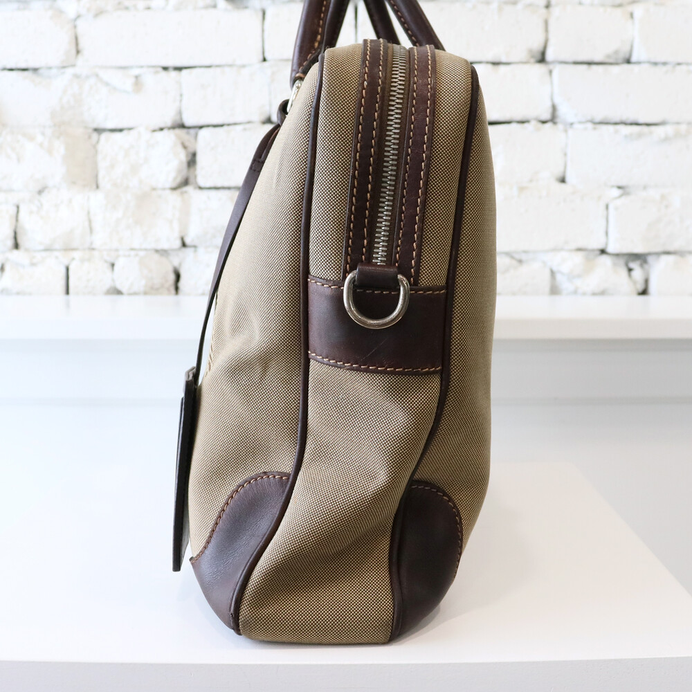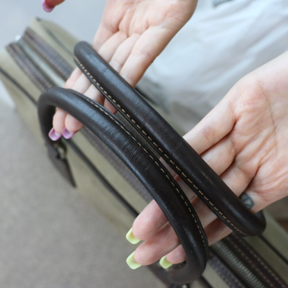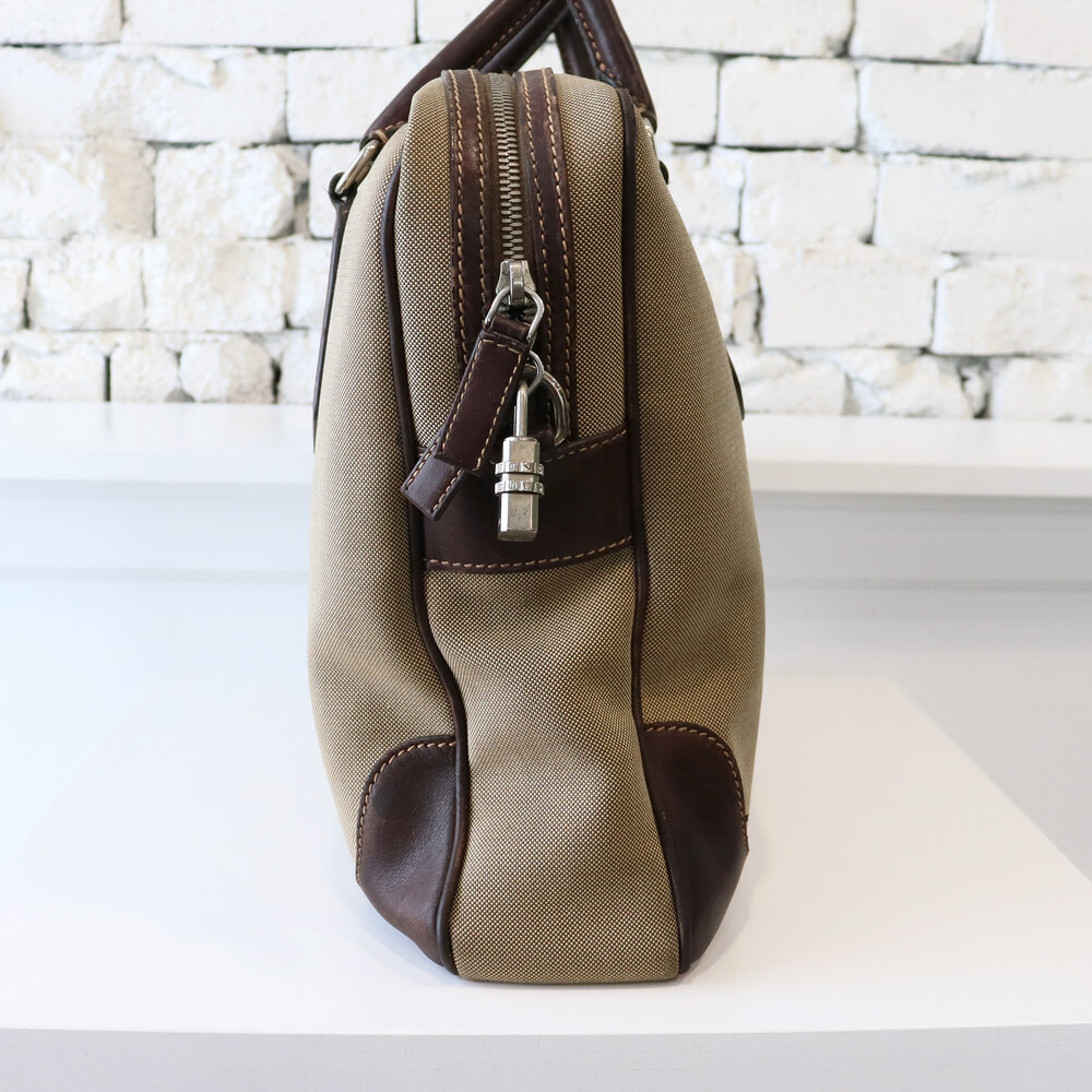 클래식한 베이지 톤의 캔버스 바디와 다크 브라운 톤의 빈티지한 가죽 트림,
