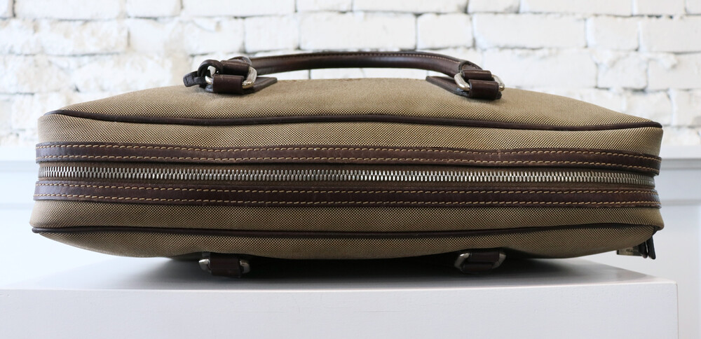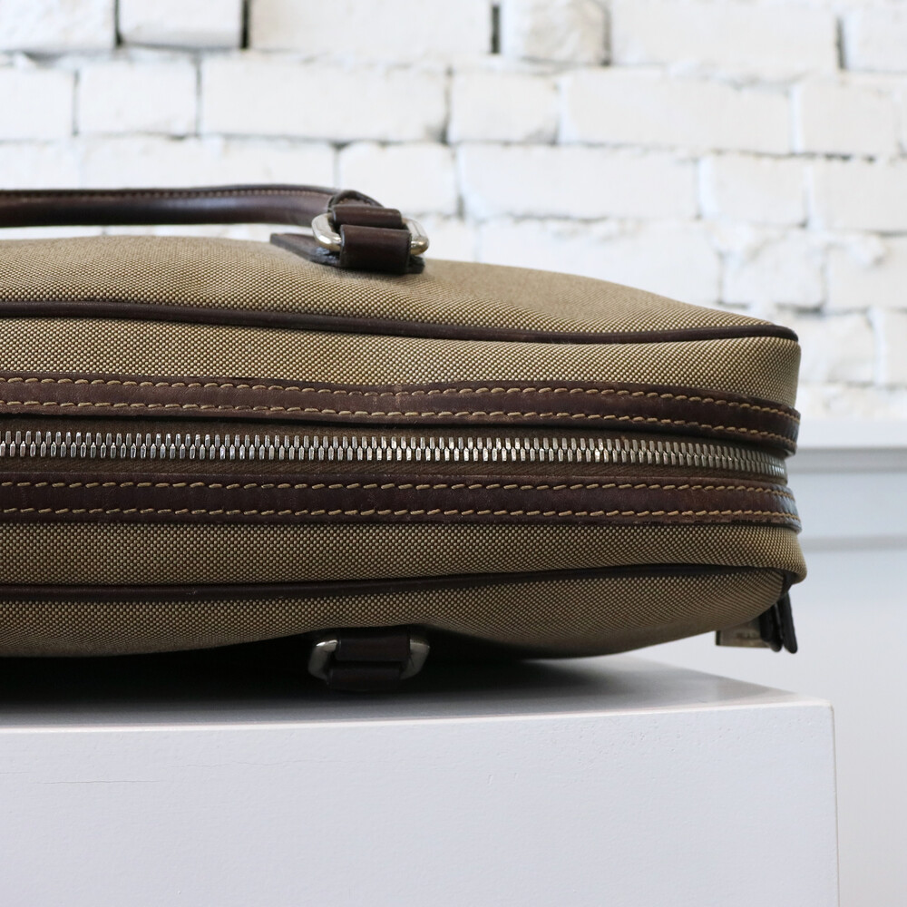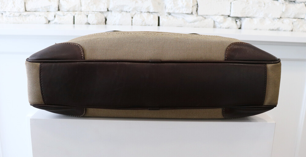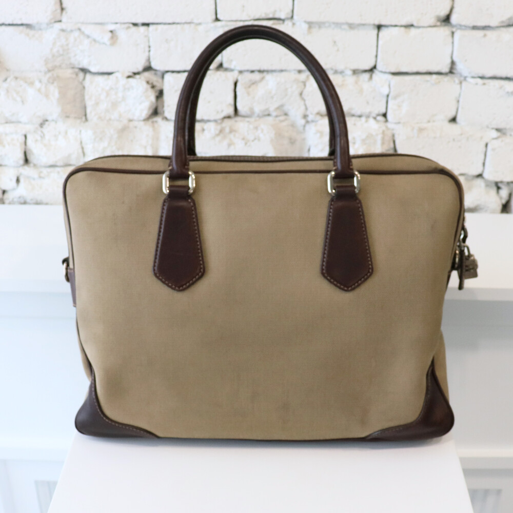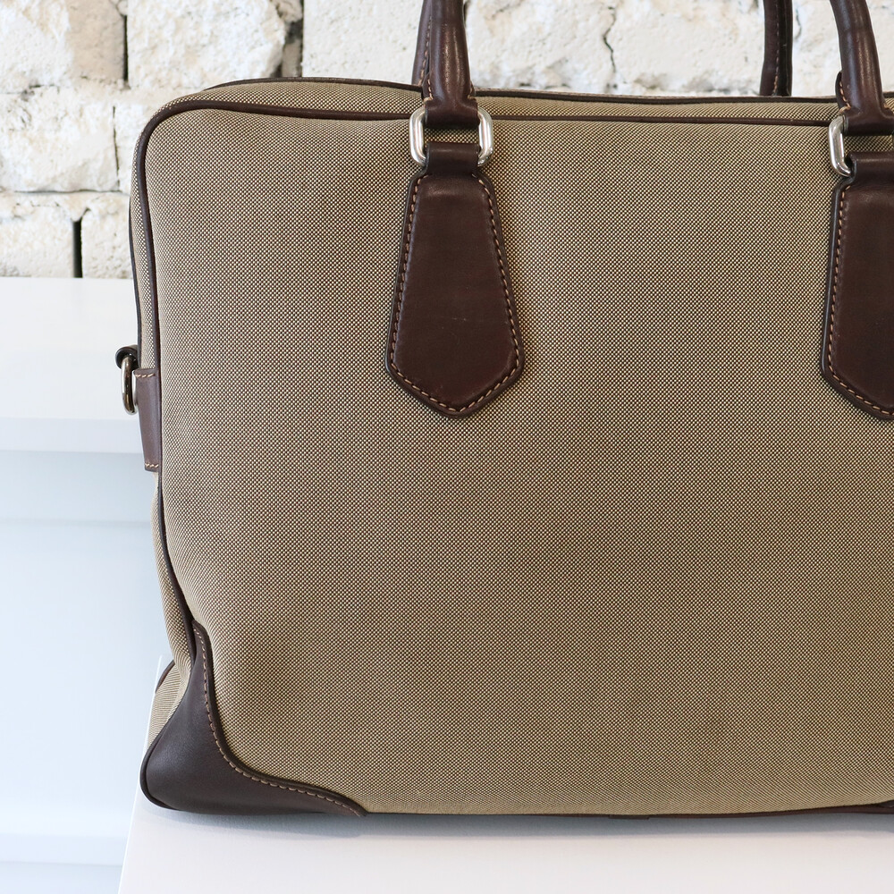 클래식한 베이지 톤의 캔버스 바디와 다크 브라운 톤의 빈티지한 가죽 트림,