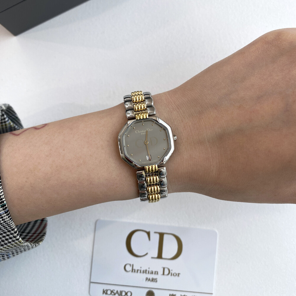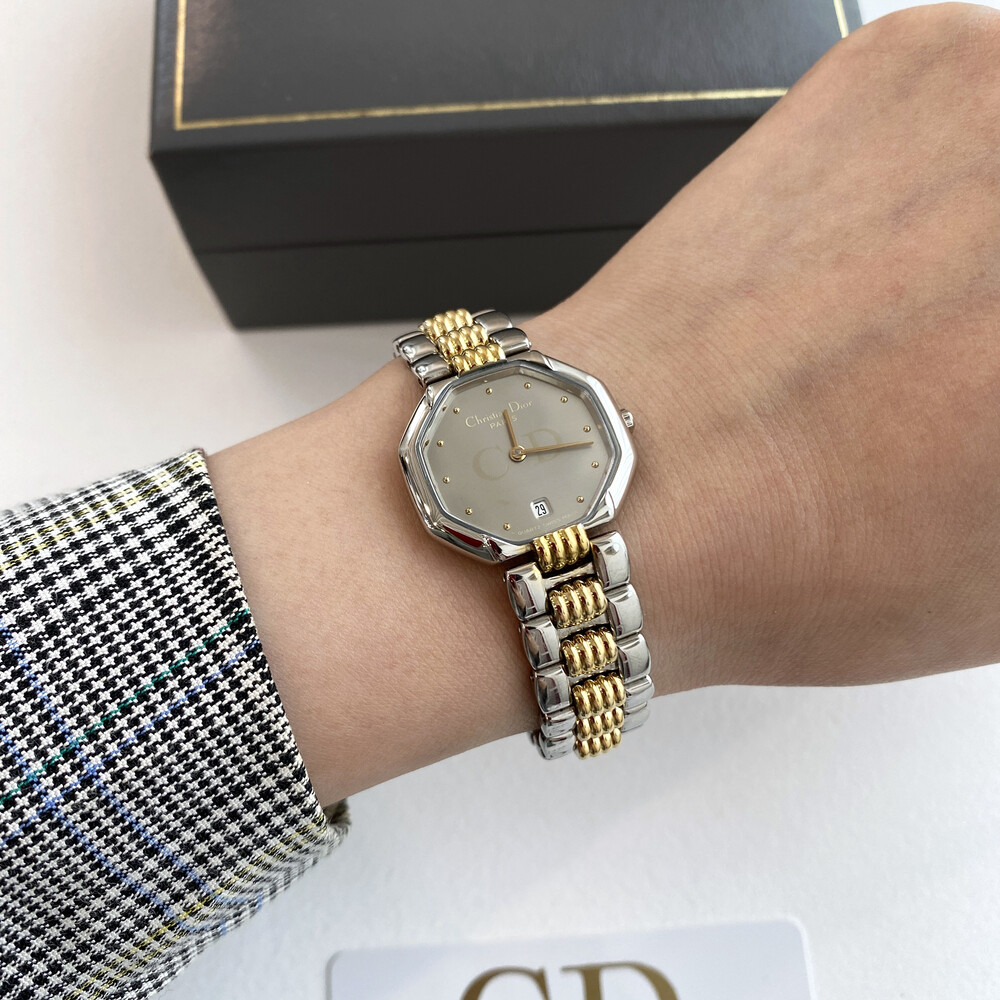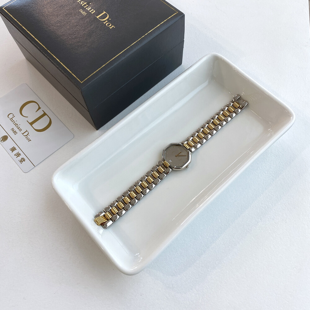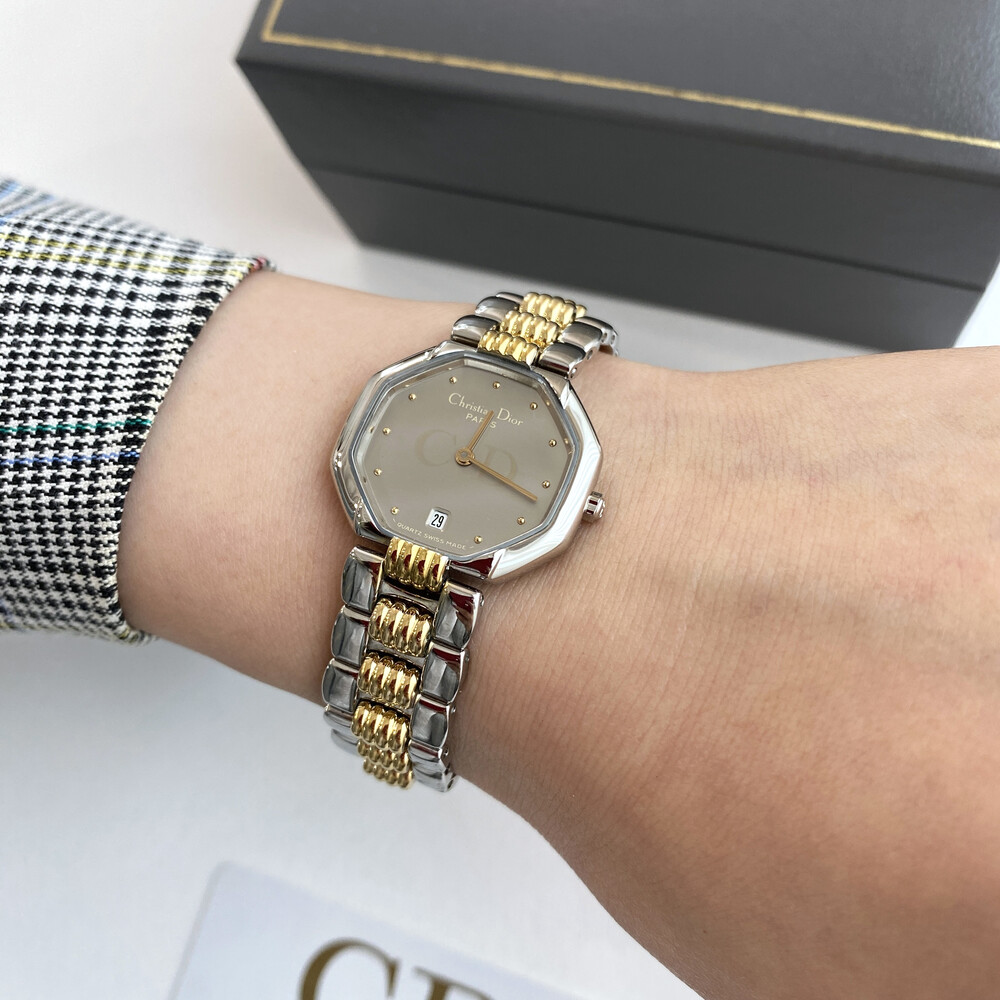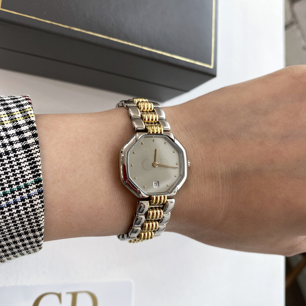 여성용으로 제작된 빈티지 디올 시계이며 스위스에서 생산된 쿼츠 무브먼트로 제작되었습니다.