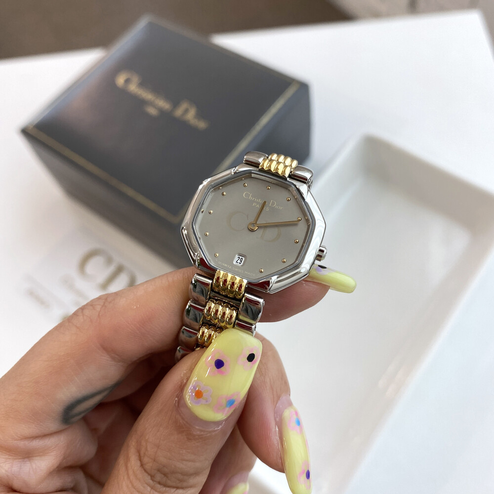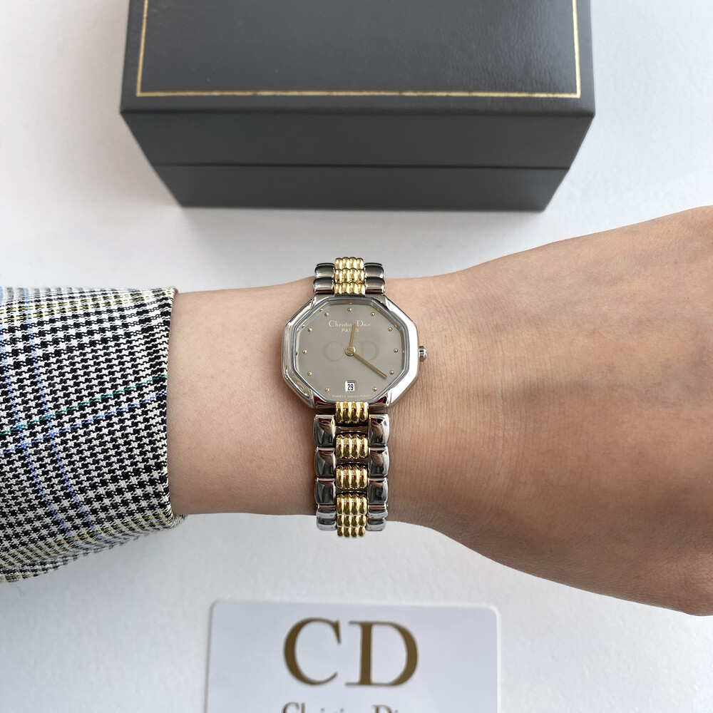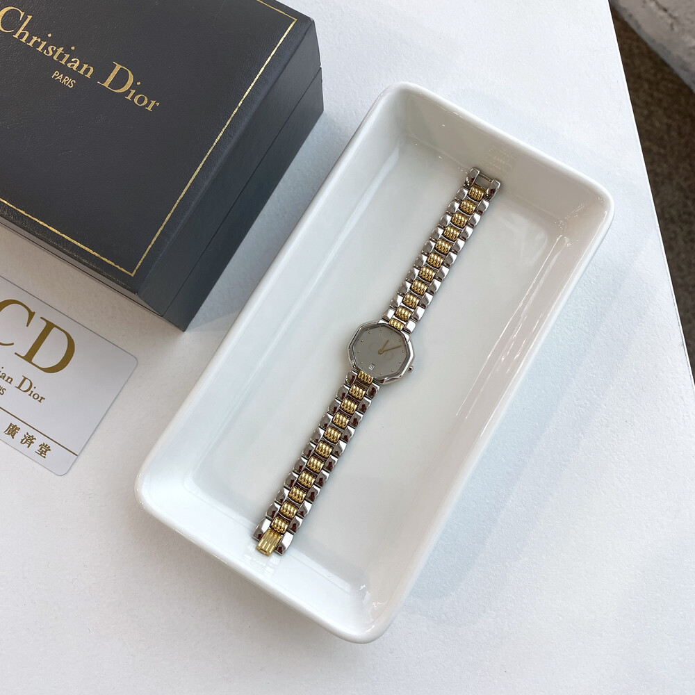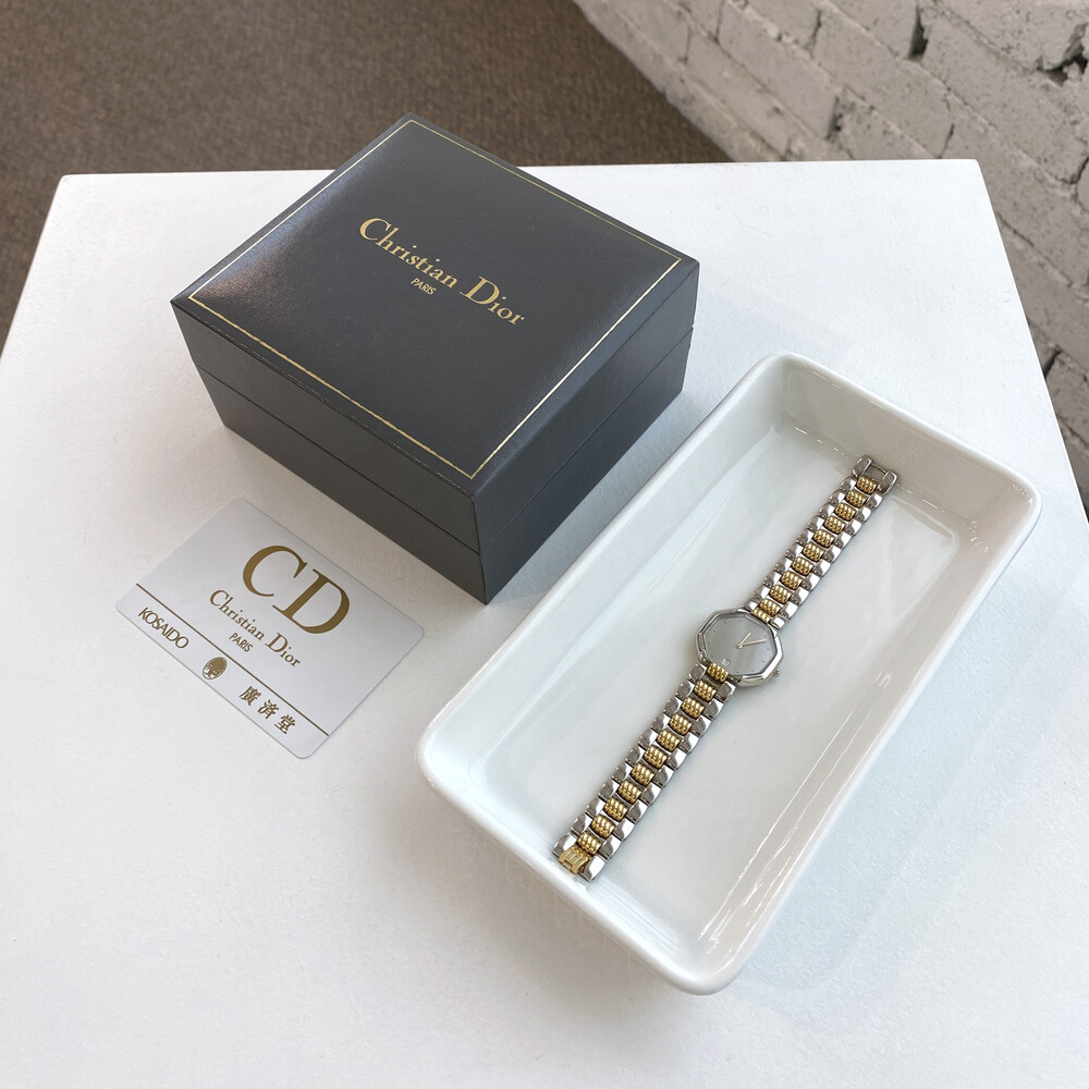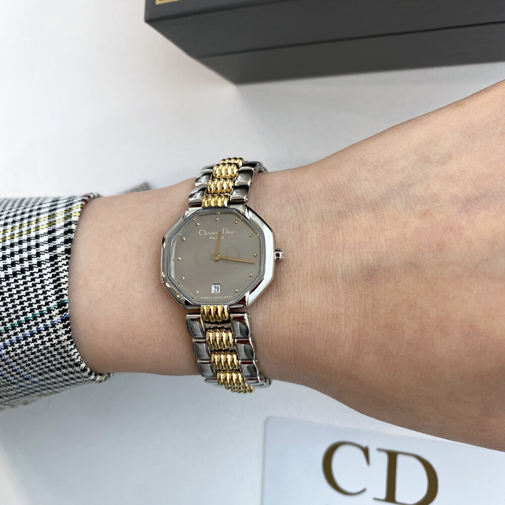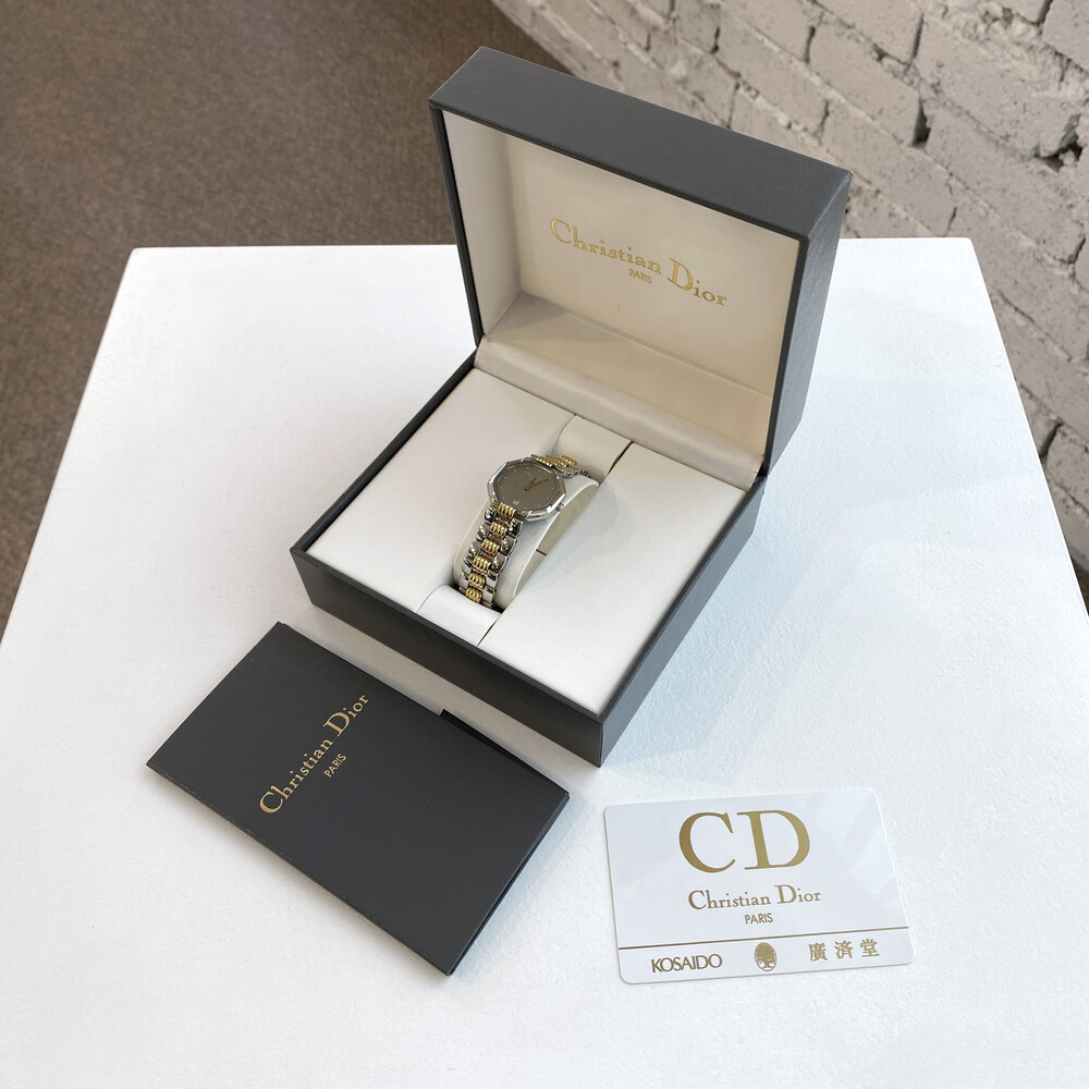 여성용으로 제작된 빈티지 디올 시계이며 스위스에서 생산된 쿼츠 무브먼트로 제작되었습니다.