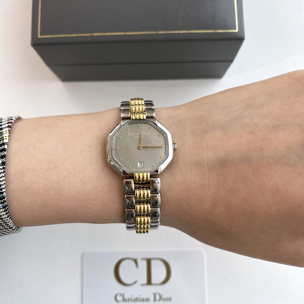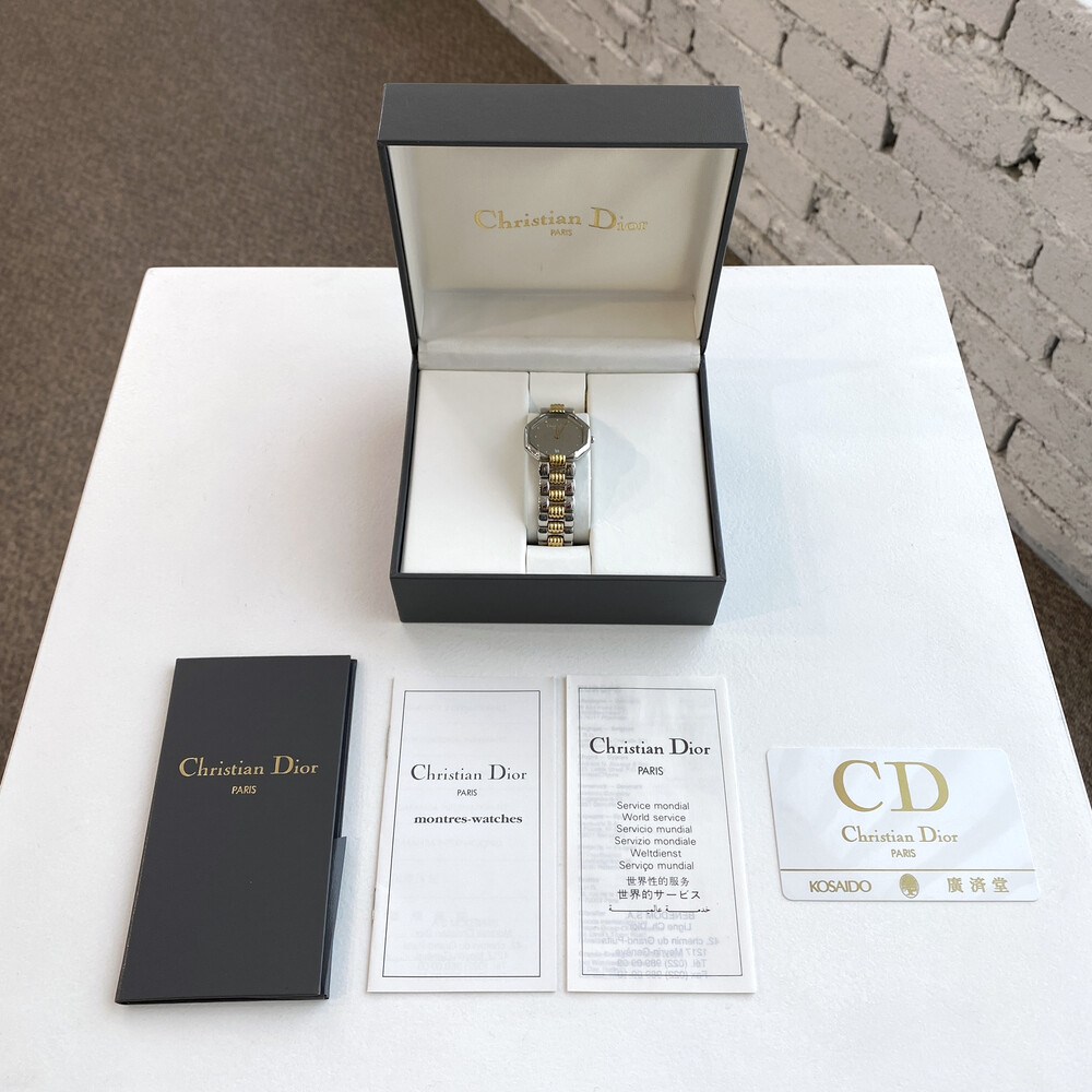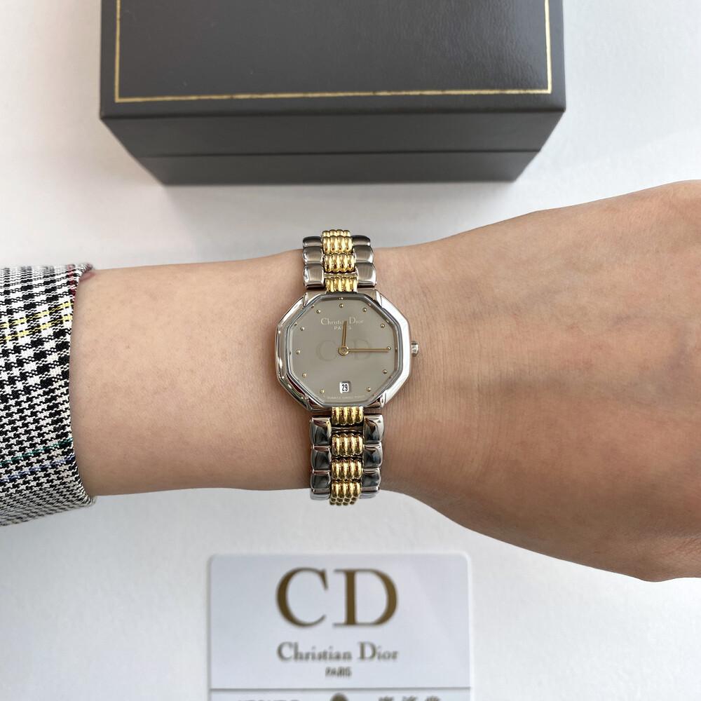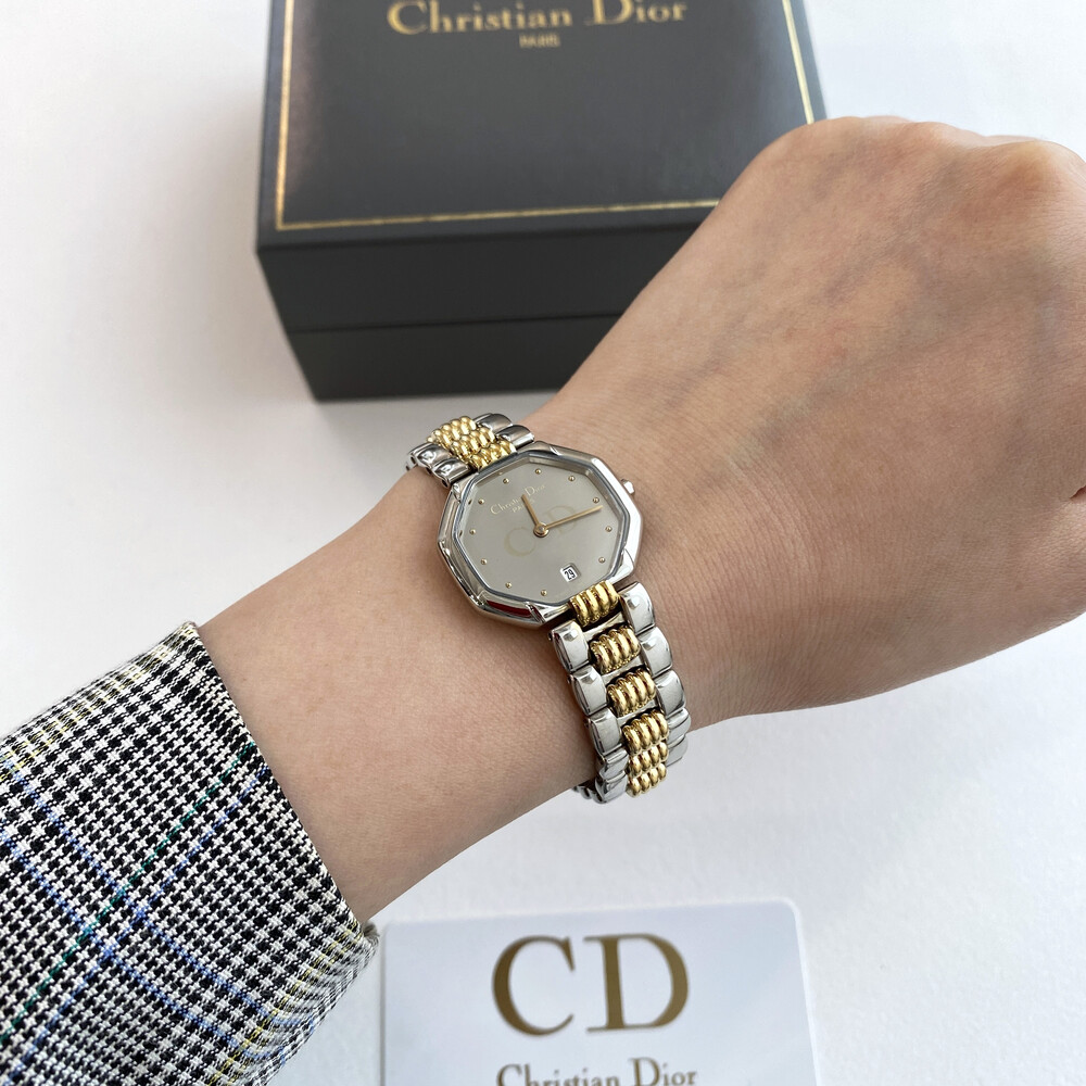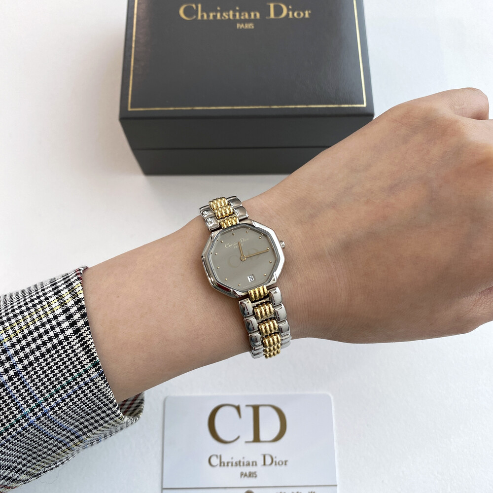 여성용으로 제작된 빈티지 디올 시계이며 스위스에서 생산된 쿼츠 무브먼트로 제작되었습니다.