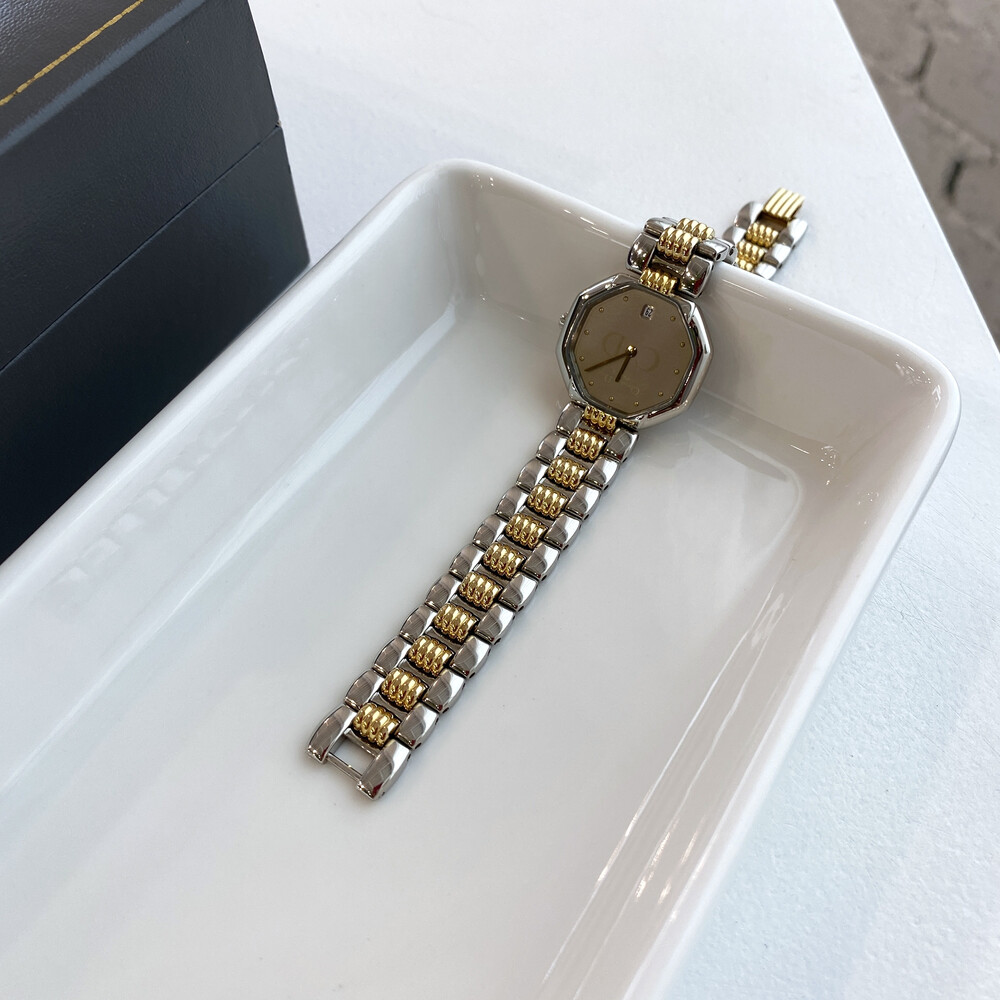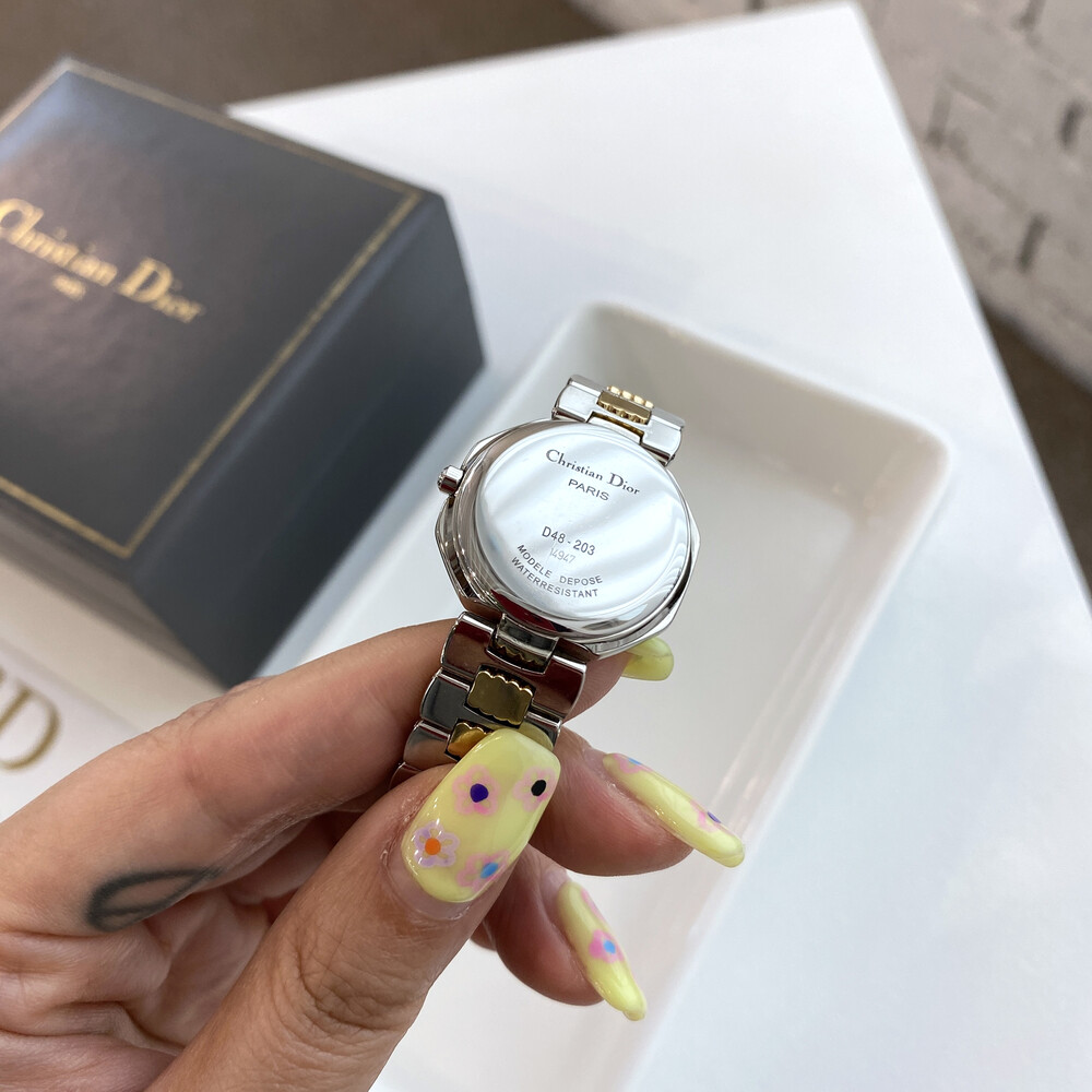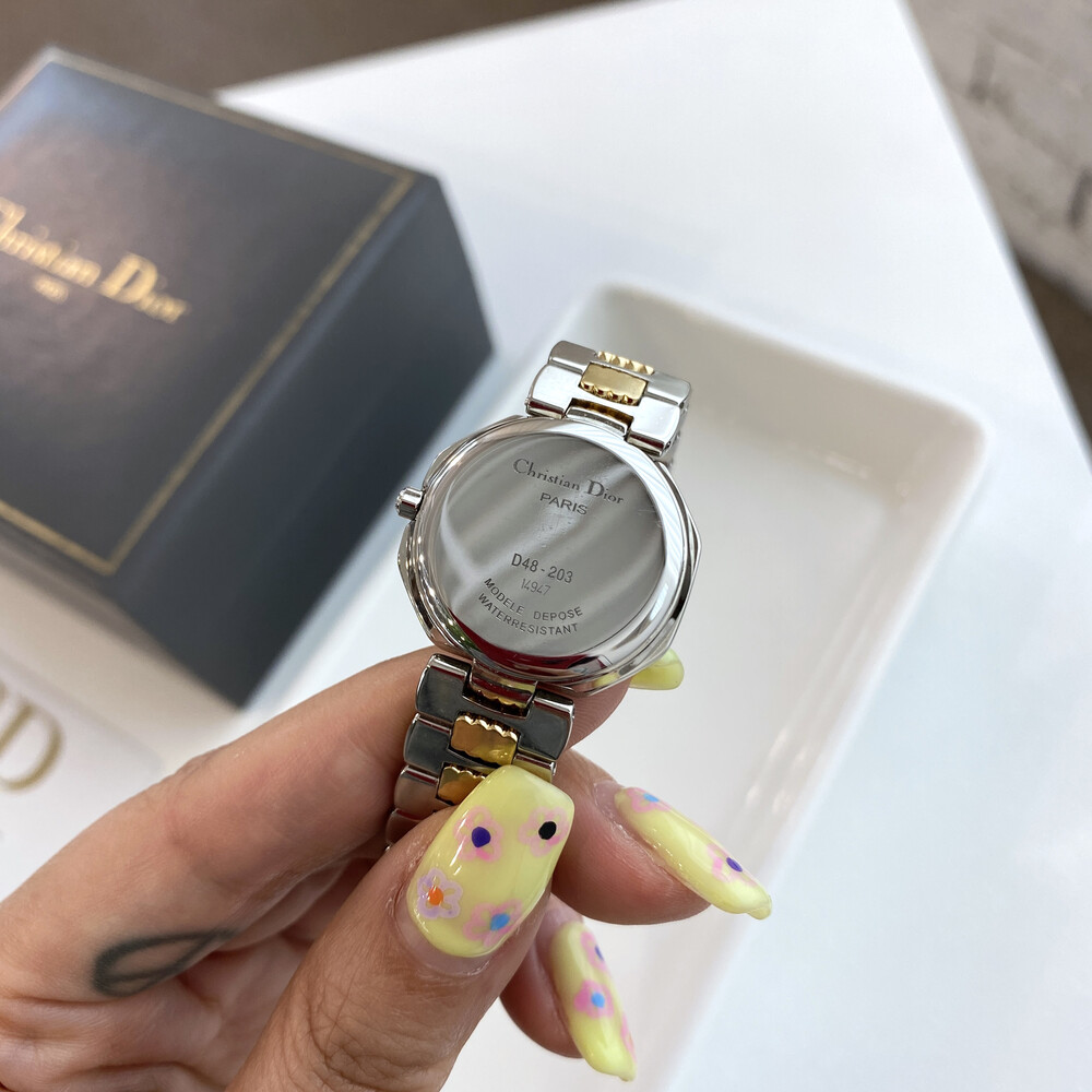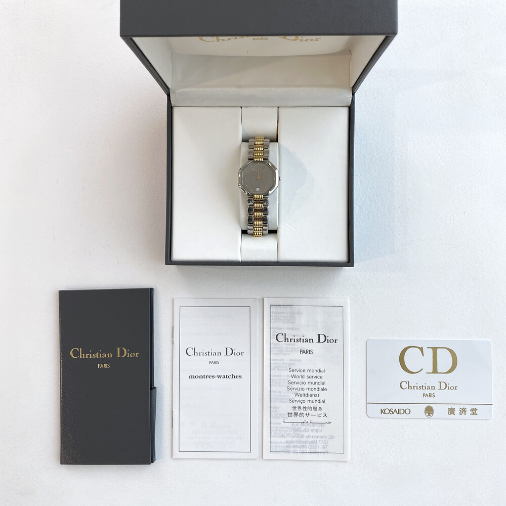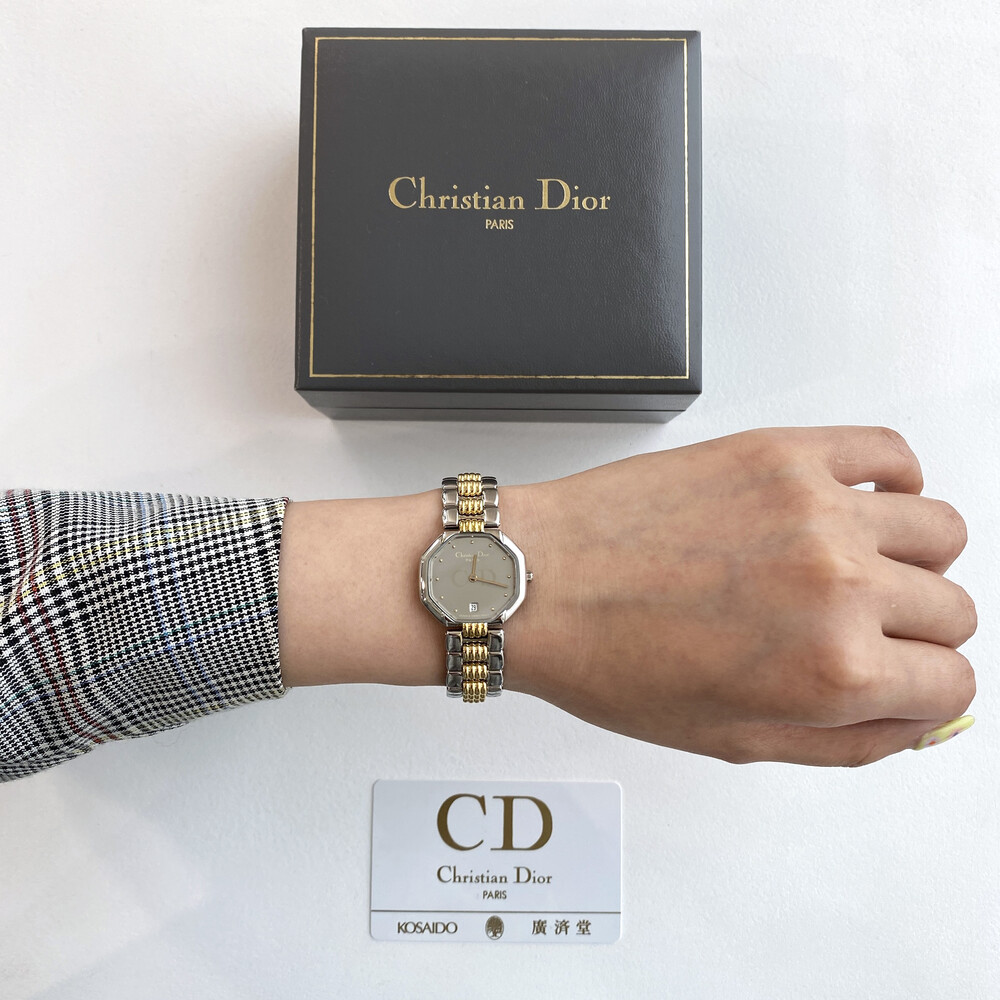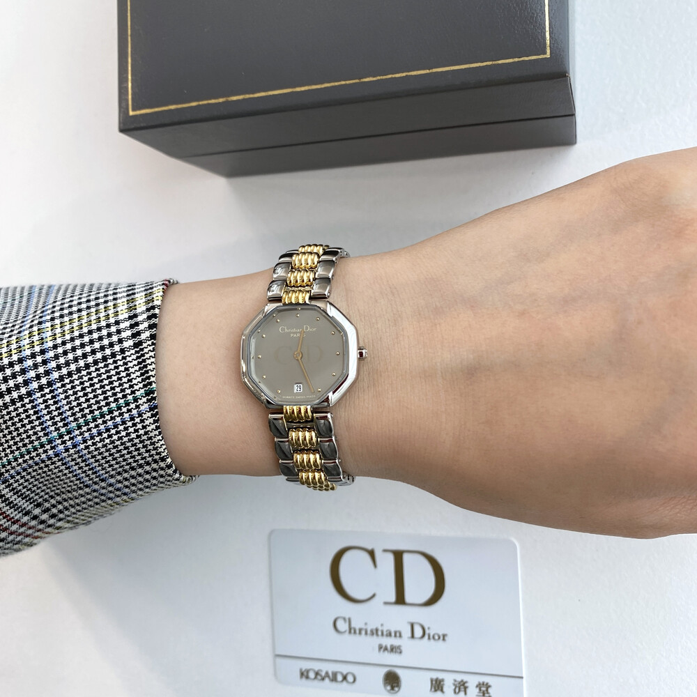 여성용으로 제작된 빈티지 디올 시계이며 스위스에서 생산된 쿼츠 무브먼트로 제작되었습니다.