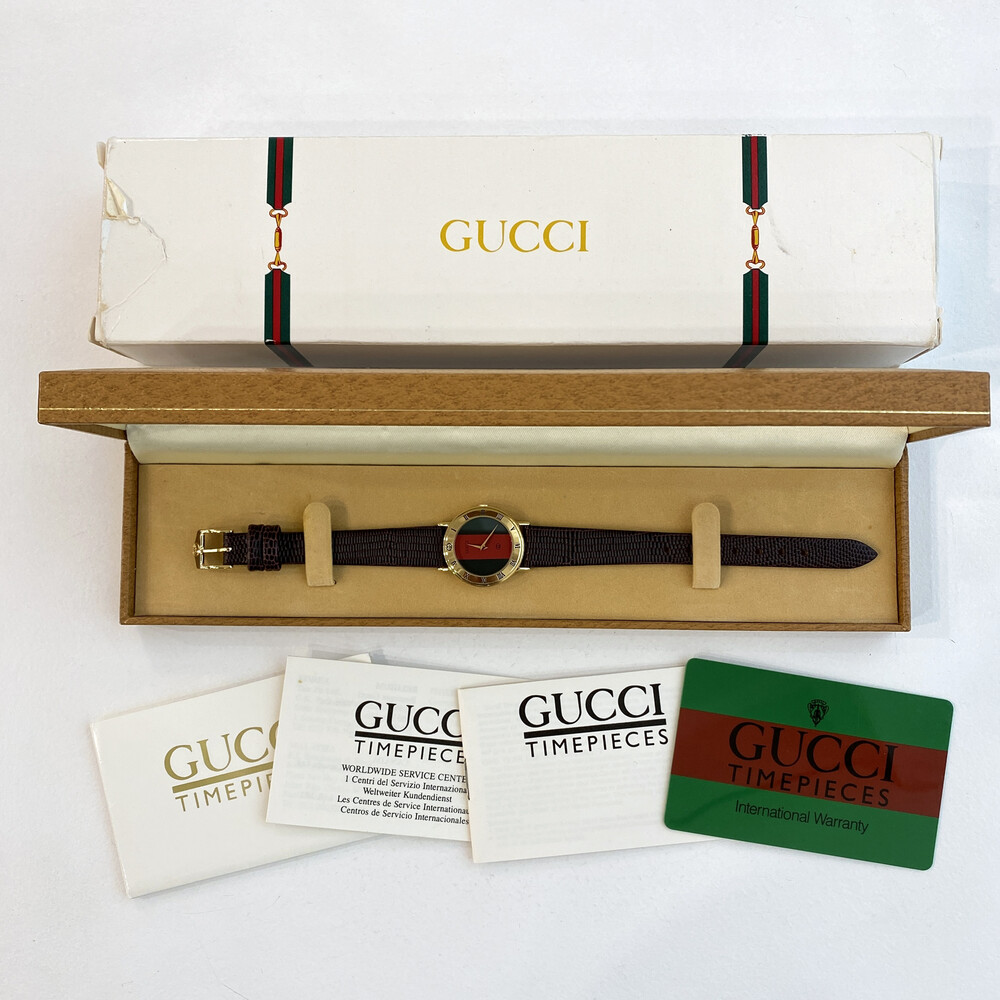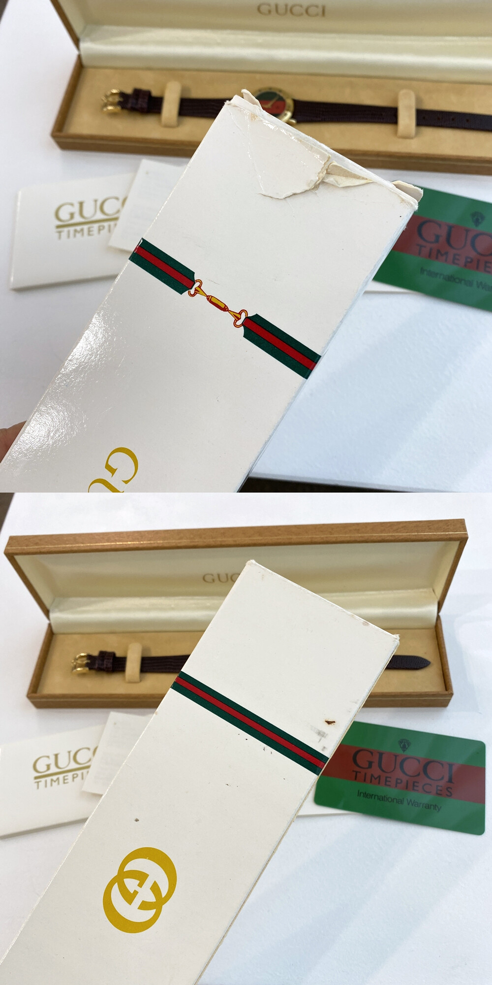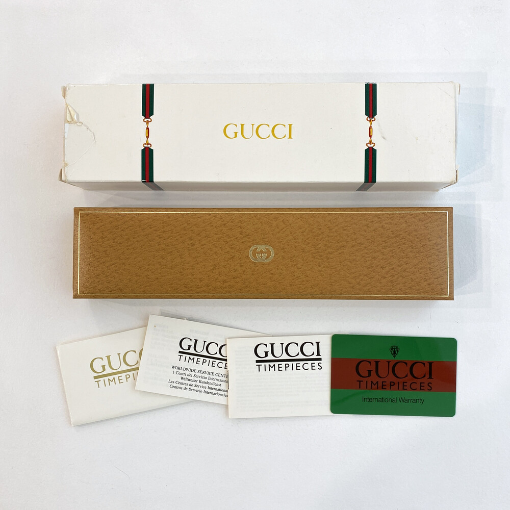 구찌 시계 케이스, 상자, 개런티 카드, 서비스센터 책자가 포함된 제품입니다.