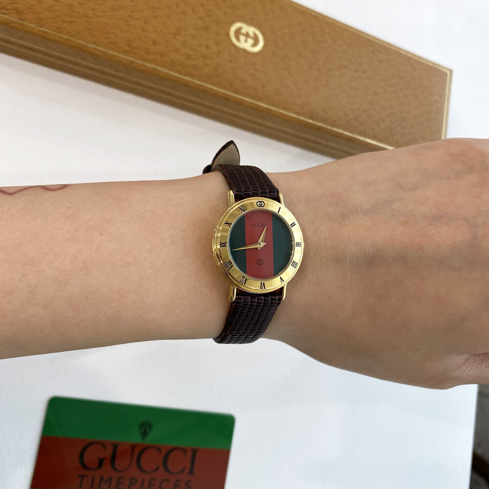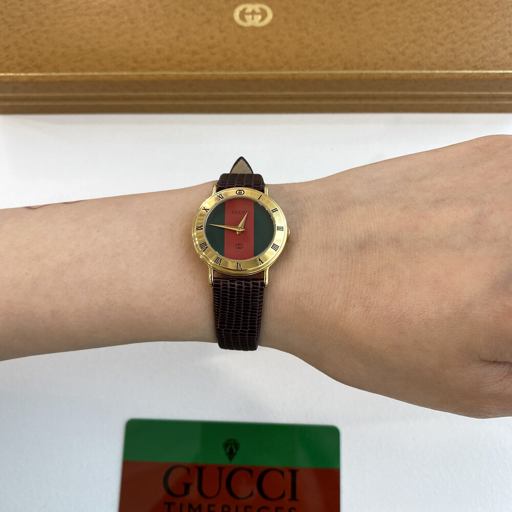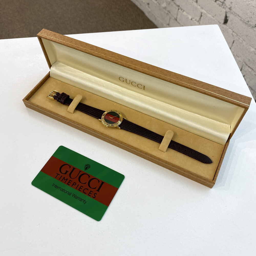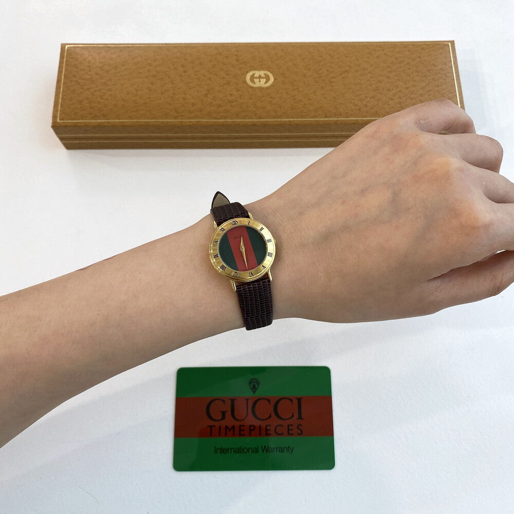 구찌 시계 케이스, 상자, 개런티 카드, 서비스센터 책자가 포함된 제품입니다.