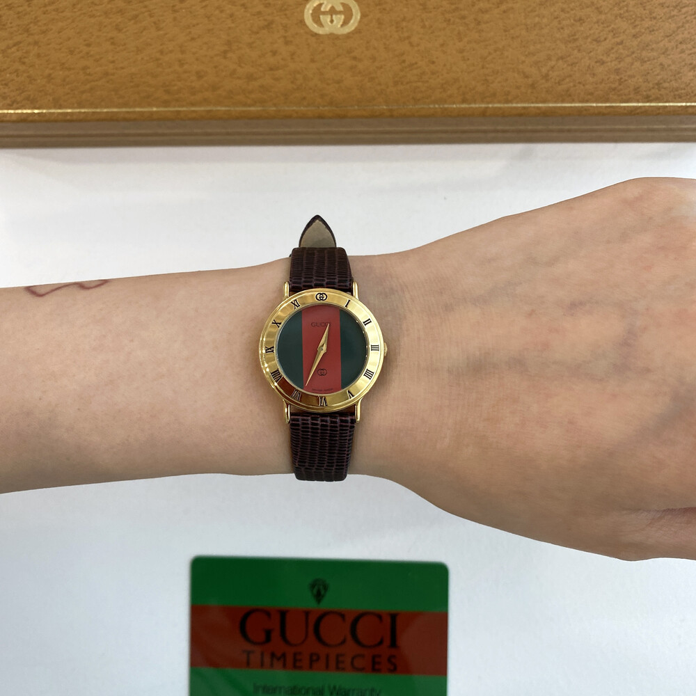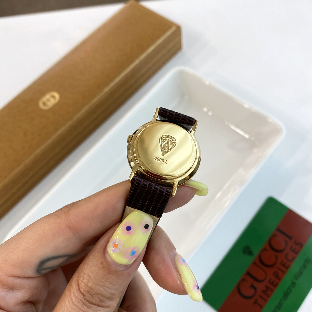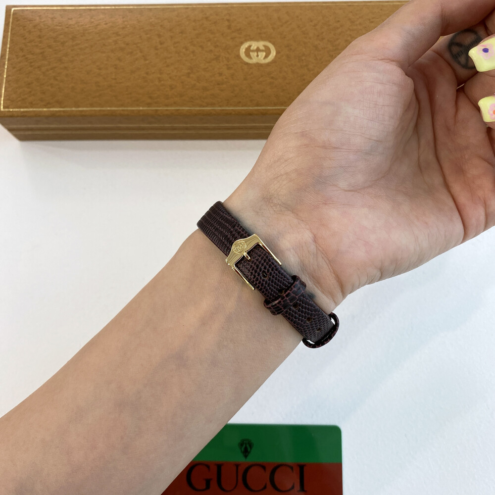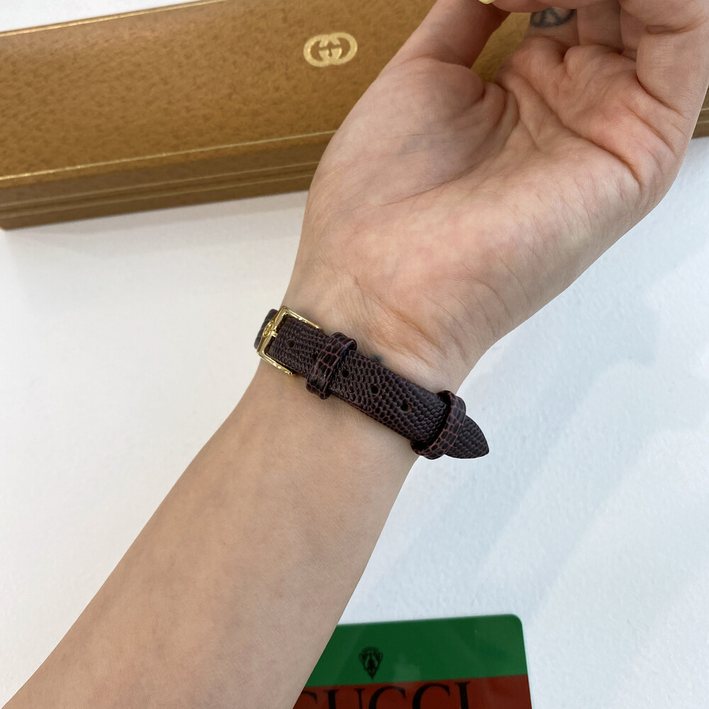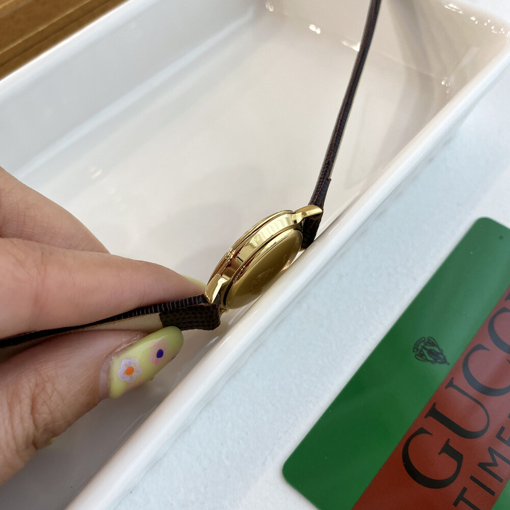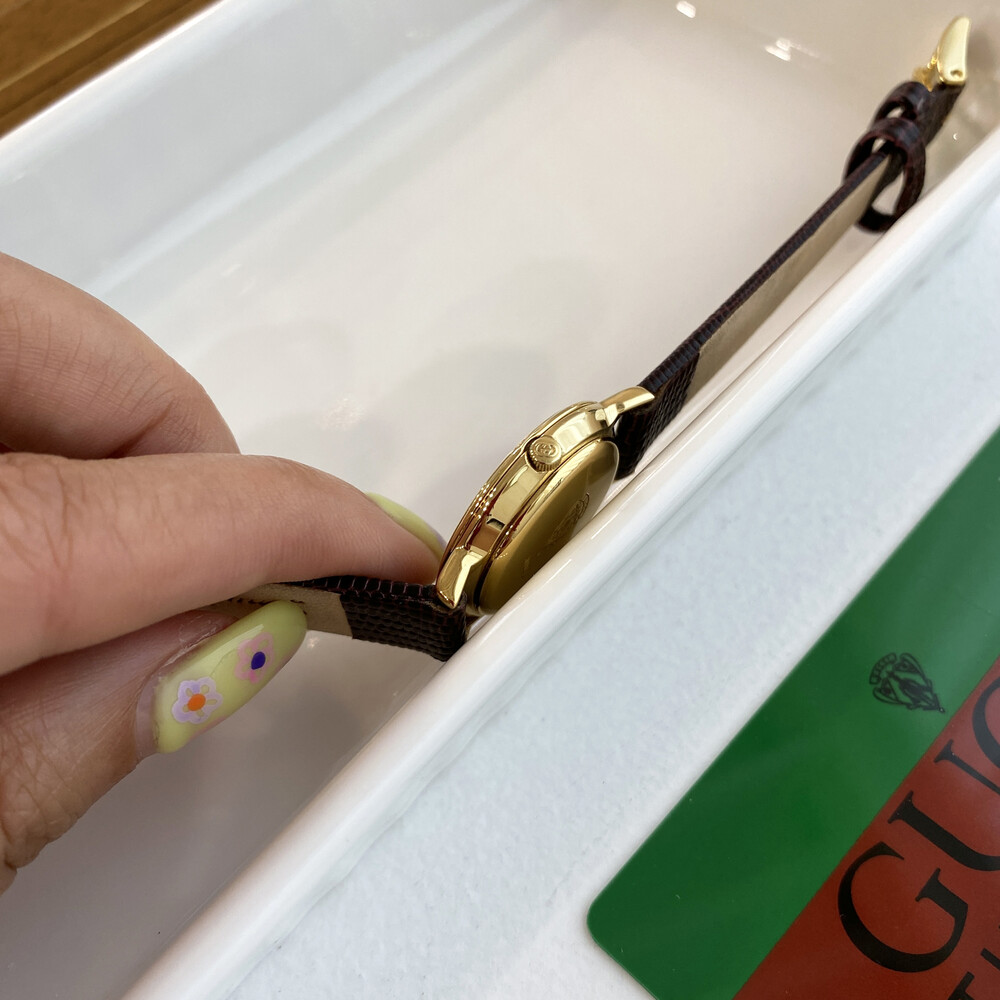 여성용으로 제작된 구찌 시계이며 쿼츠 무브먼트로 제작되었습니다.