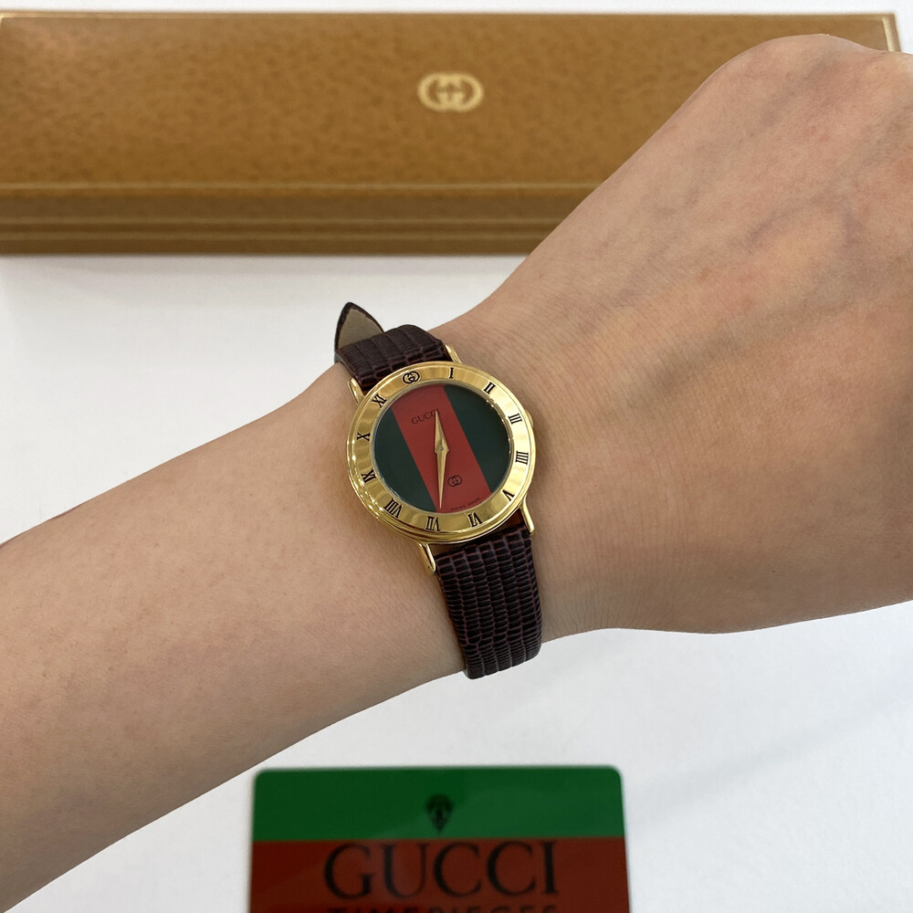다이얼 위의 구찌 시그니처 GRG 패턴이 매력적인 모델입니다.