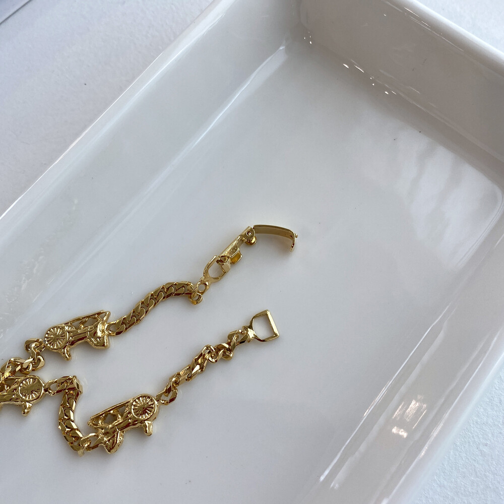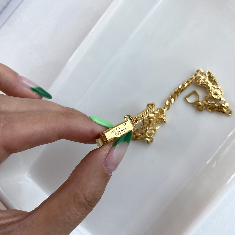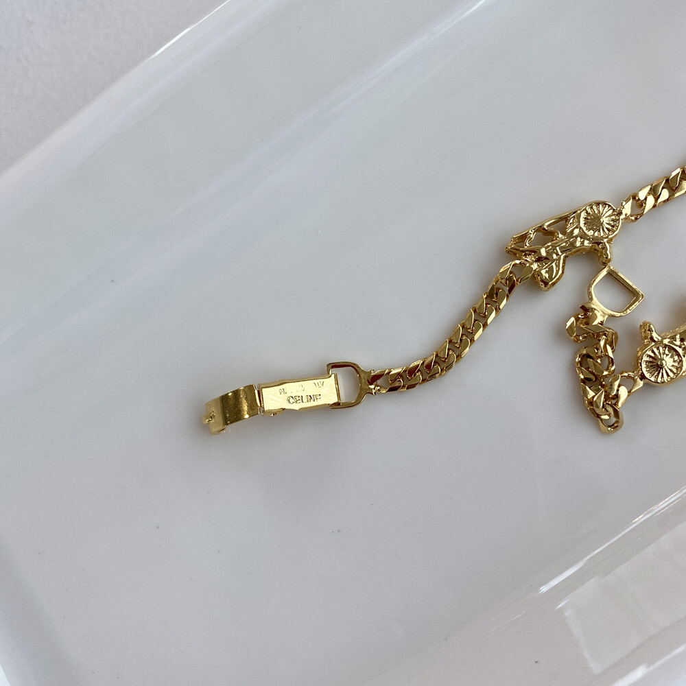 셀린느 시그니처 마차 펜던트와 커브 체인이 매력적인 모델입니다.