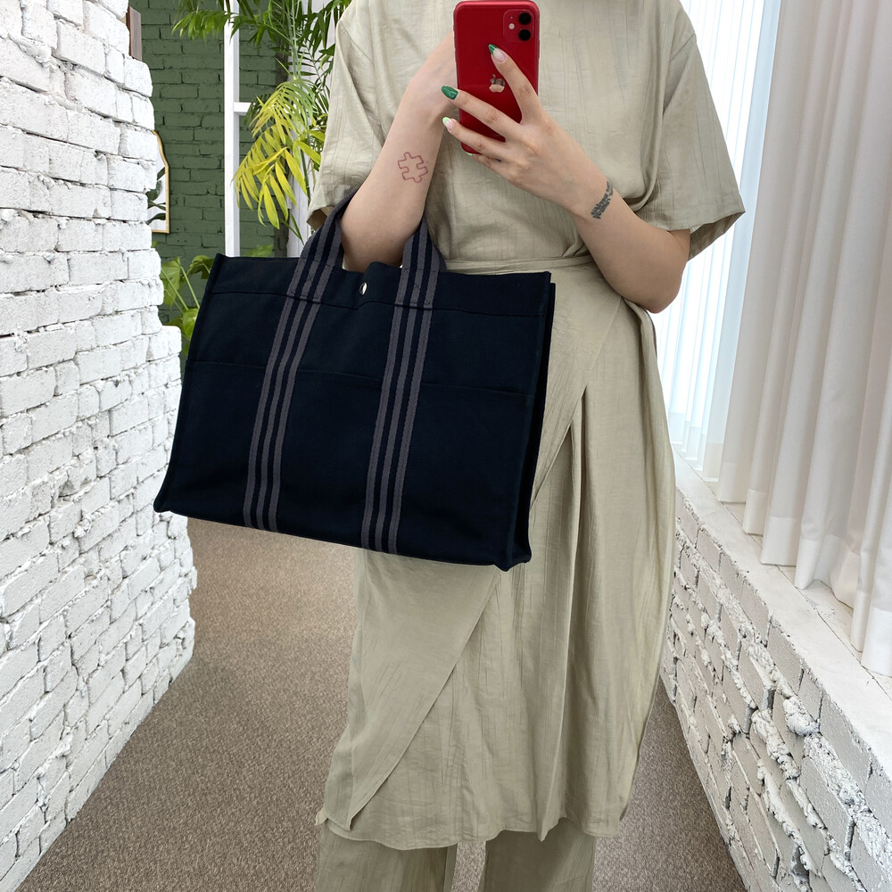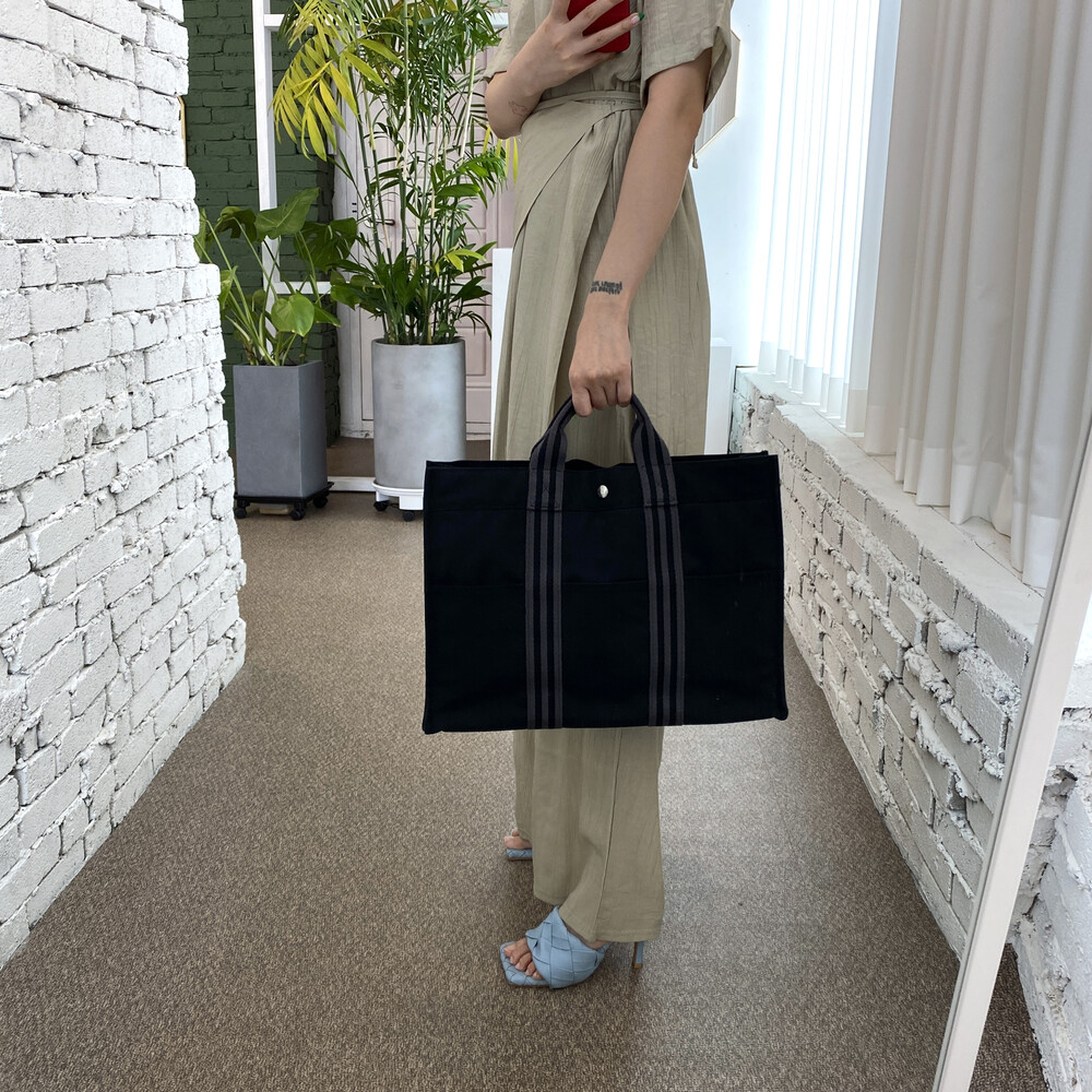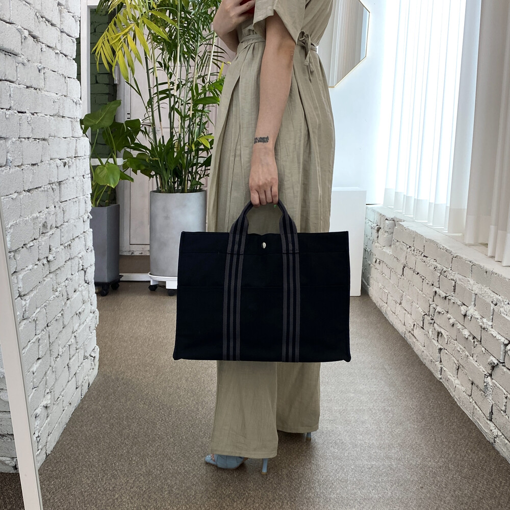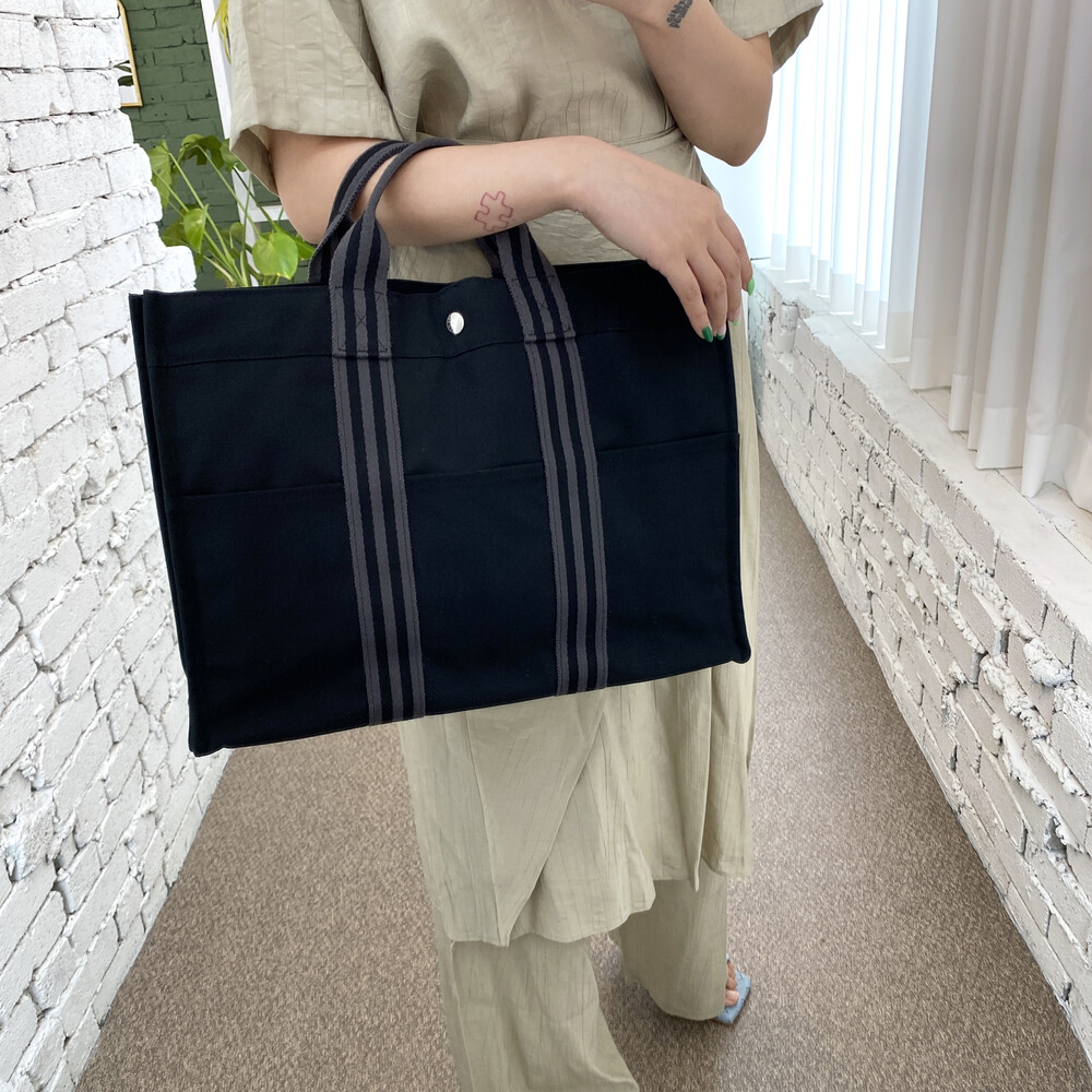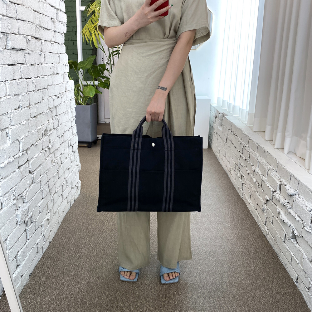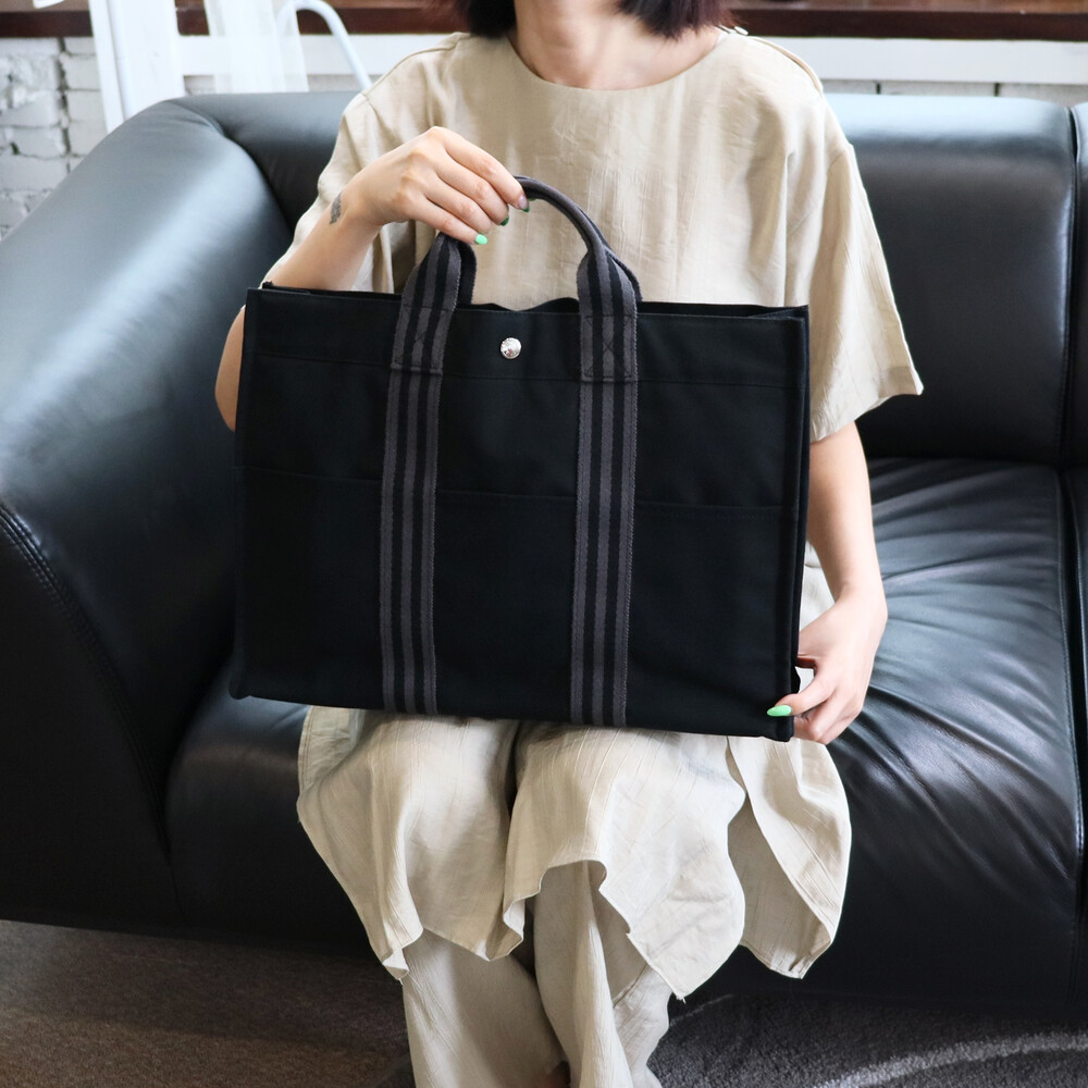 빈티지 에르메스 블랙 캔버스 후루토백입니다.