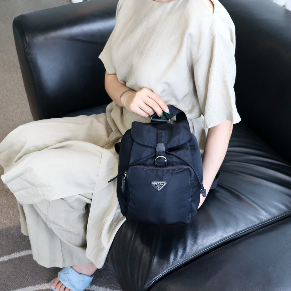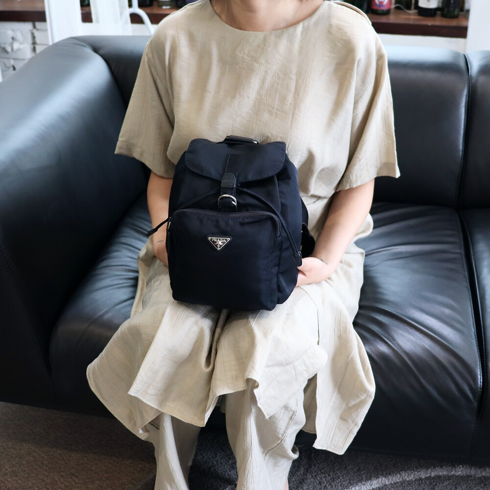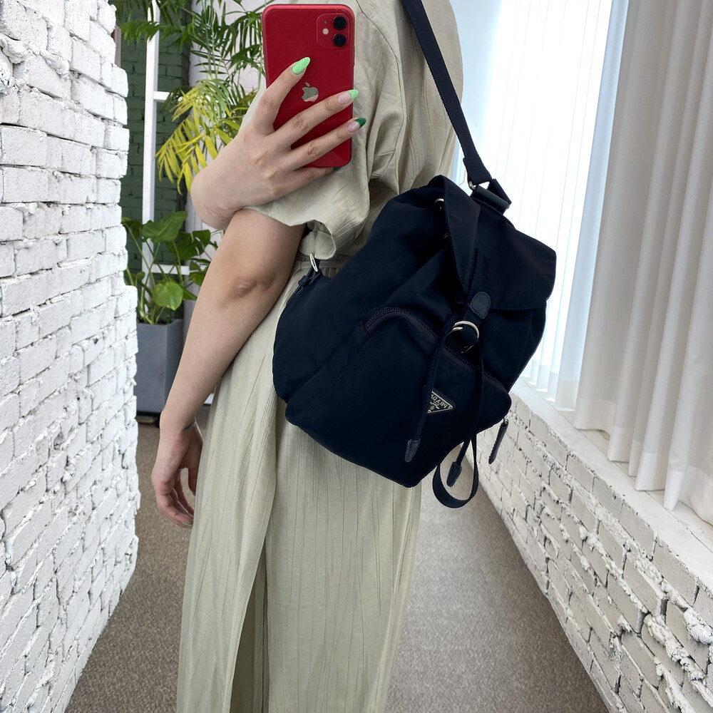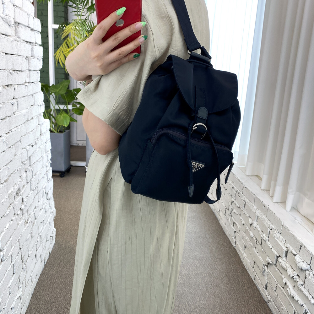 가벼운 무게로 데일리로 편하게 사용하기 좋은 빈티지 프라다 나일론 백팩입니다.
