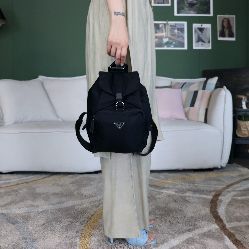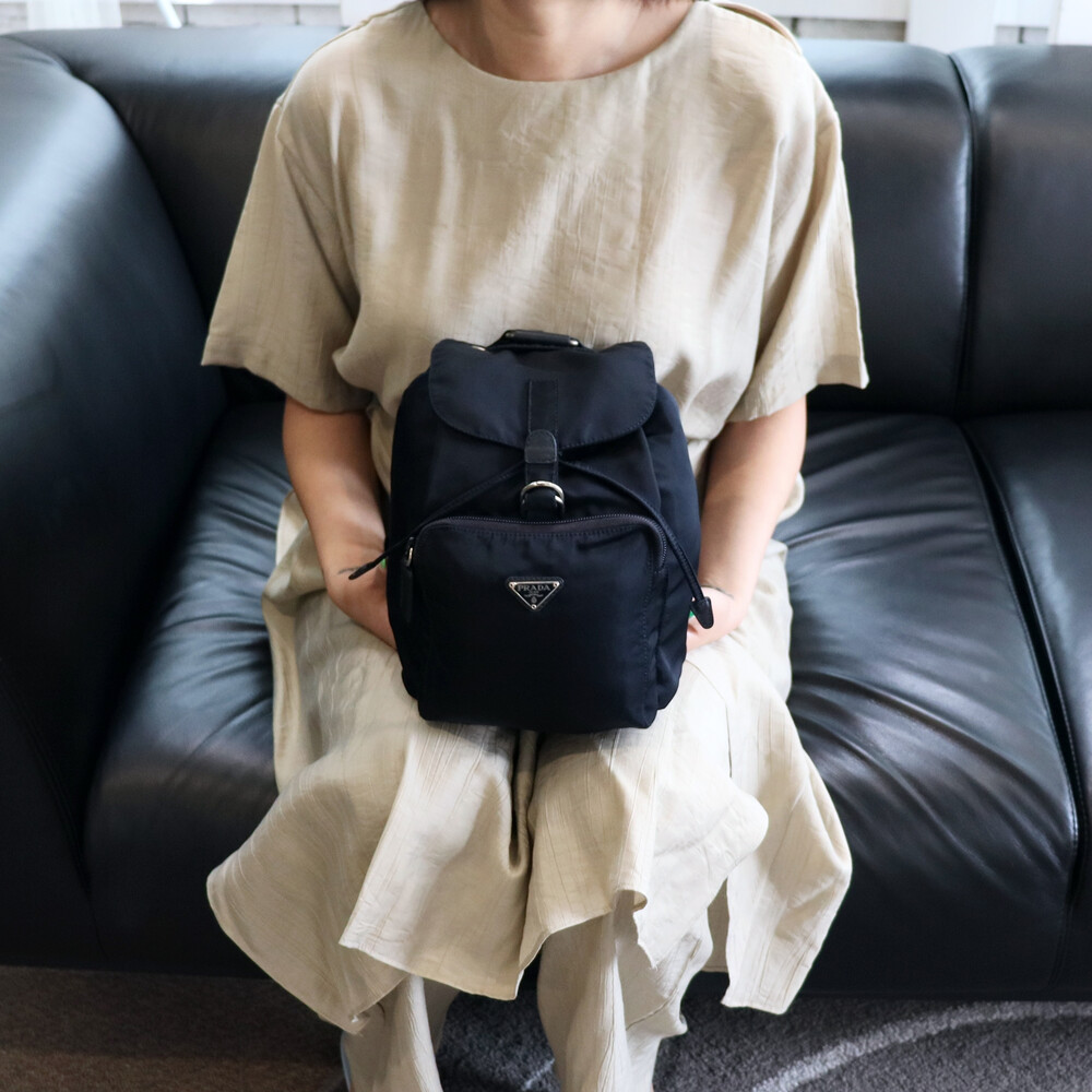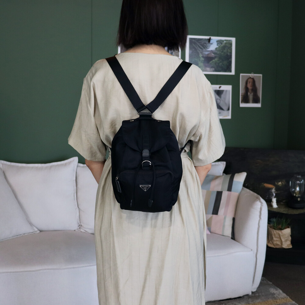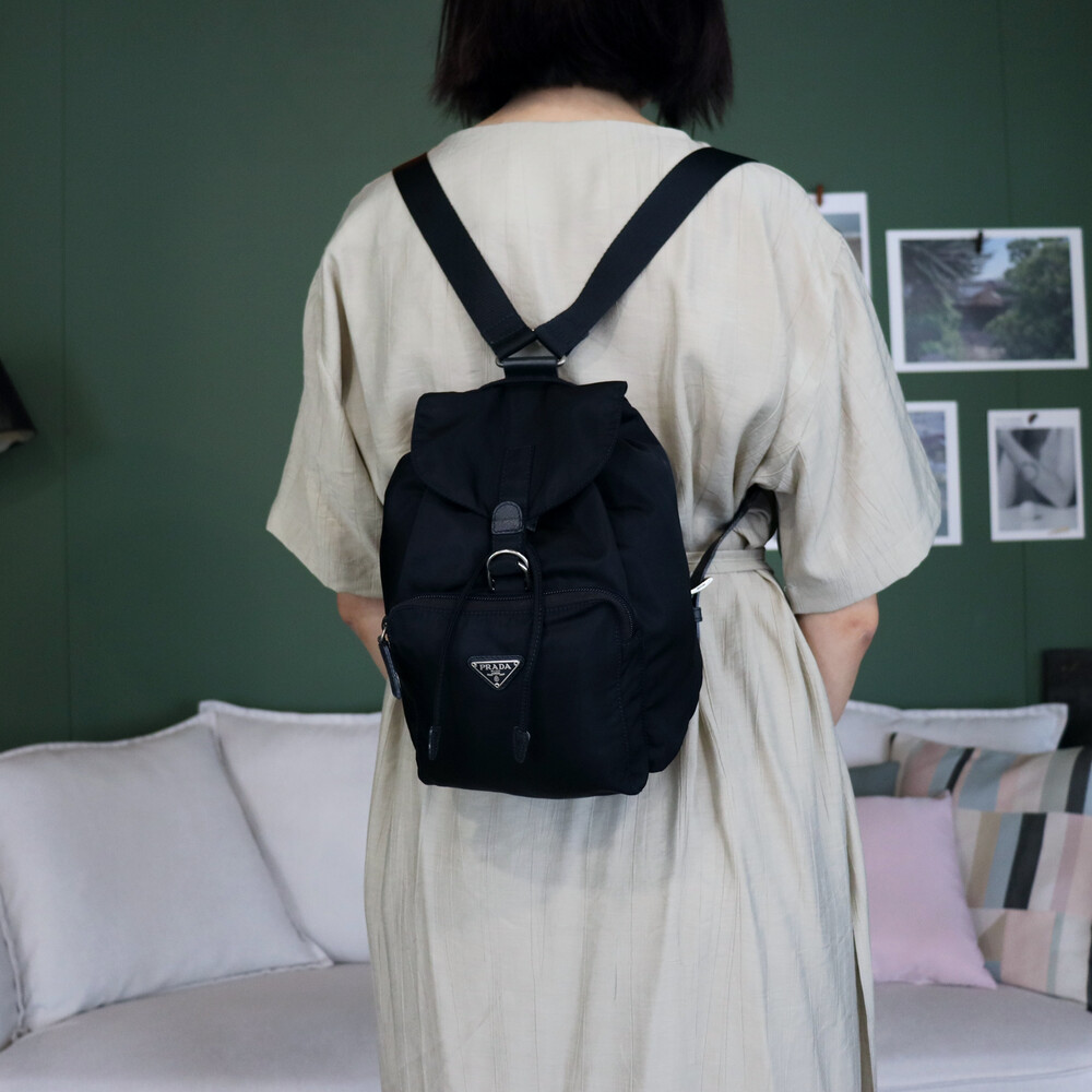 가벼운 무게로 데일리로 편하게 사용하기 좋은 빈티지 프라다 나일론 백팩입니다.