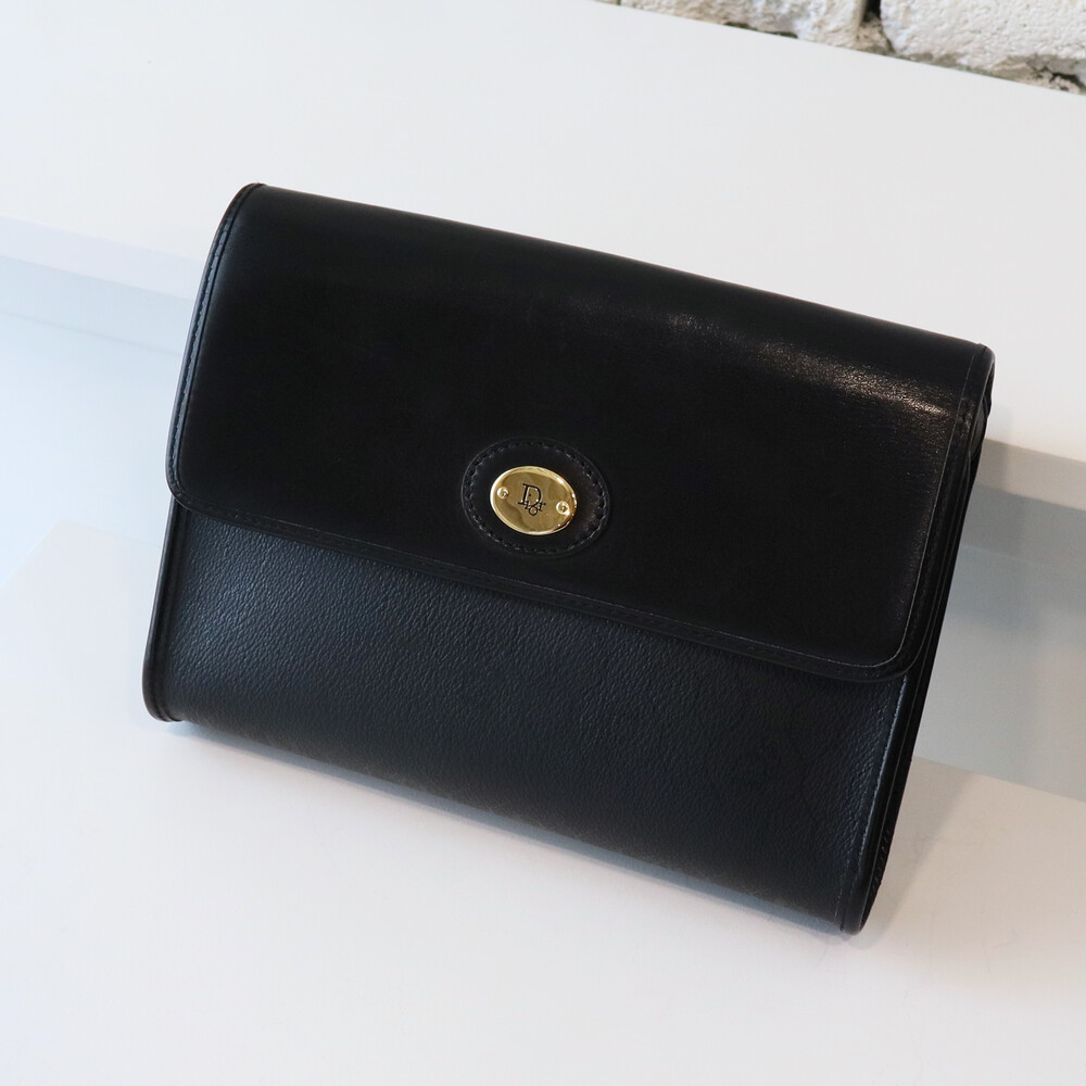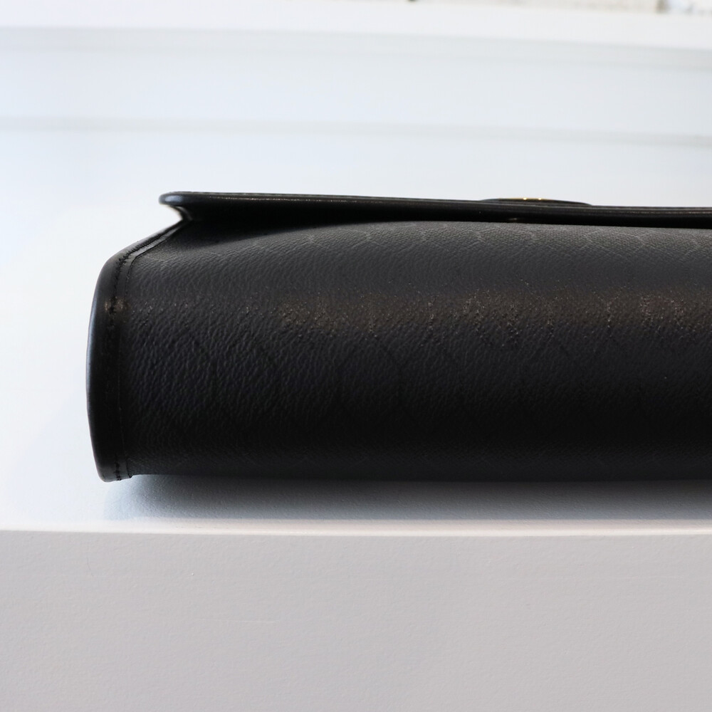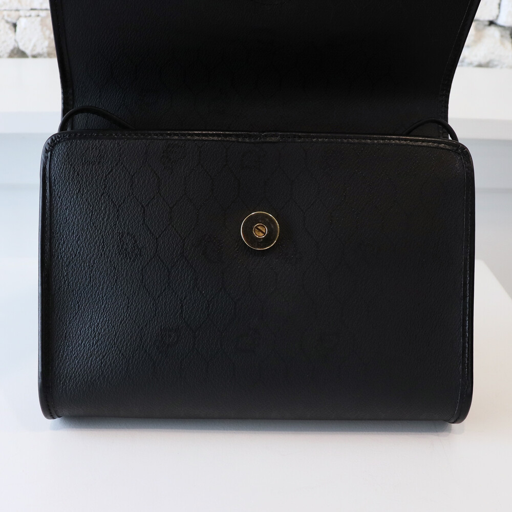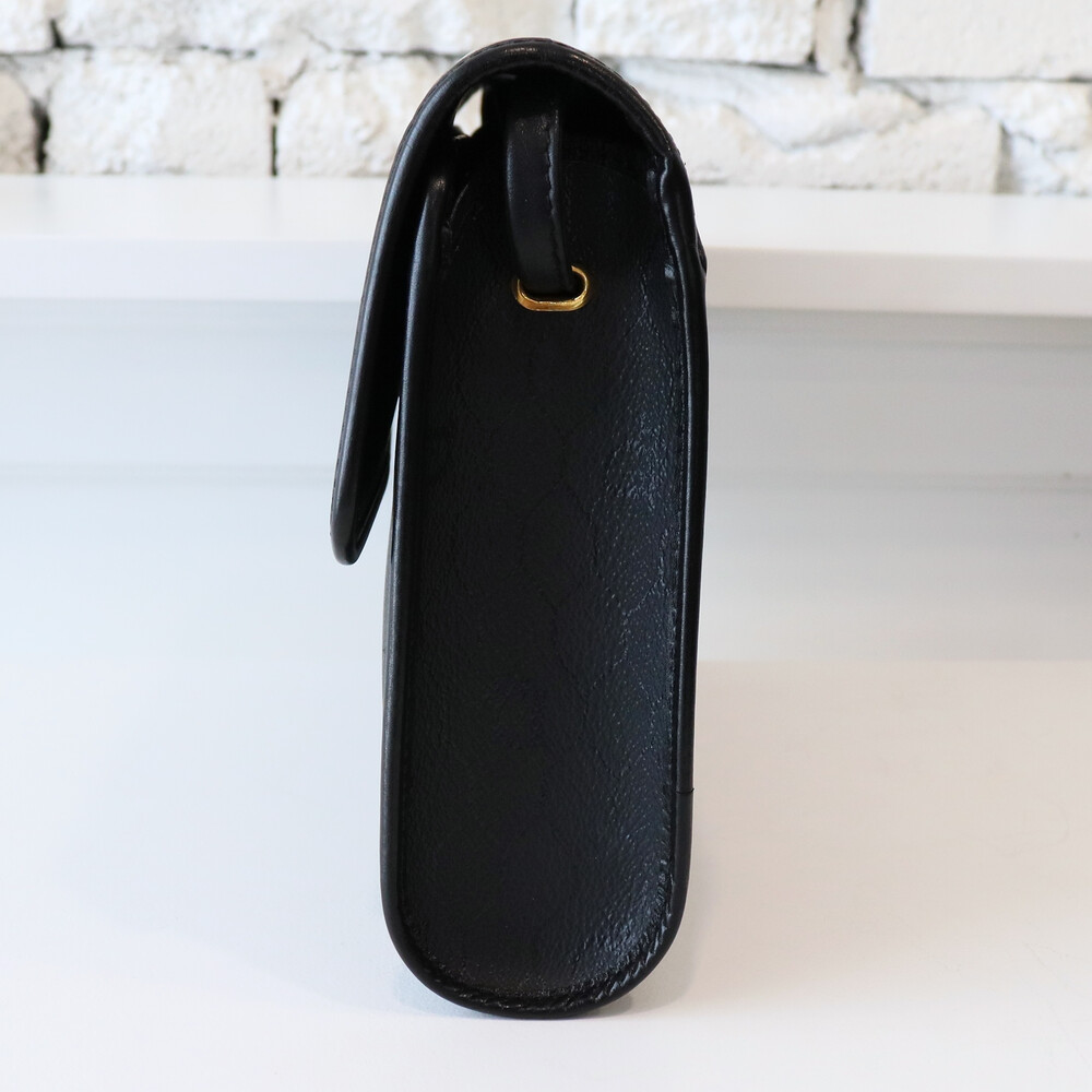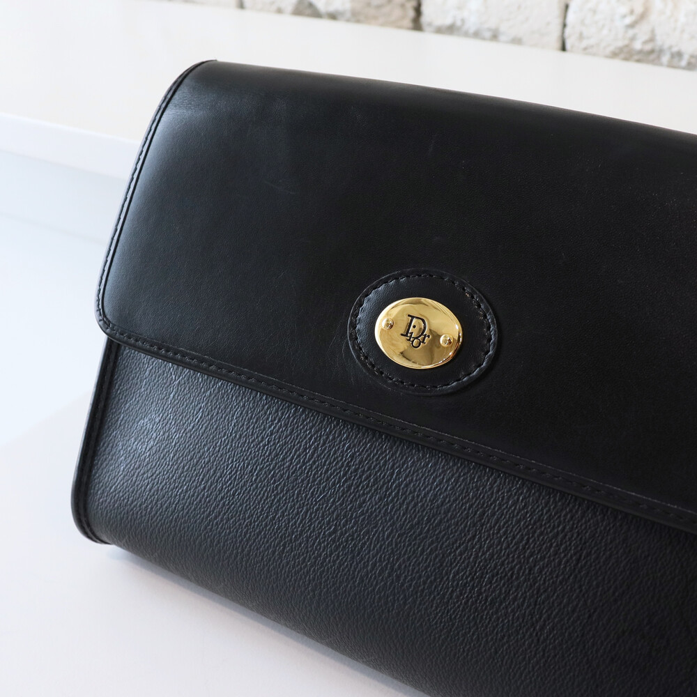 블랙 가죽 트림과 PVC 허니콤 패턴의 바디, 중앙의 디올 골드 심볼 장식이 돋보이는 제품입니다.