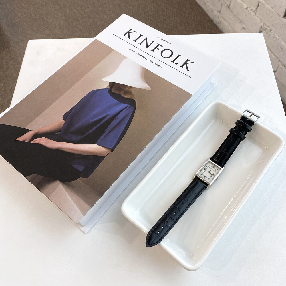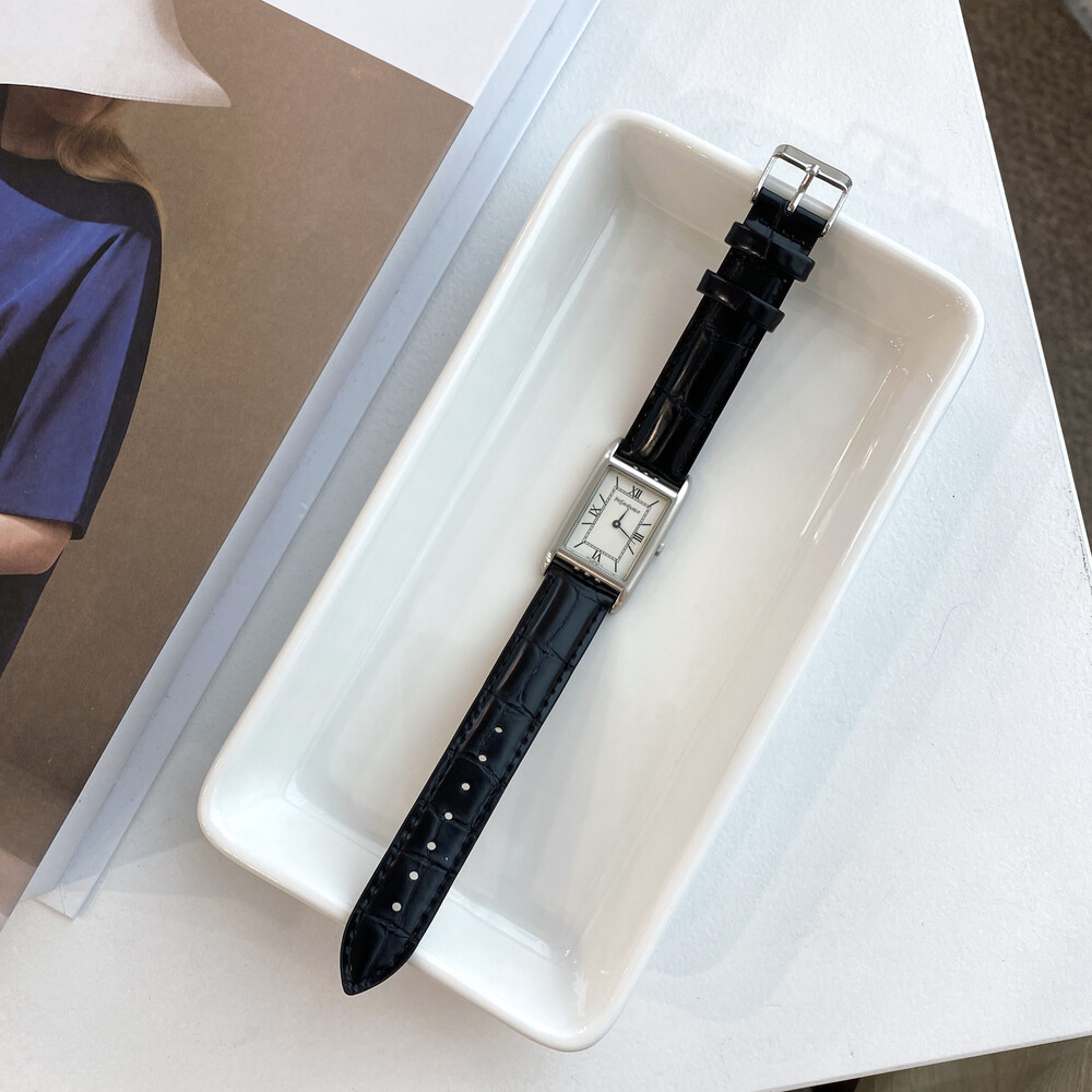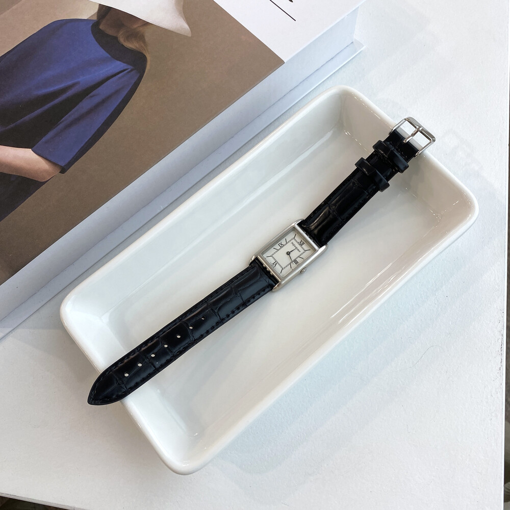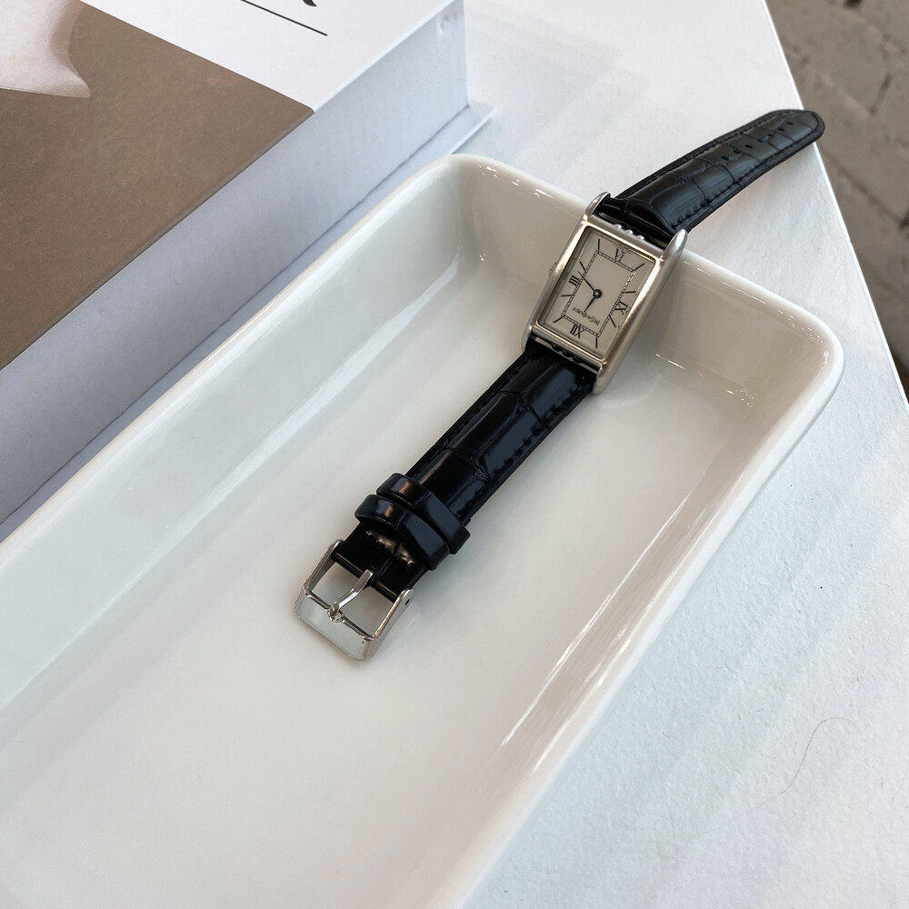 클래식한 실버 스퀘어 케이스와 로마 인덱스,