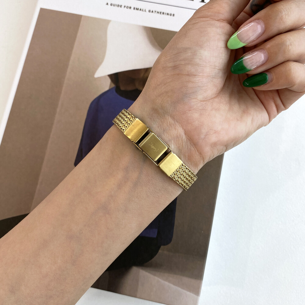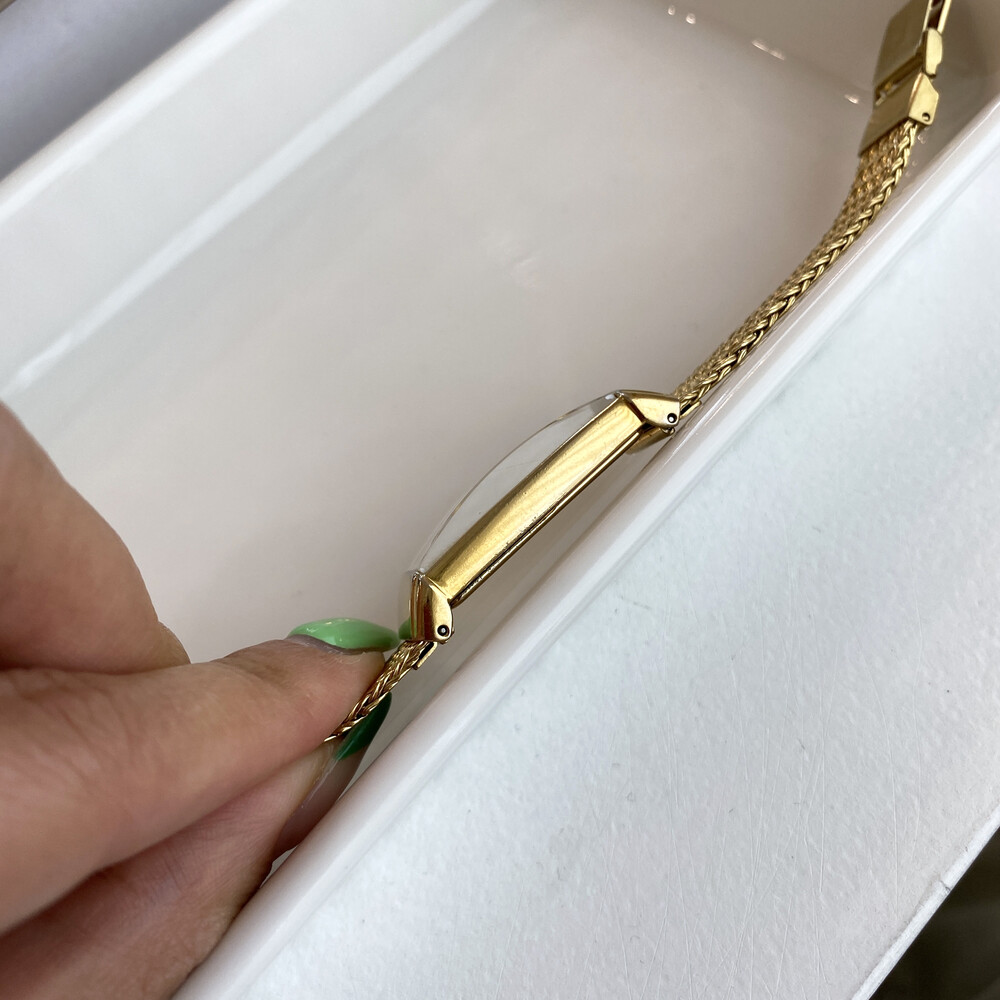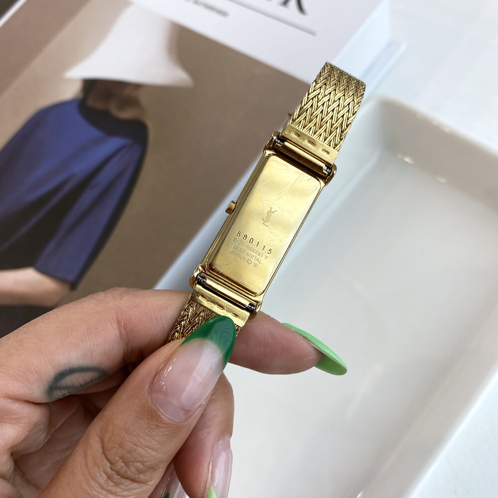 여성용으로 제작된 생로랑 시계이며 쿼츠 무브먼트로 제작되었습니다.