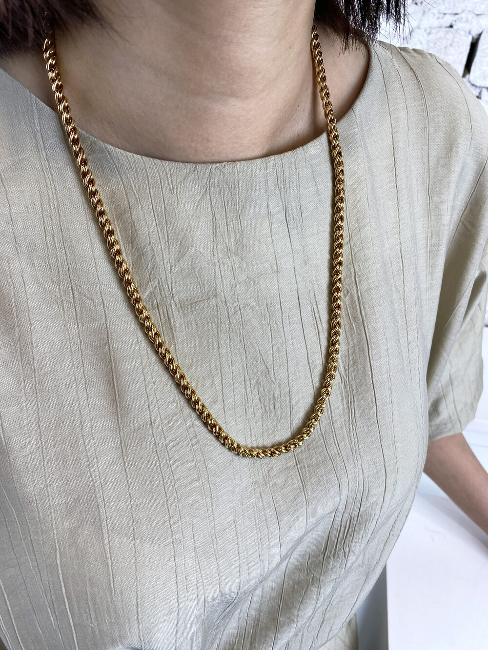 골드 톤 리버스 로프 (Reverse Rope) 타입의 체인으로 제작된 모델로