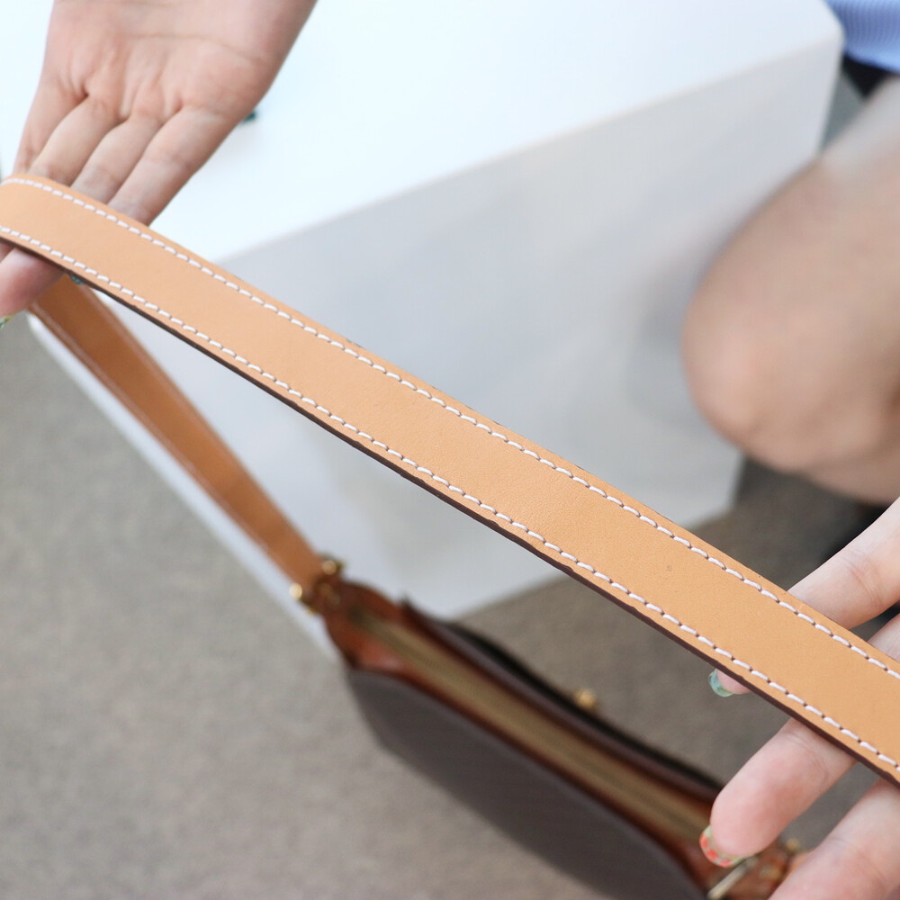 숄더끈은 나중에 에이징이 진행되면 바디 가죽 트림과 같은 컬러가 되도록