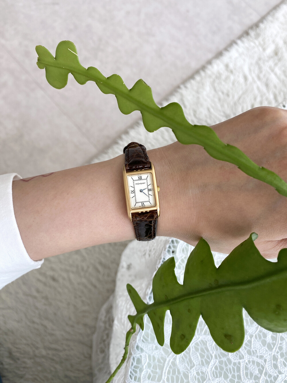입생로랑 스퀘어 시계는 클래식한 디자인으로 변치 않는 아름다움을 선사합니다.