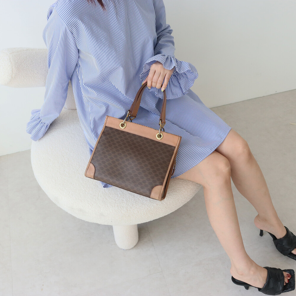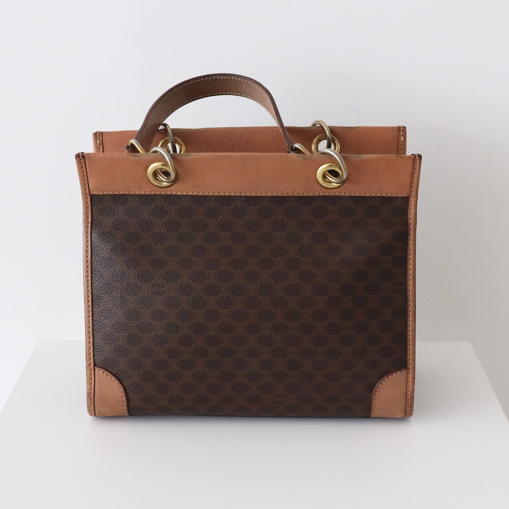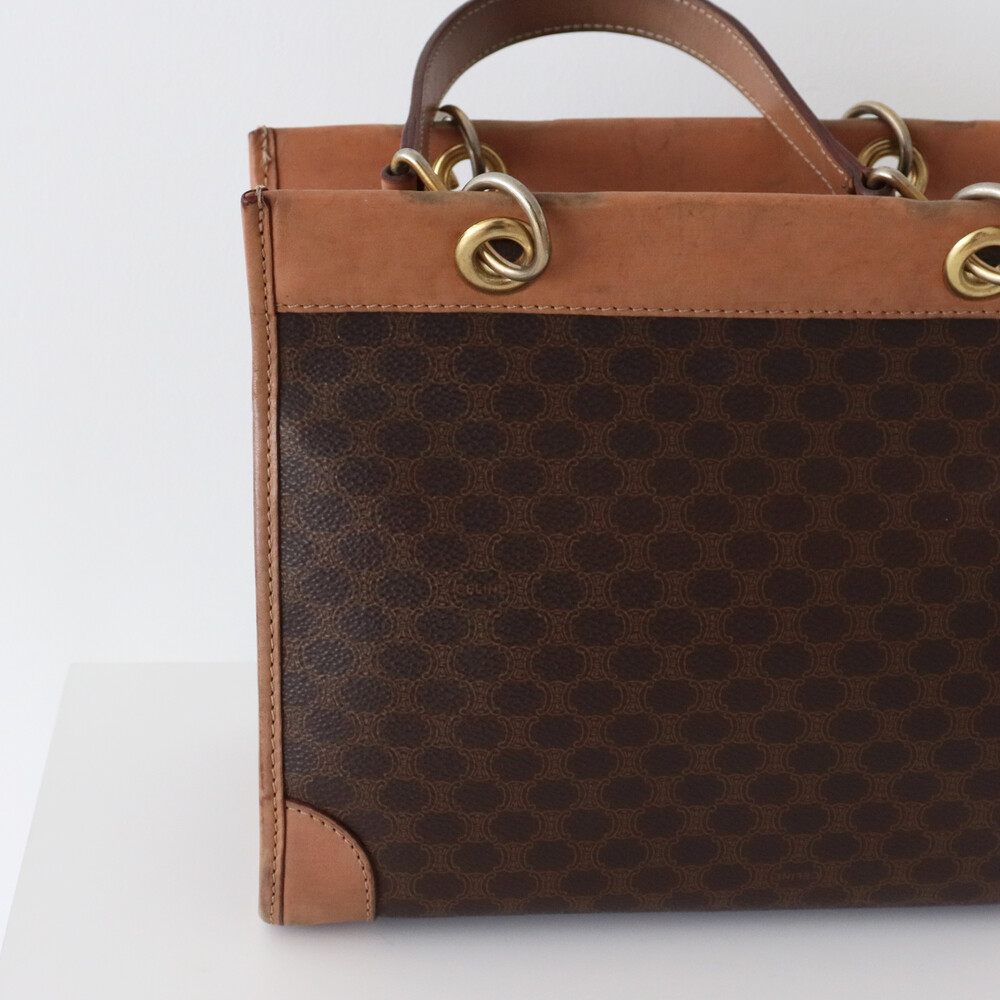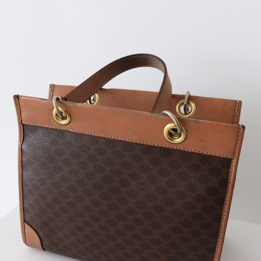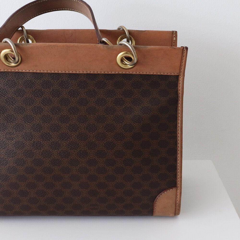 클래식한 스퀘어 실루엣에 브랜드 아이덴티티를 상징하는 마카담 패턴이 더해져 조화로운 비율을 자랑하는 빈티지 셀린느 토트백입니다.