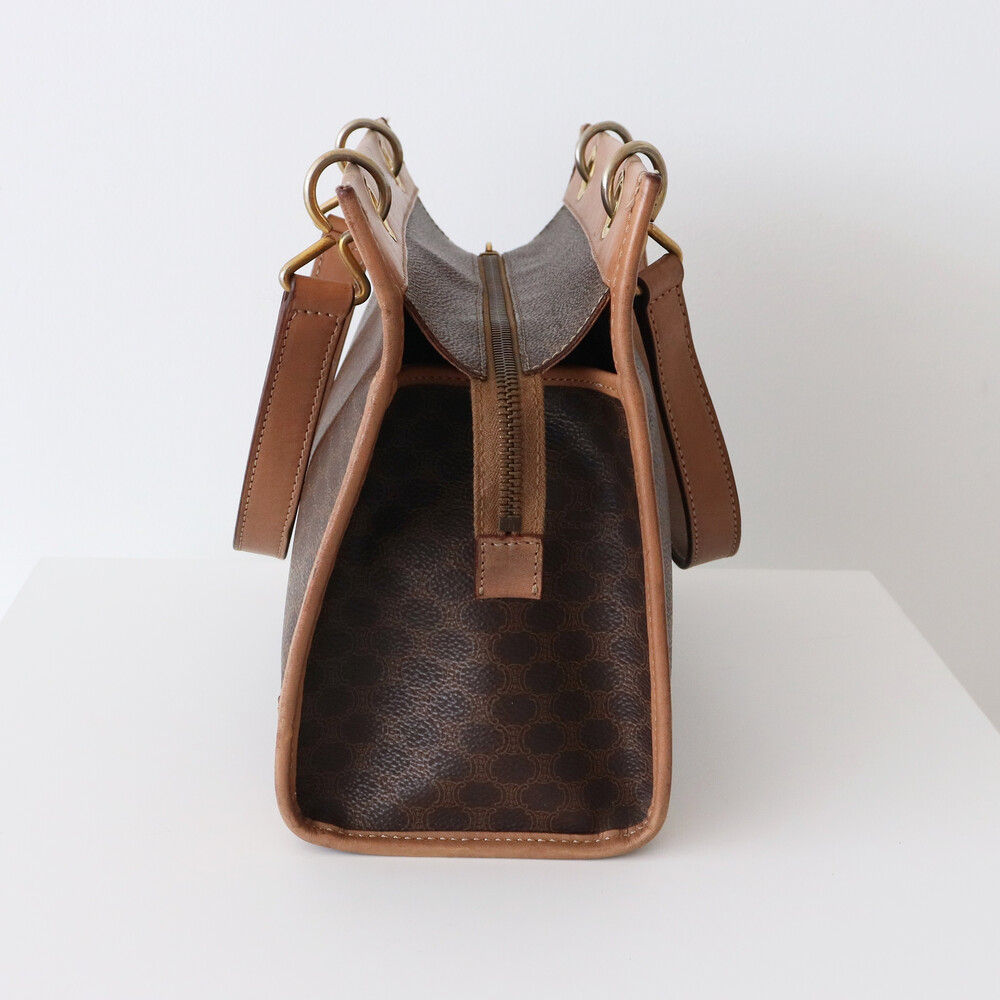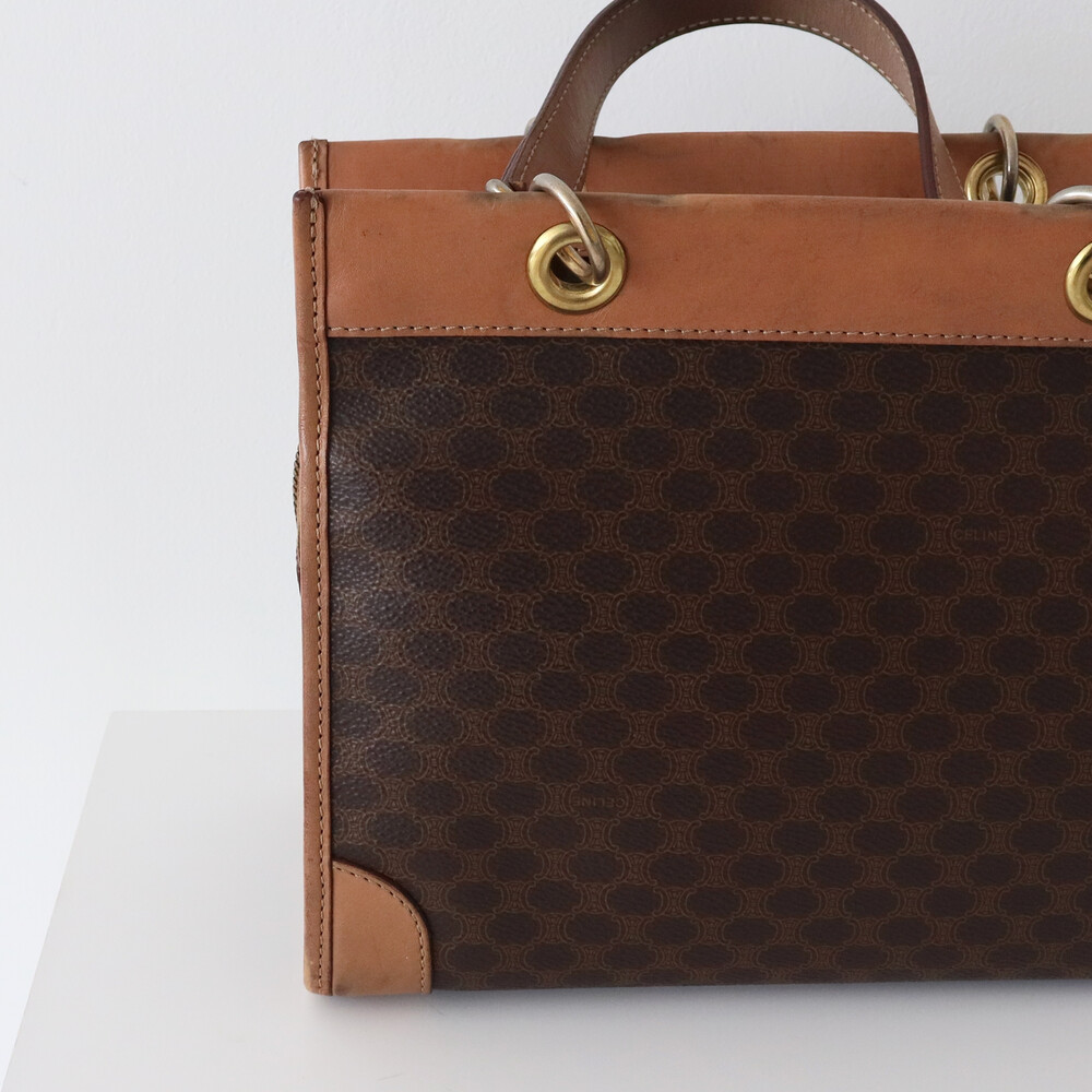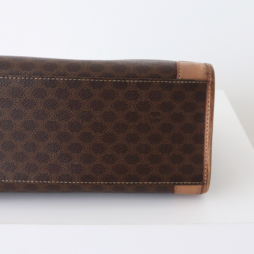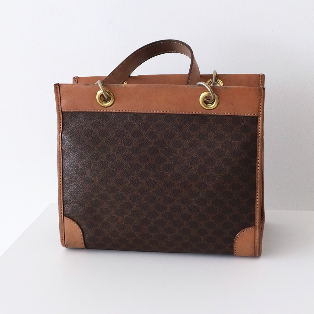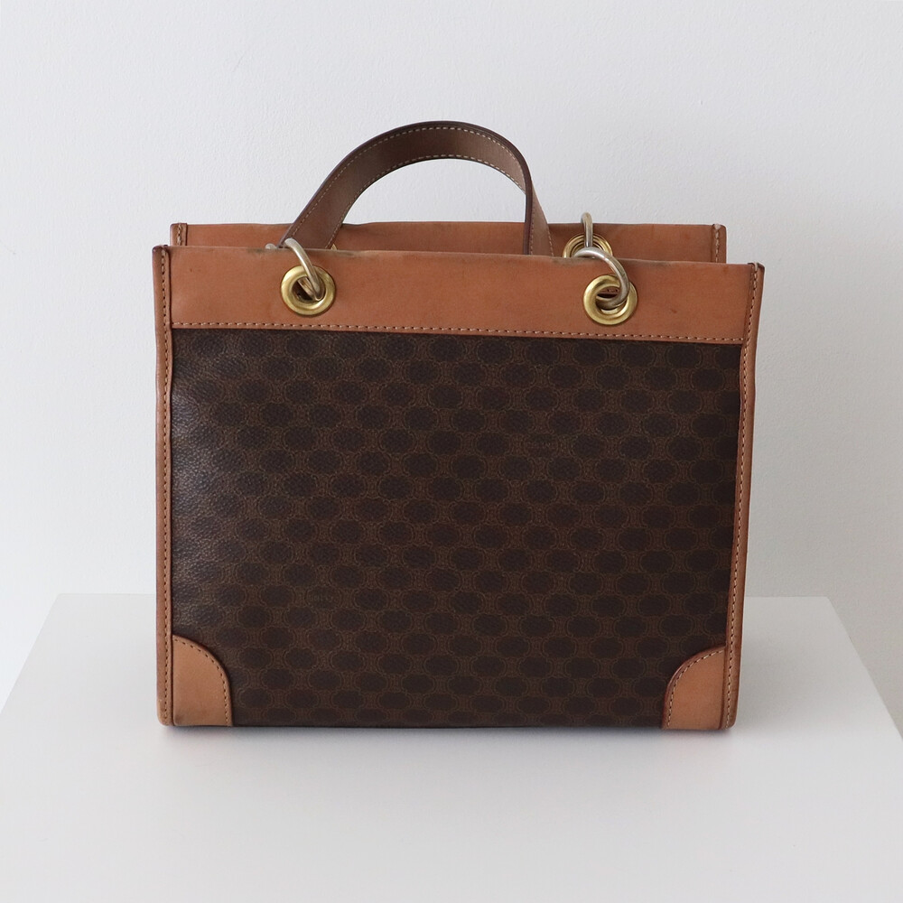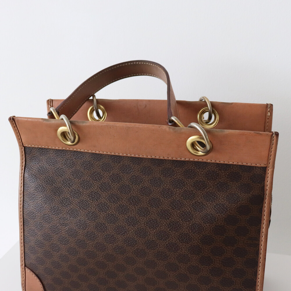 클래식한 스퀘어 실루엣에 브랜드 아이덴티티를 상징하는 마카담 패턴이 더해져 조화로운 비율을 자랑하는 빈티지 셀린느 토트백입니다.