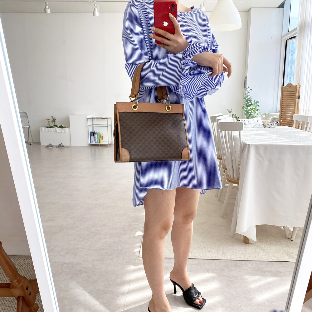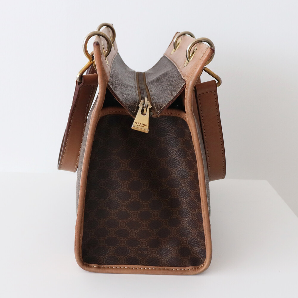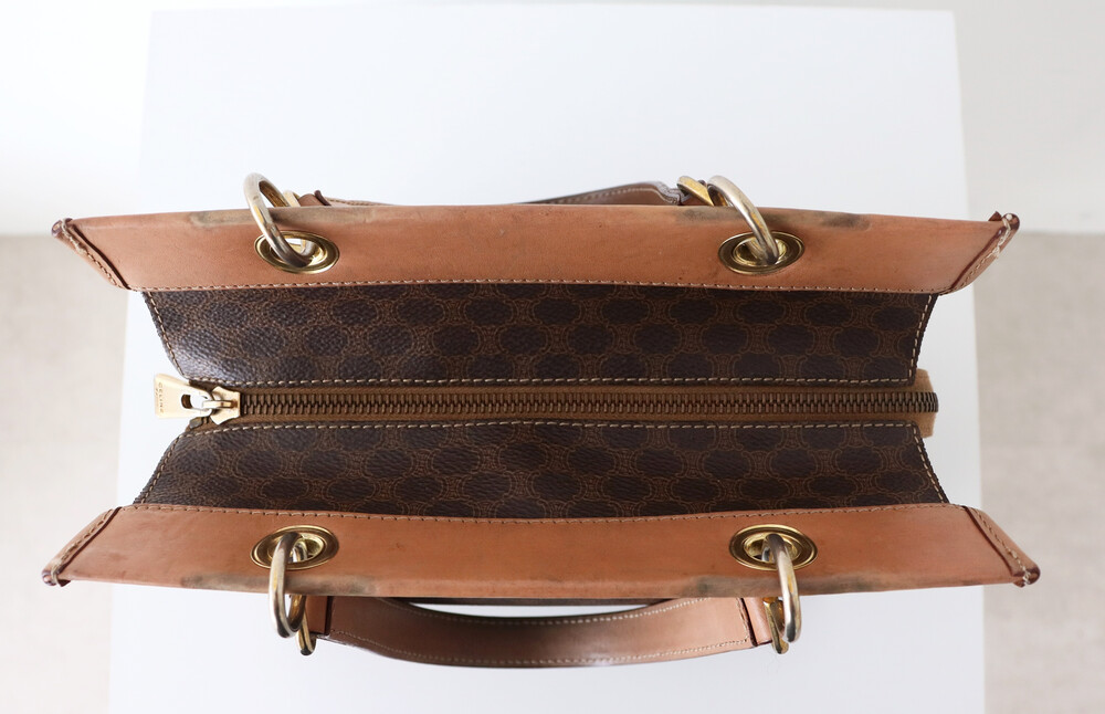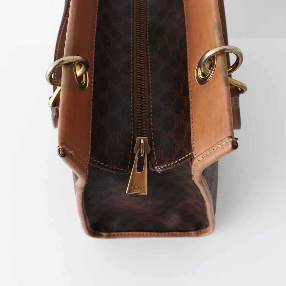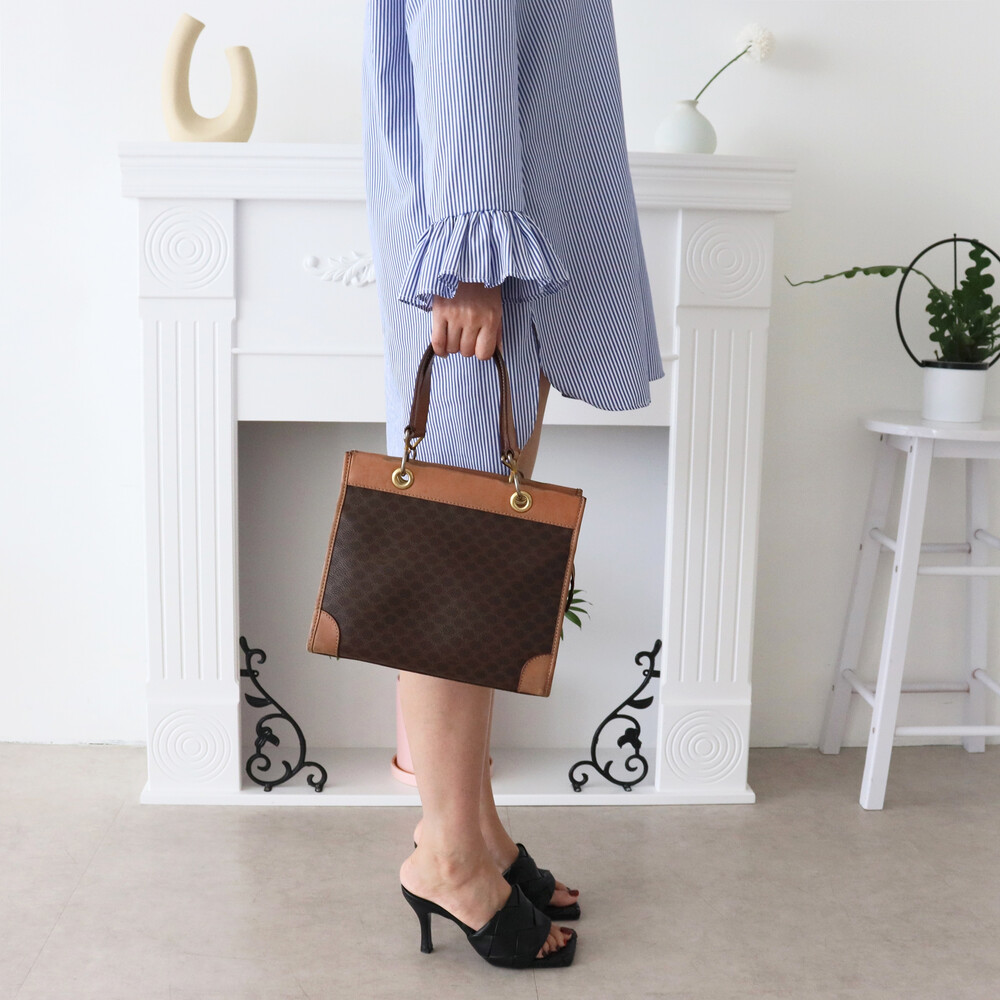 클래식한 스퀘어 실루엣에 브랜드 아이덴티티를 상징하는 마카담 패턴이 더해져 조화로운 비율을 자랑하는 빈티지 셀린느 토트백입니다.