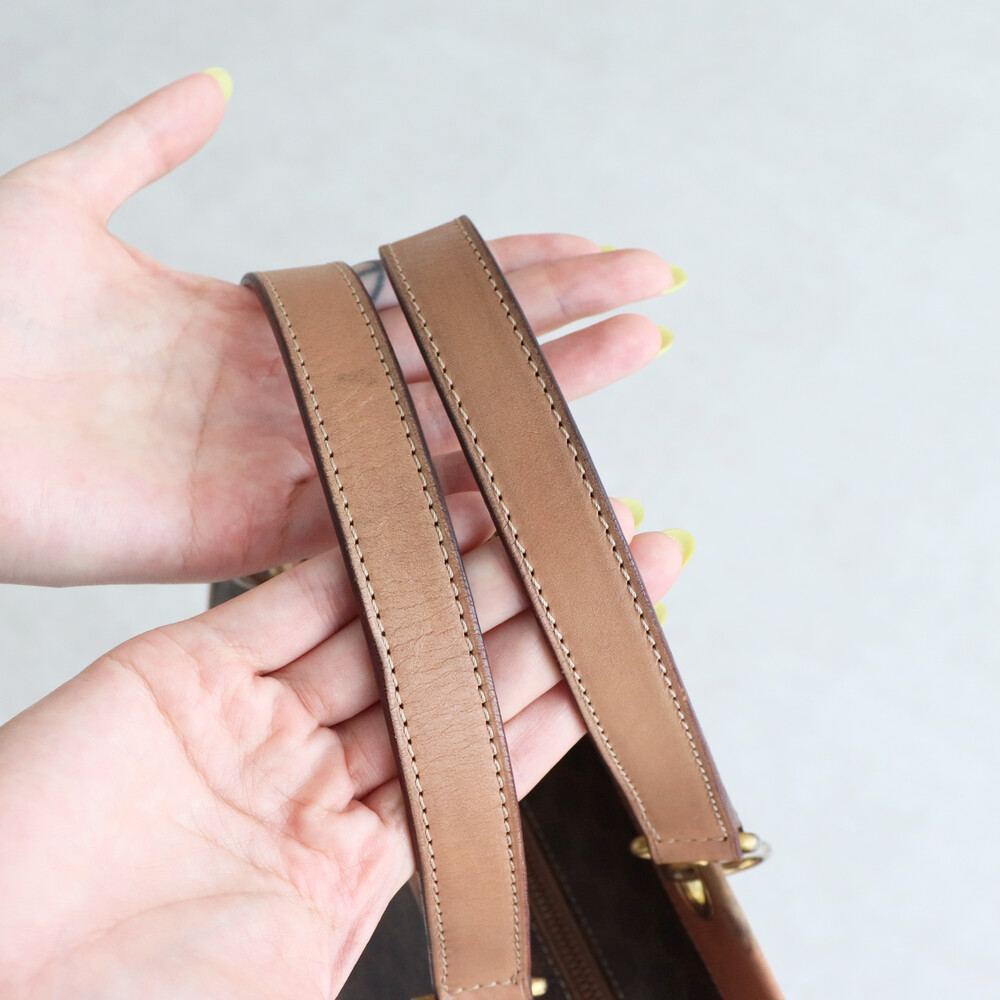 오래된 빈티지 모델 특성상 핸들과 바디를 연결하는 금속 장식 및 가죽 트림 일부에 자연스러운 색바램이 존재하지만, 사용에 불편함이 없습니다.