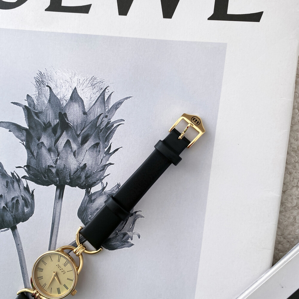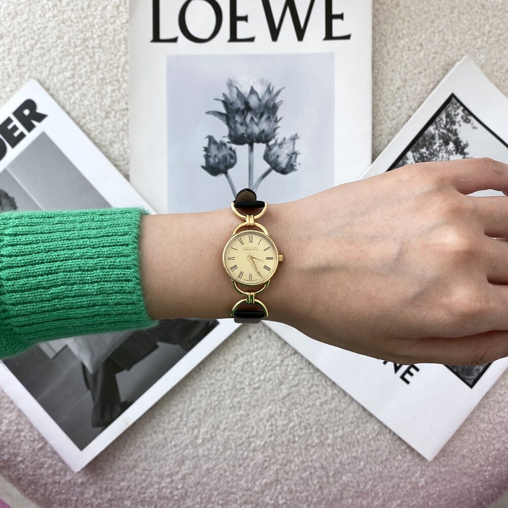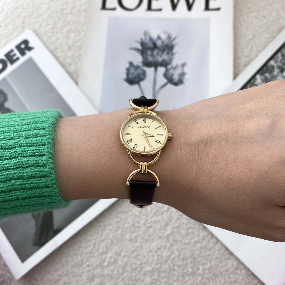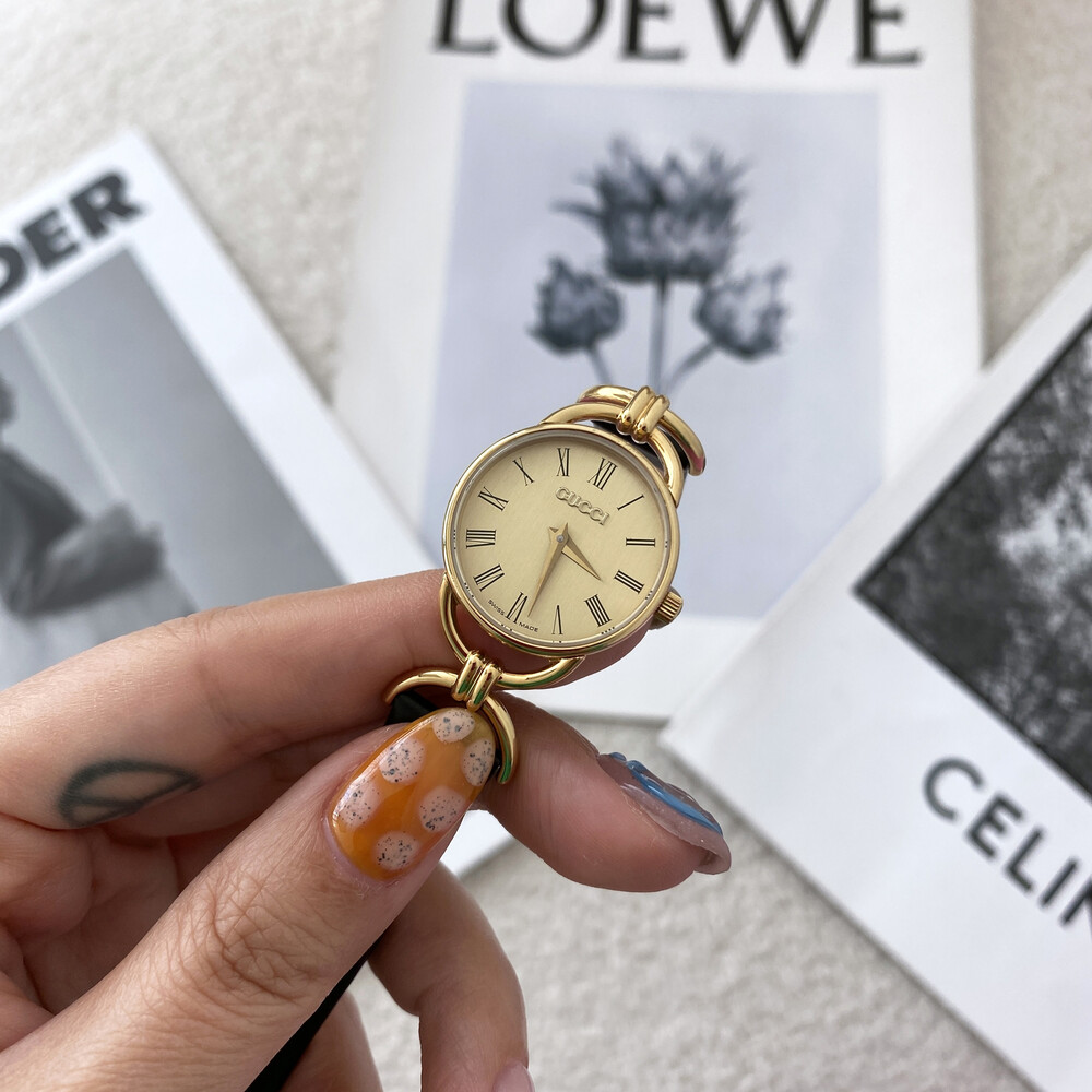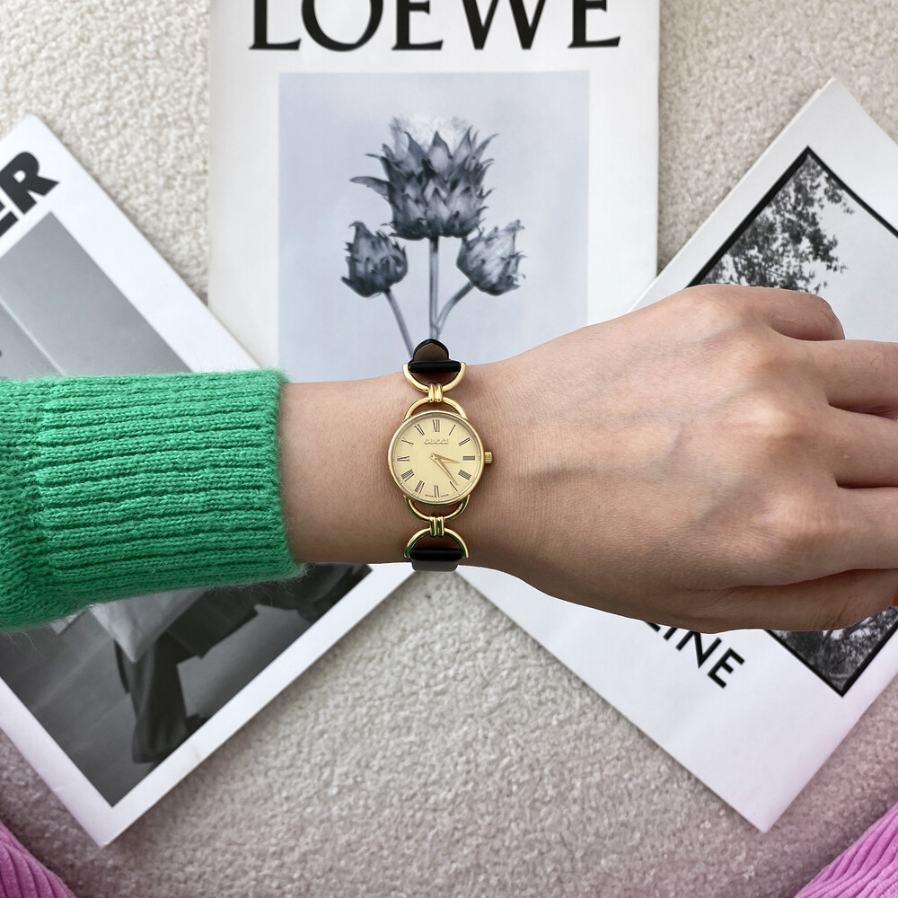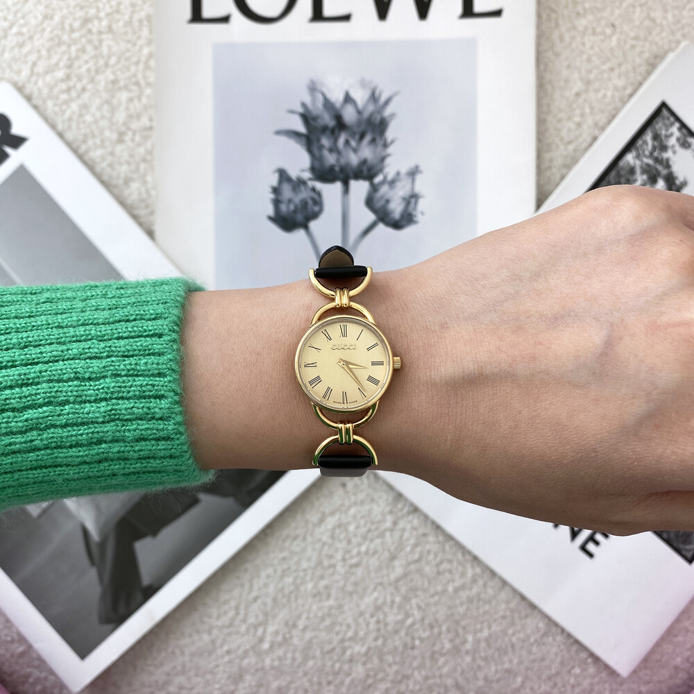 여성용으로 제작된 구찌 시계이며 쿼츠 무브먼트로 제작되었습니다.