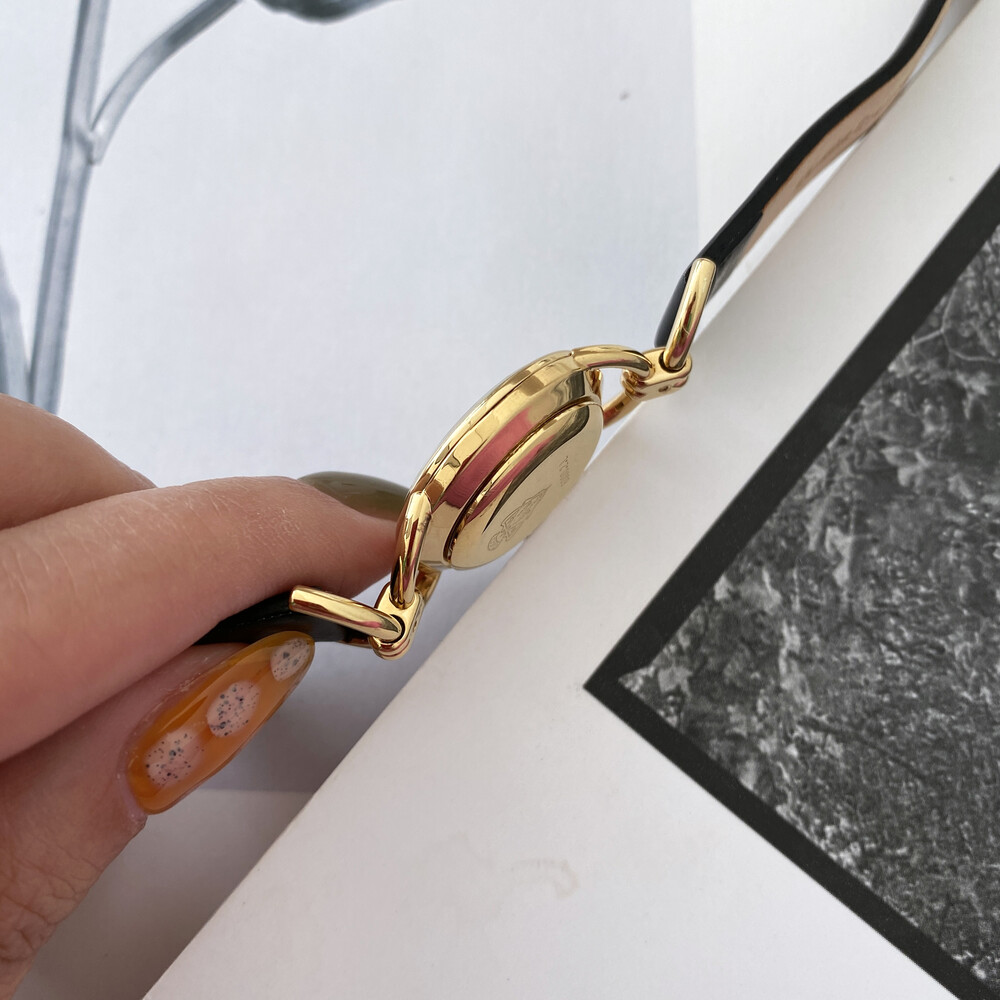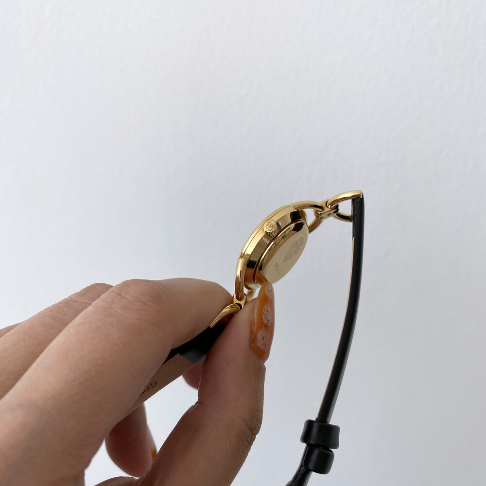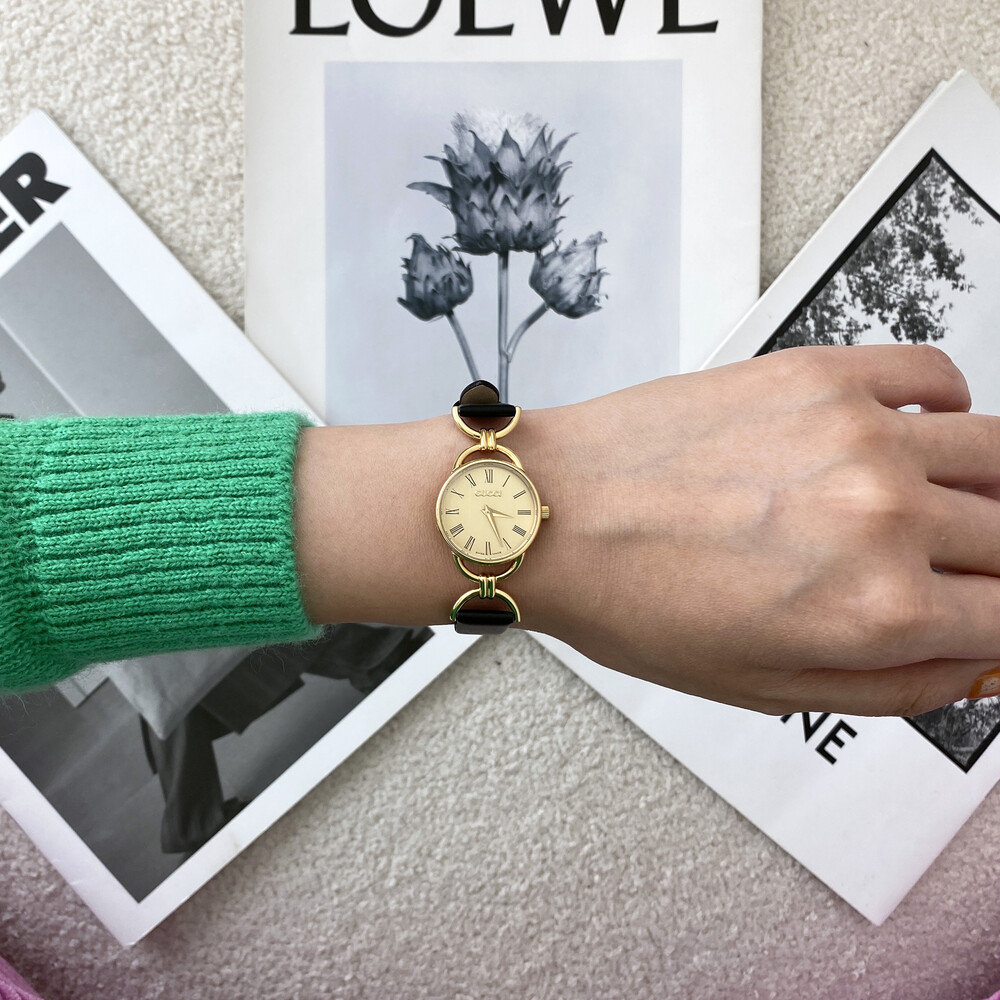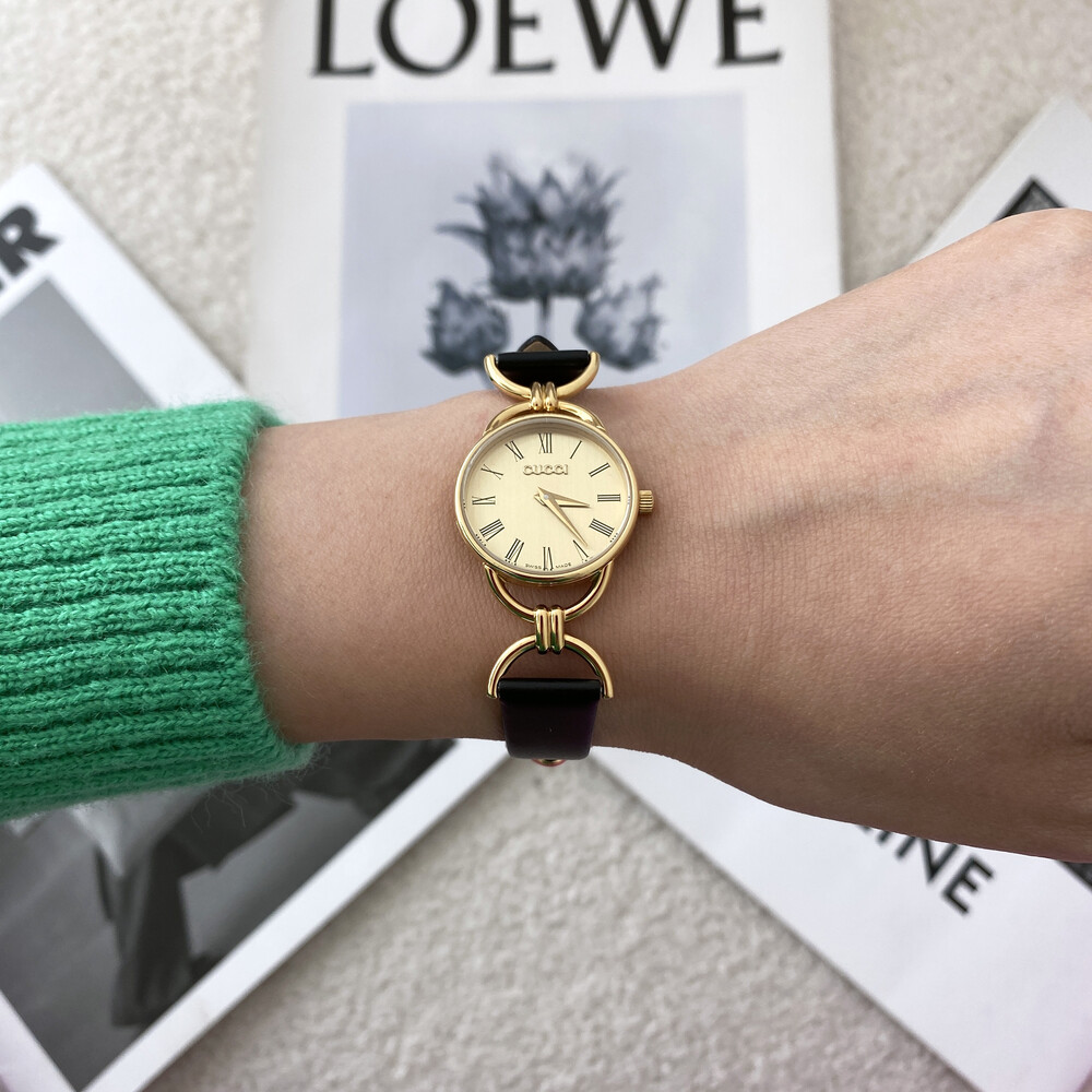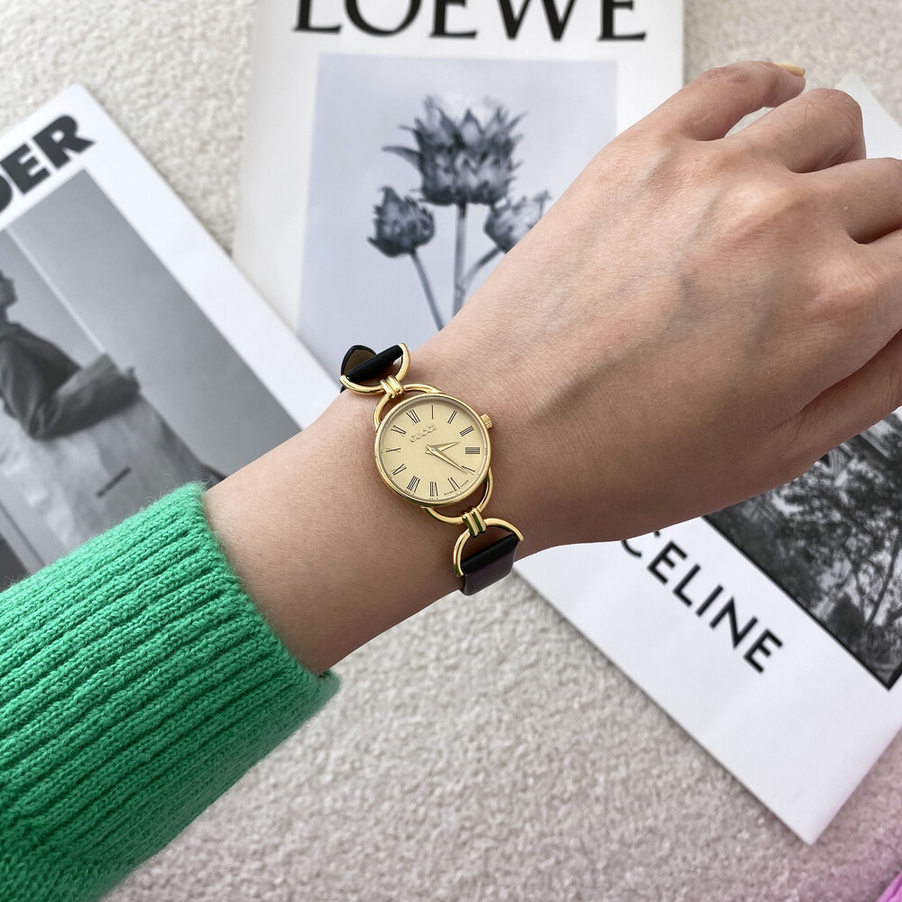 여성용으로 제작된 구찌 시계이며 쿼츠 무브먼트로 제작되었습니다.