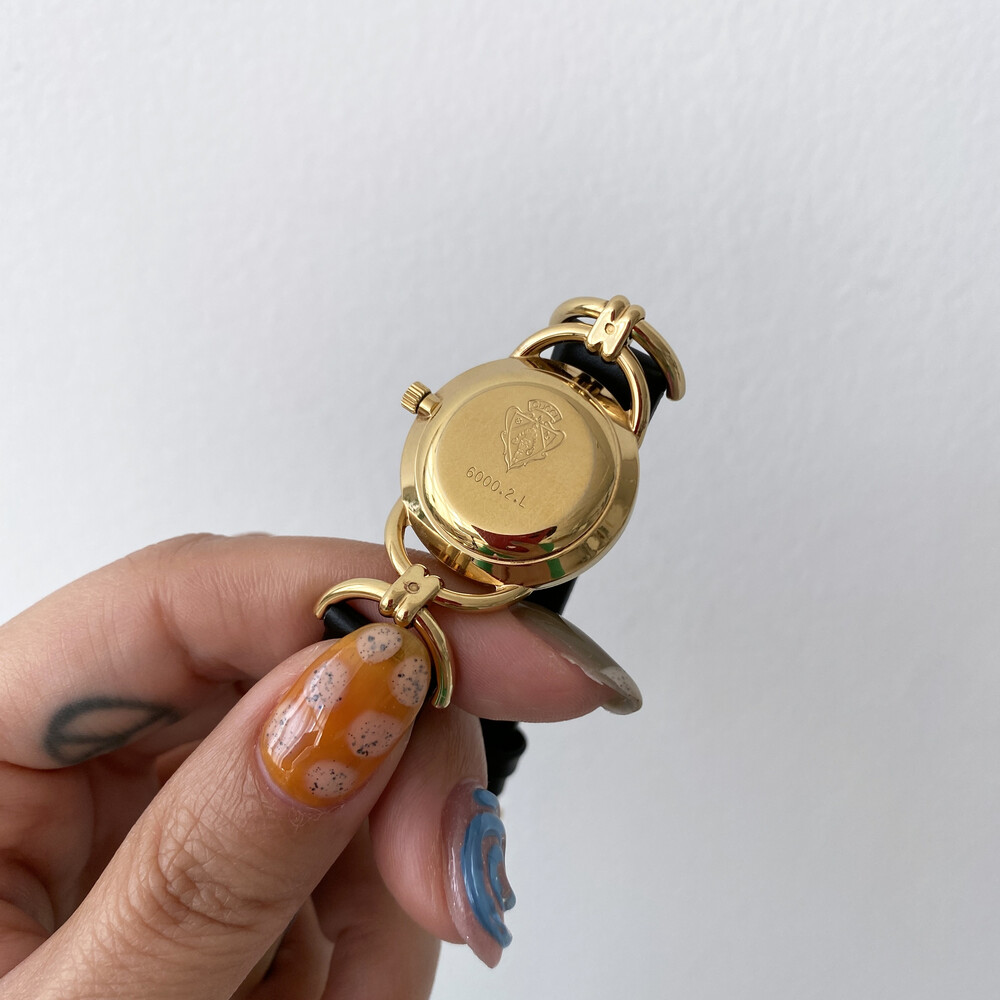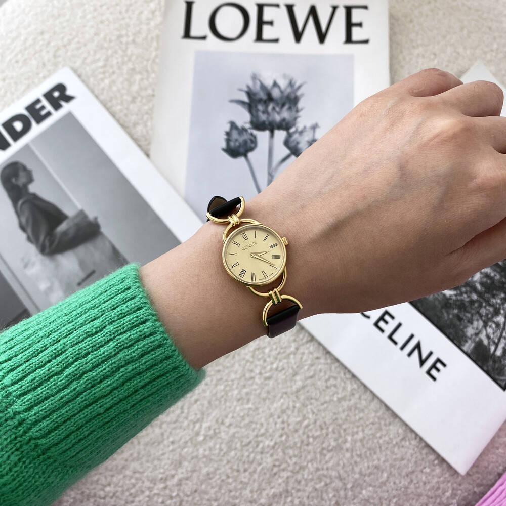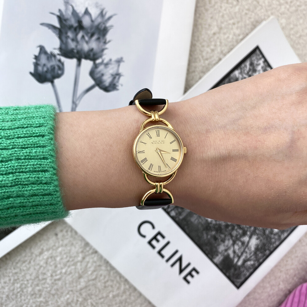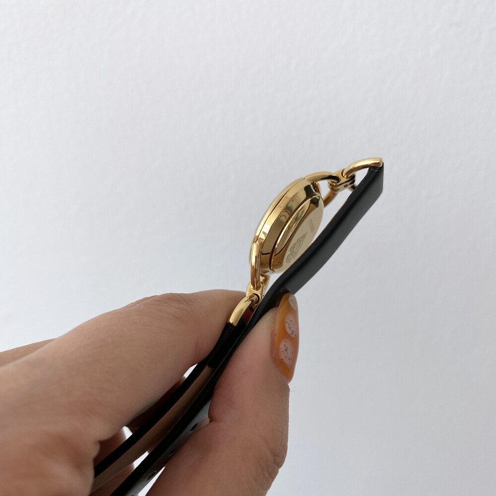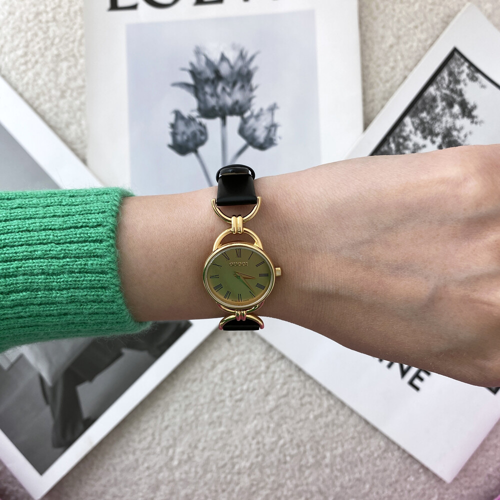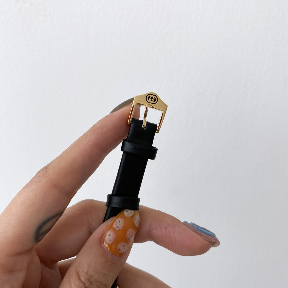 여성용으로 제작된 구찌 시계이며 쿼츠 무브먼트로 제작되었습니다.