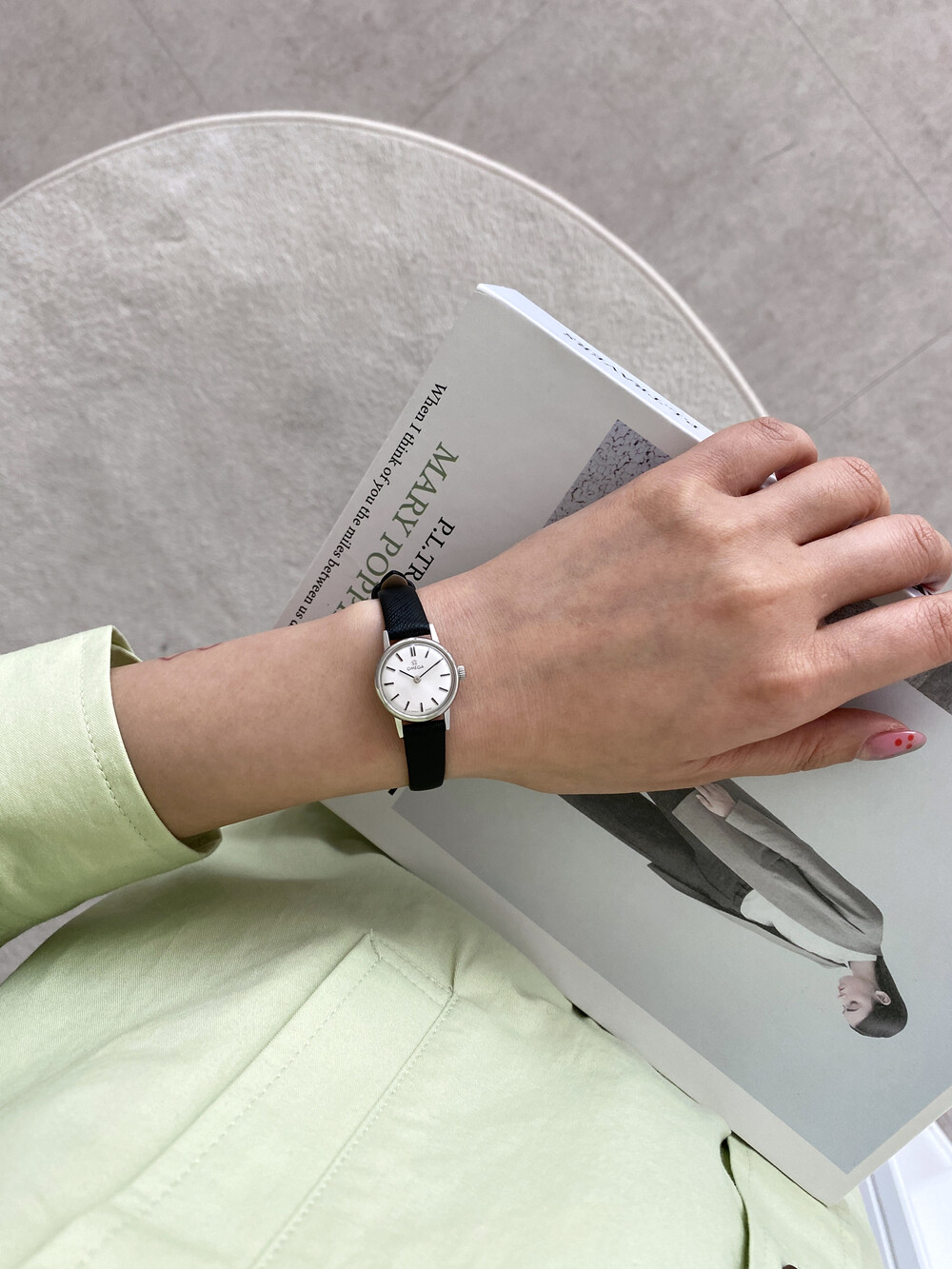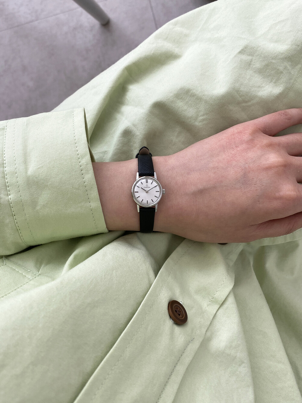 빈티지 오메가만의 클래식한 감성이 잘 담겨있는 모델로 비즈니스룩뿐만 아니라