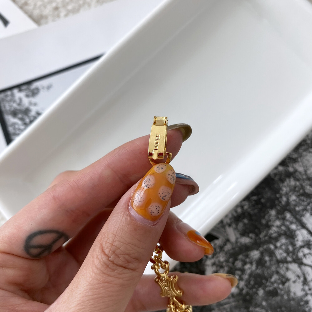골드 톤 커브 체인과 셀린느 시그니처 트리오페 장식이 매력적인 모델로 부드럽게