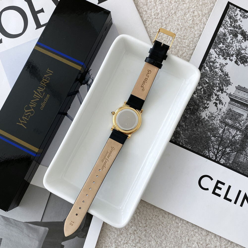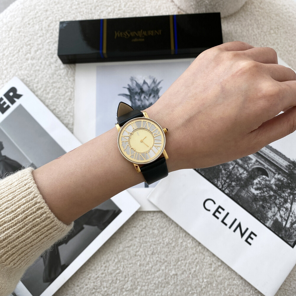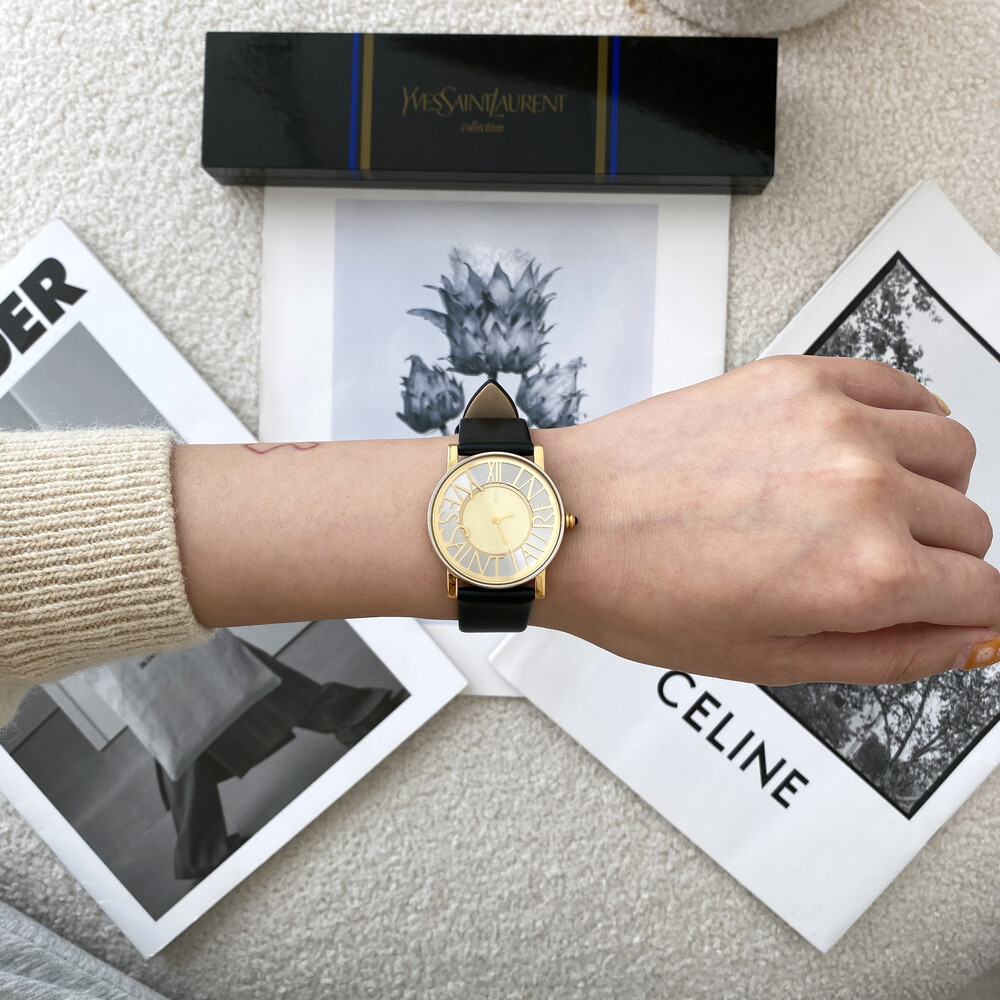 다이얼 위의 생로랑 로고가 매력적인 모델입니다.