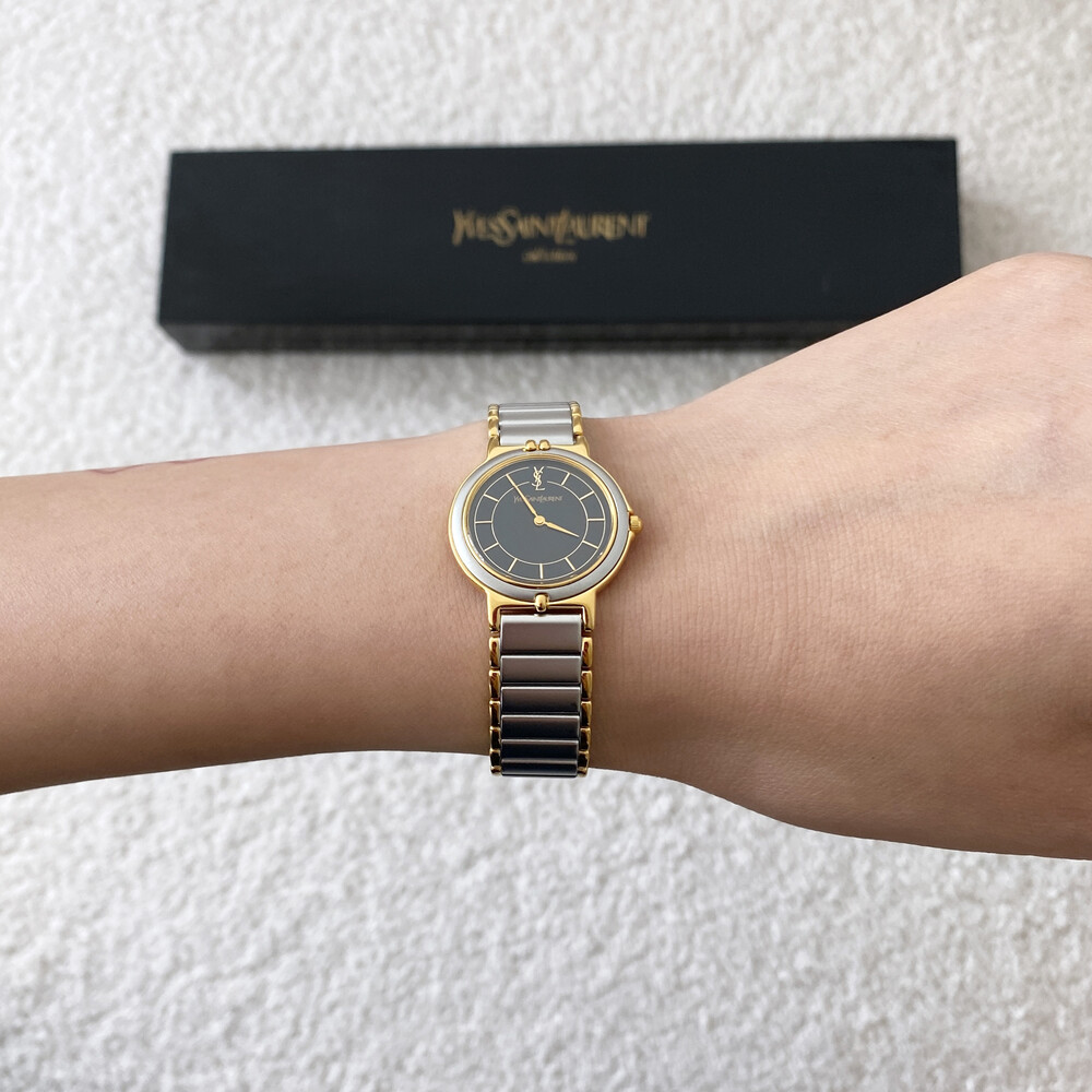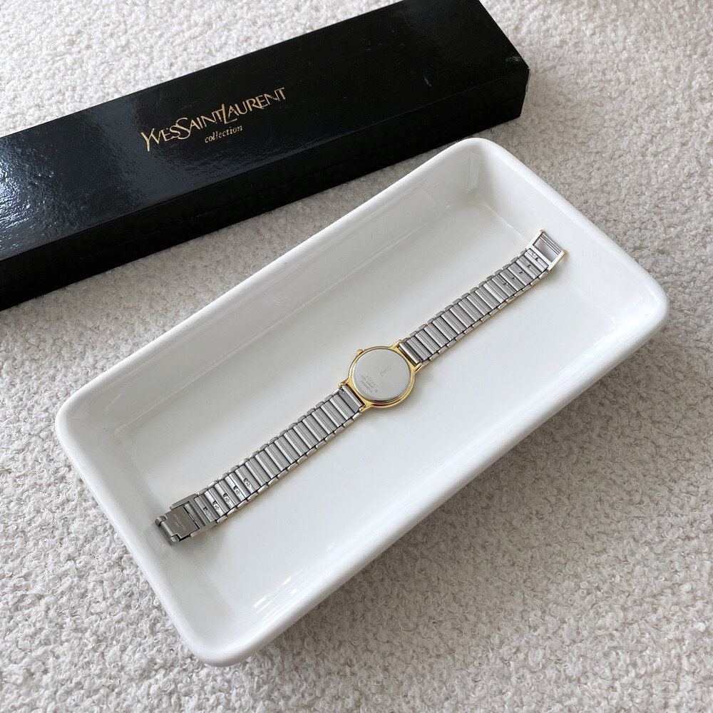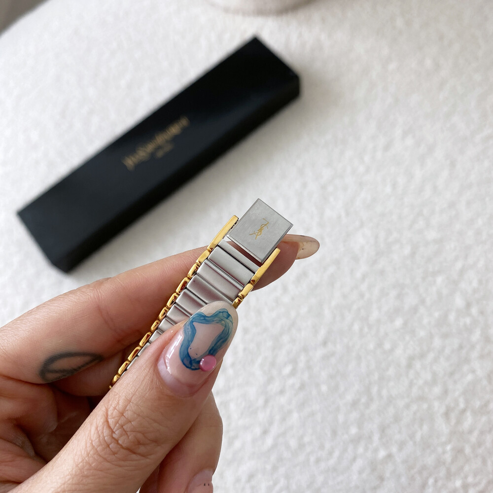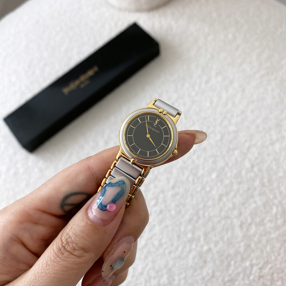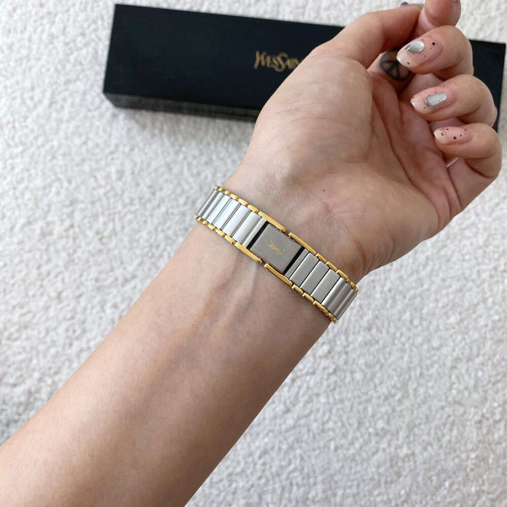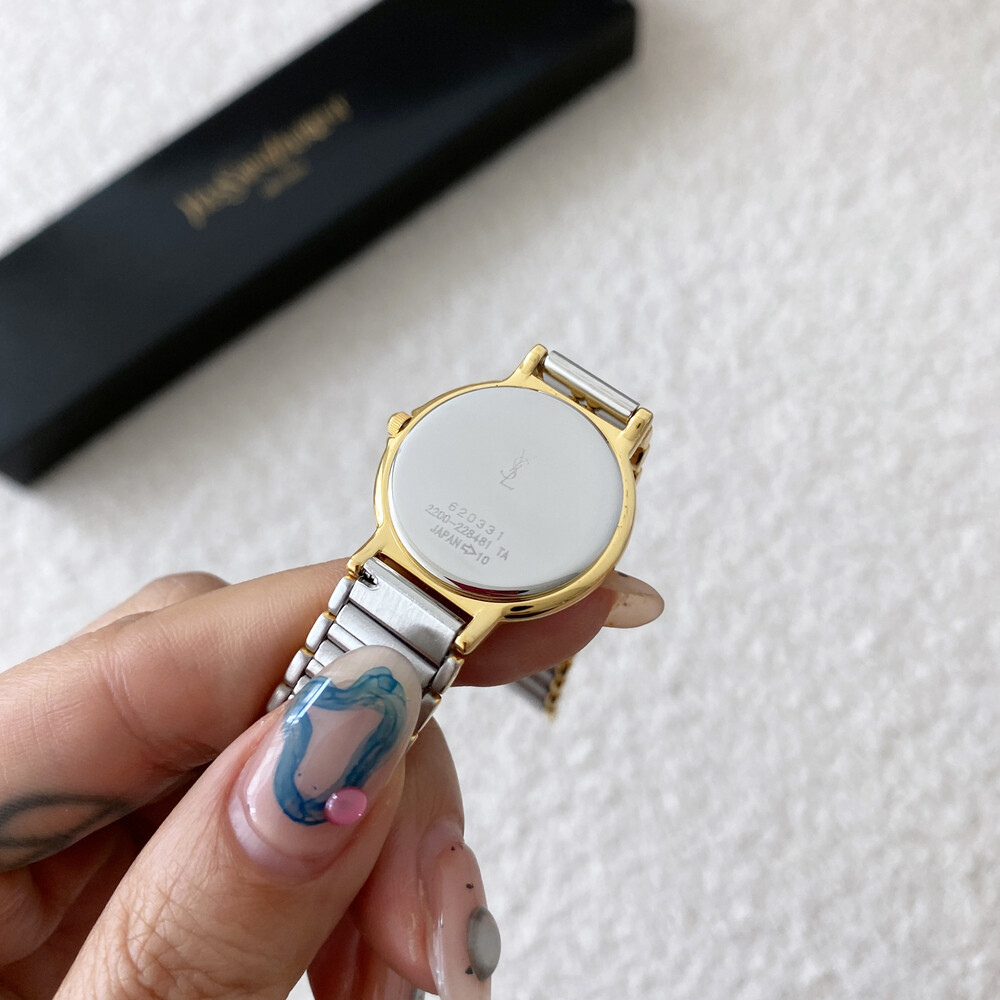 여성용으로 제작된 생로랑 시계이며 쿼츠 무브먼트로 제작되었습니다.