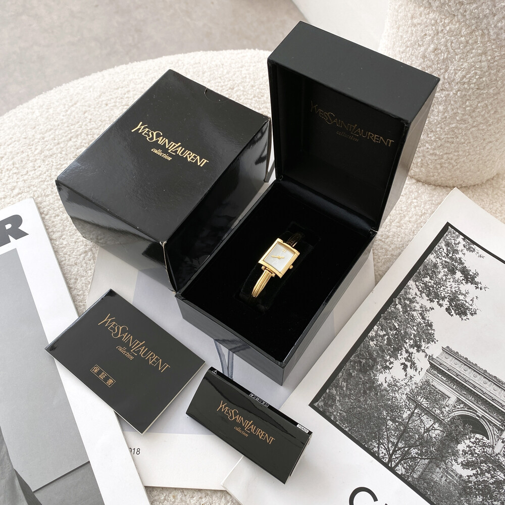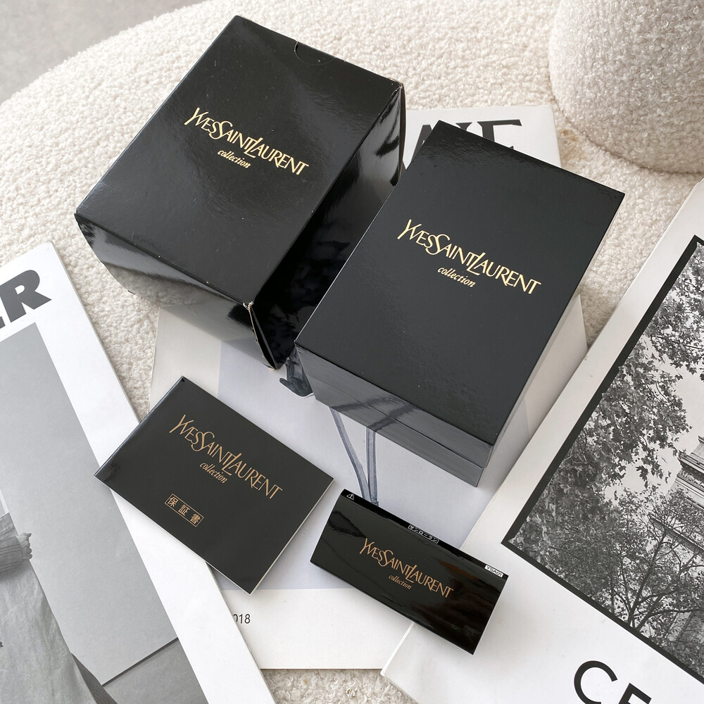 입생로랑 시계 케이스, 상자, 사용설명서, 보증서가 포함된 제품입니다.