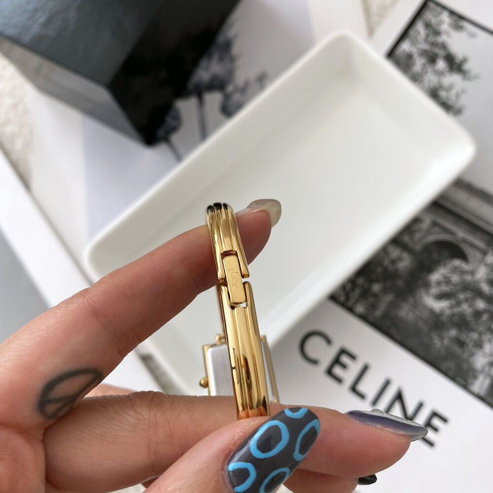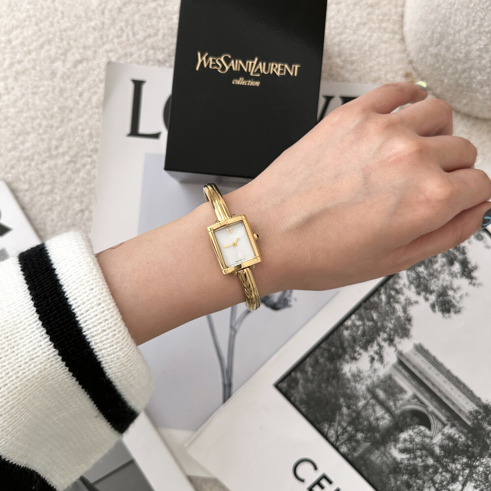 자개 다이얼 위를 장식하는 입생로랑 YSL 로고가 매력적인 시계입니다.