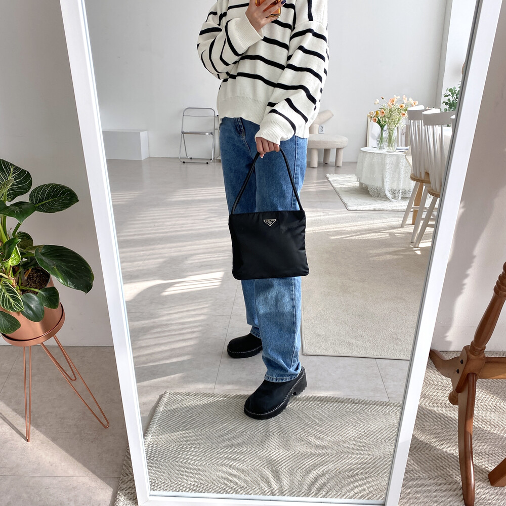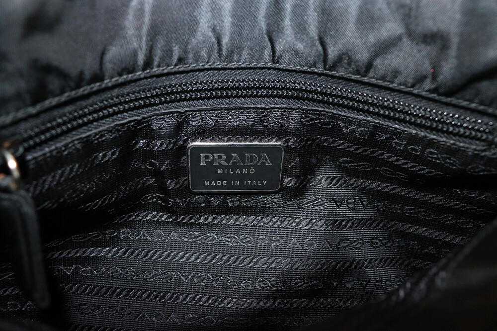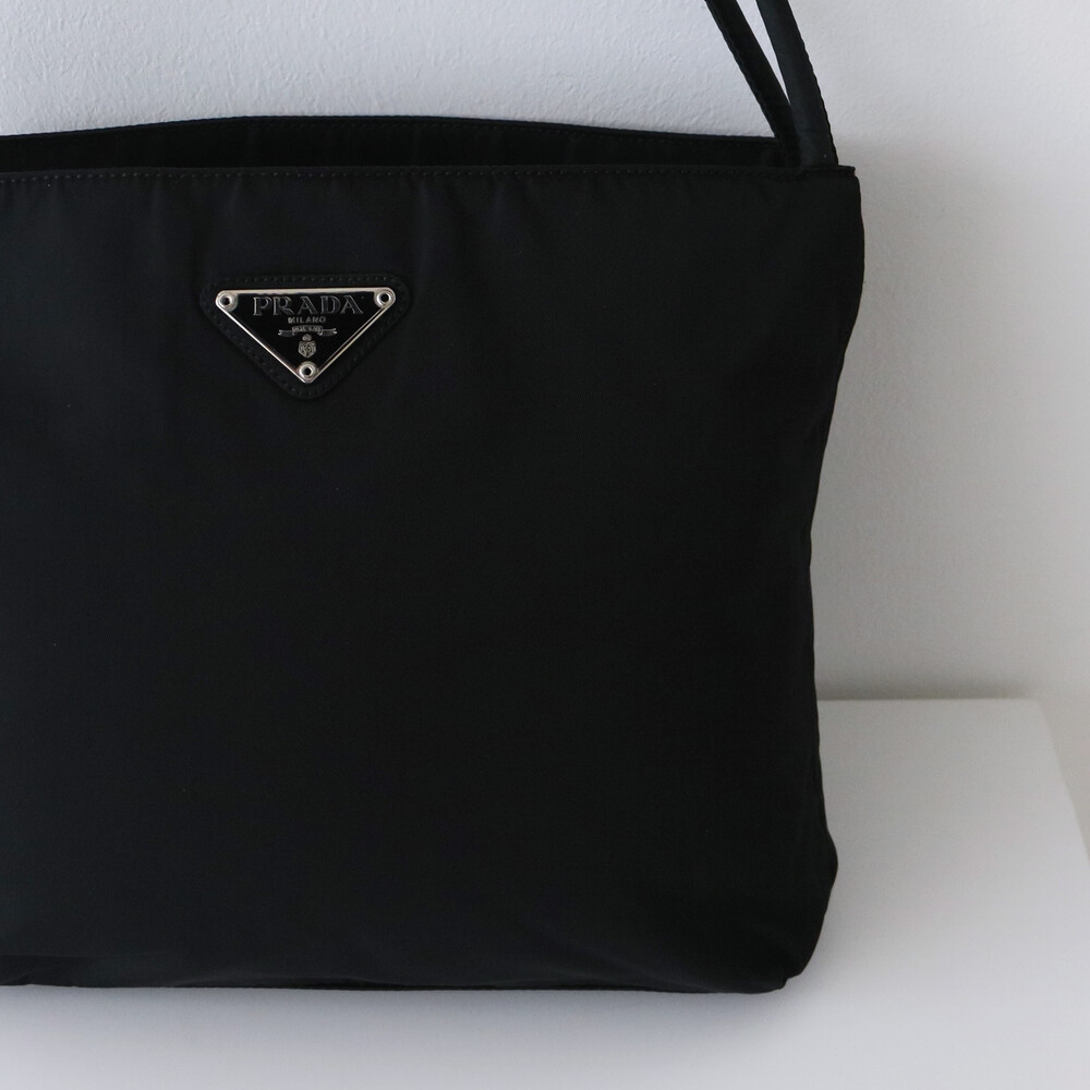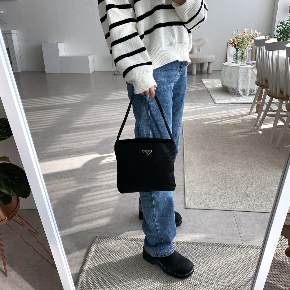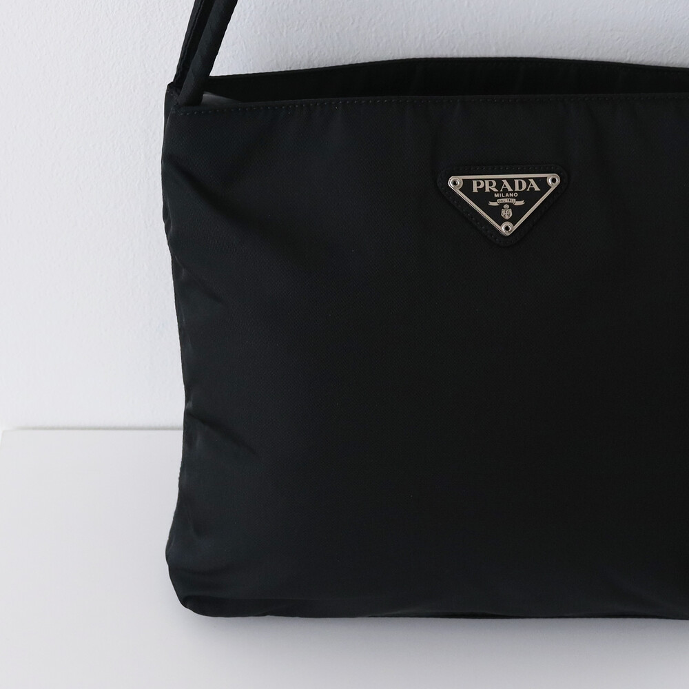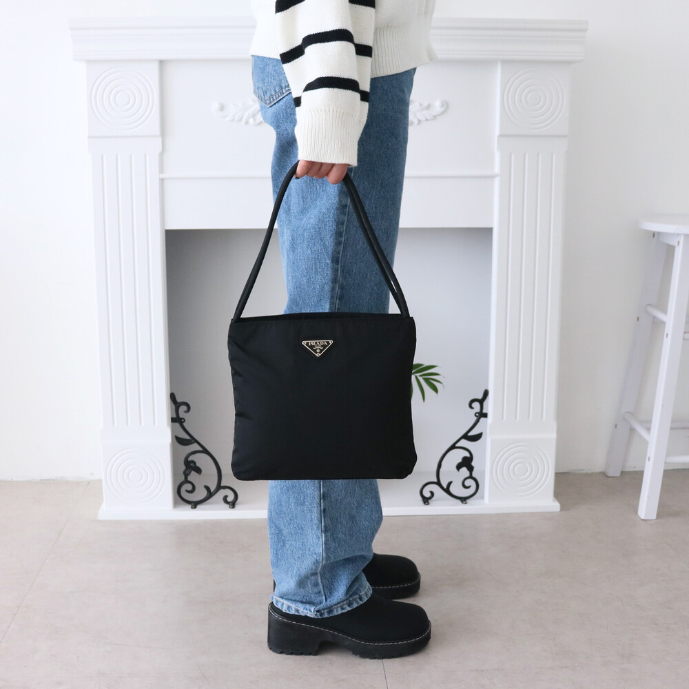 프라다 헤리티지 나일론 바디와 프라다 삼각 플레이트 장식이 매력적인 모델입니다.