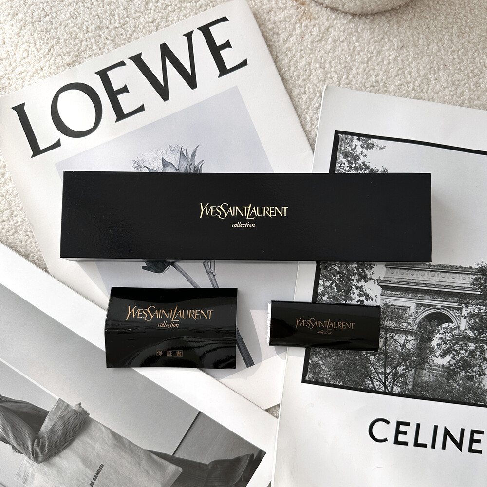 입생로랑 시계 케이스, 보증서, 사용설명서가 포함된 제품입니다.