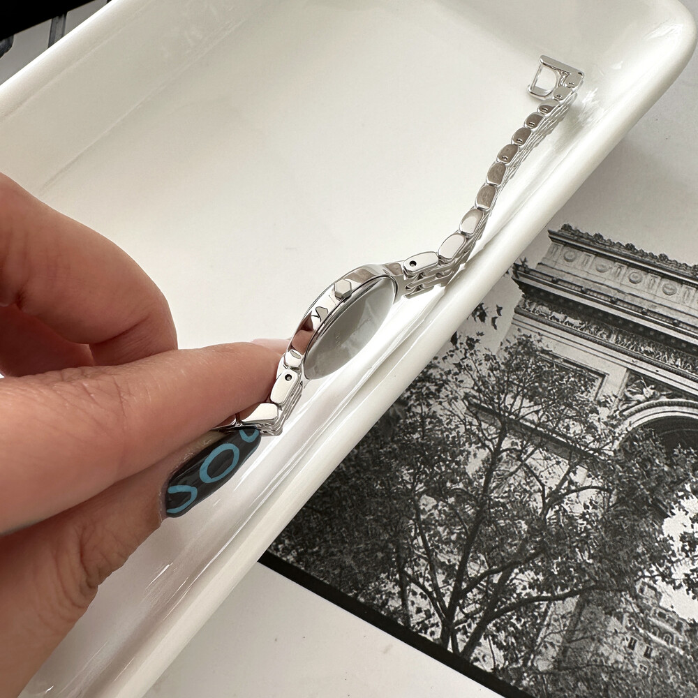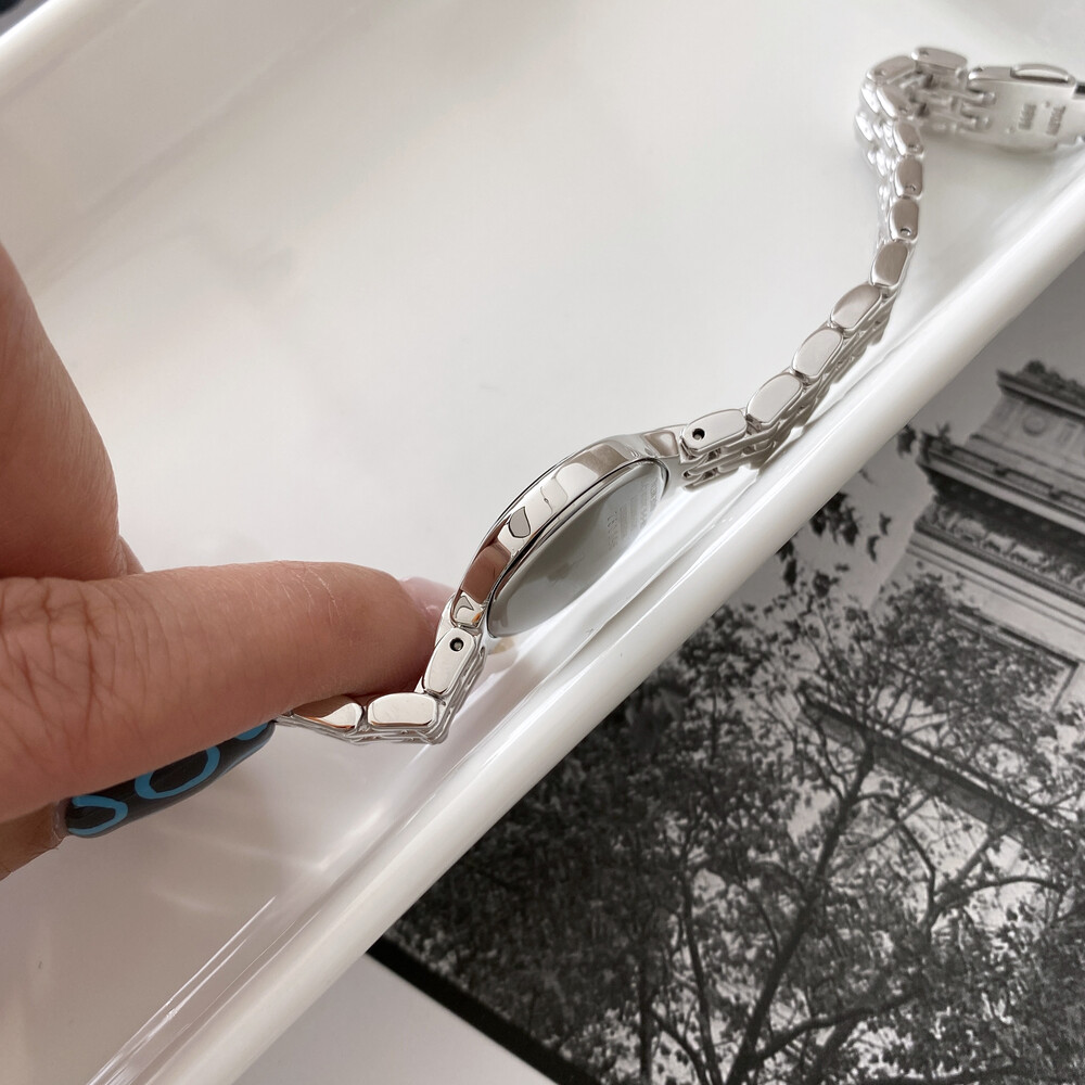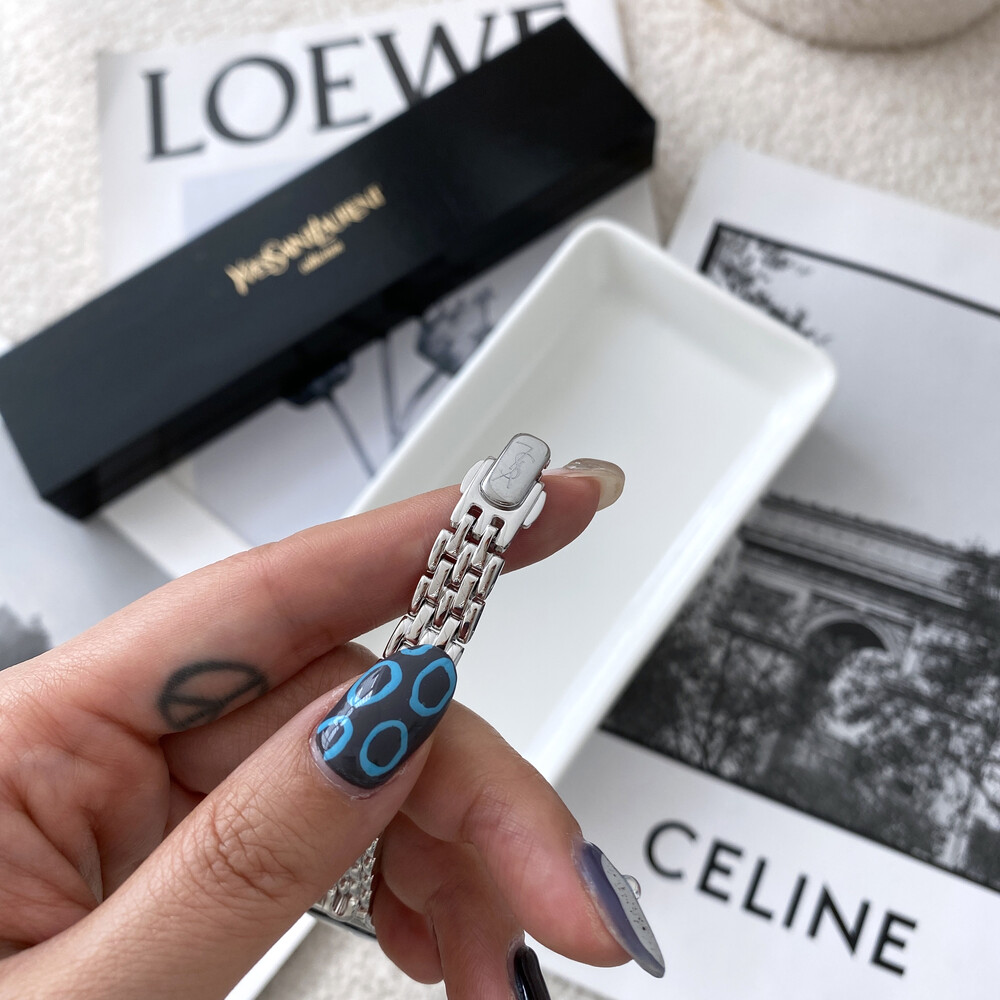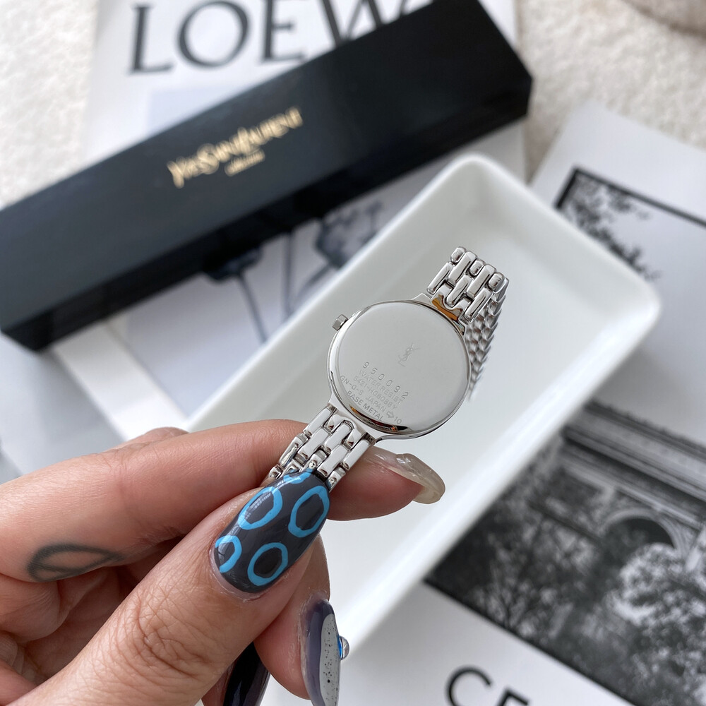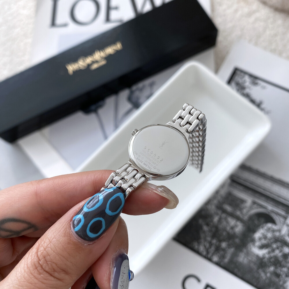 여성용으로 제작된 생로랑 시계이며 쿼츠 무브먼트로 제작되었습니다.
