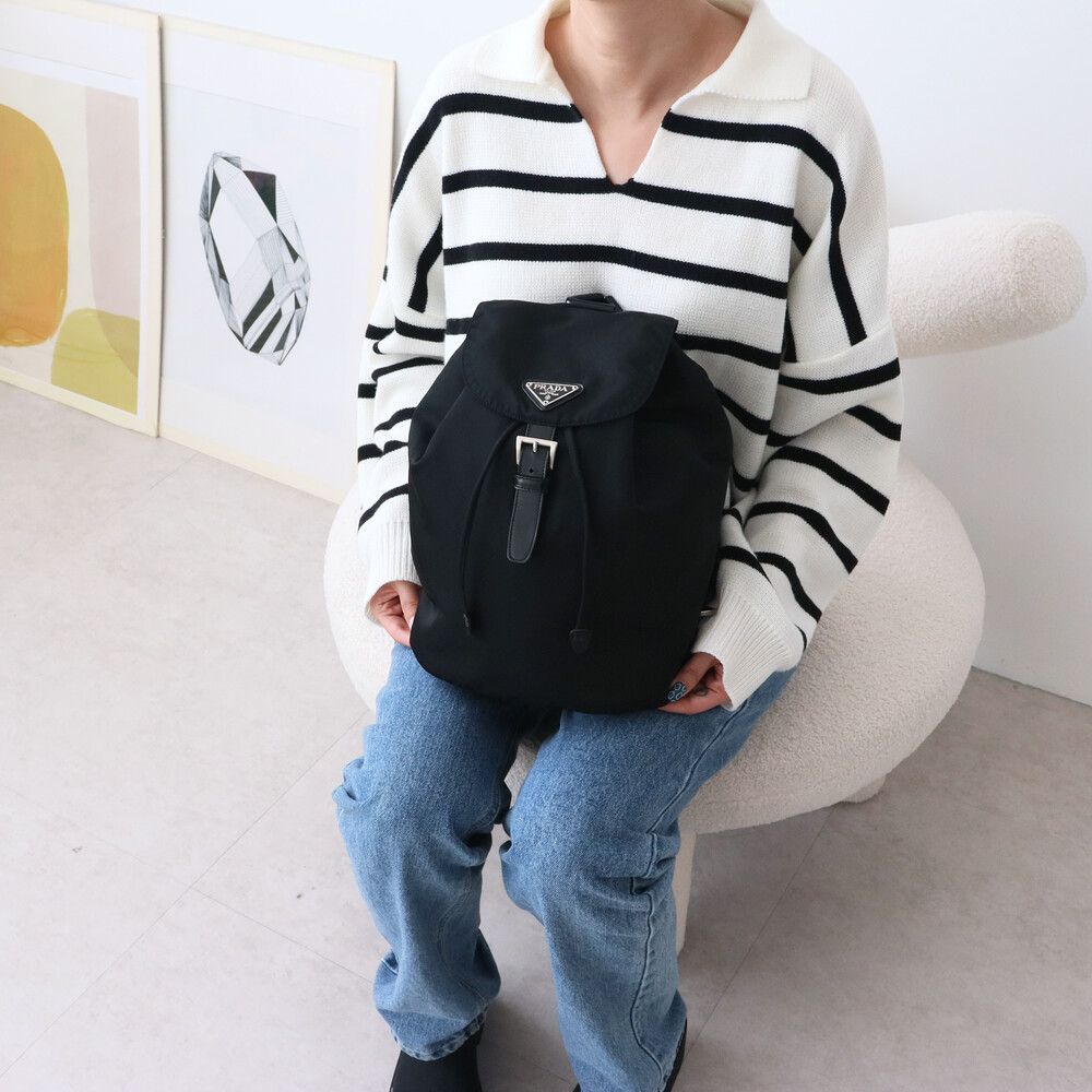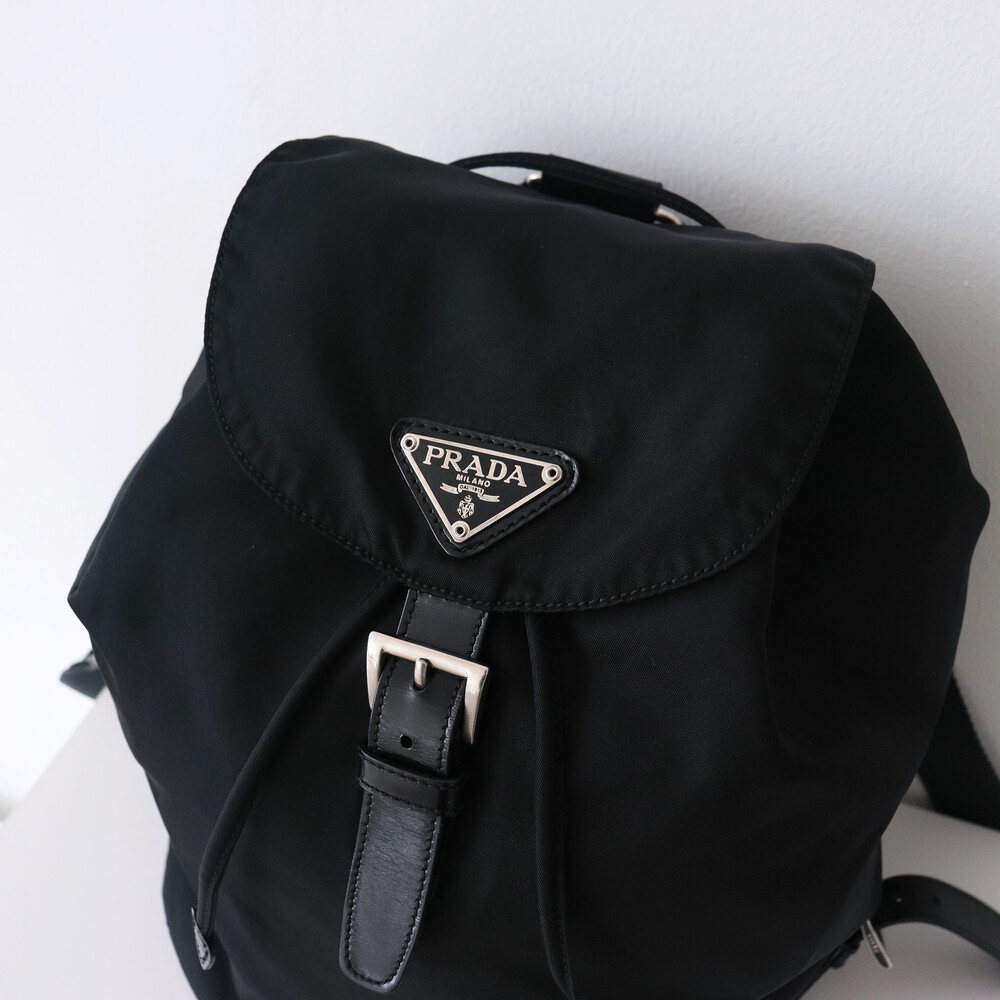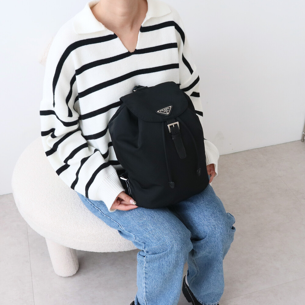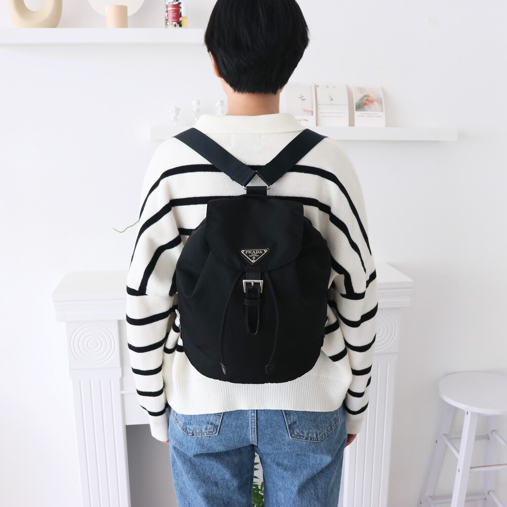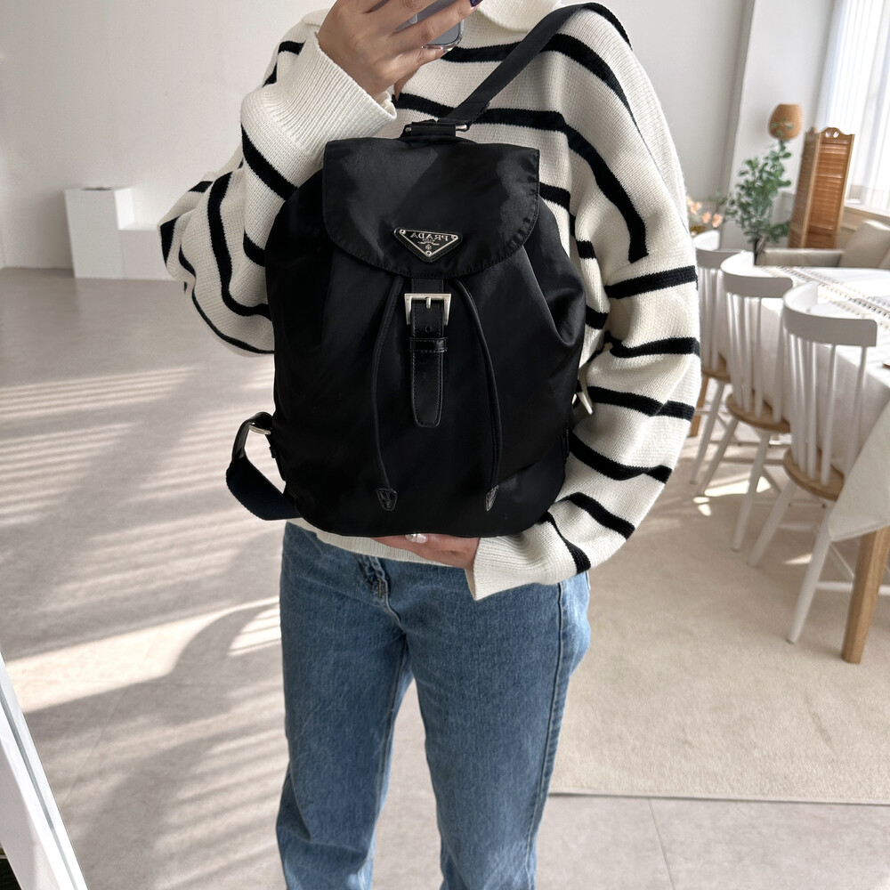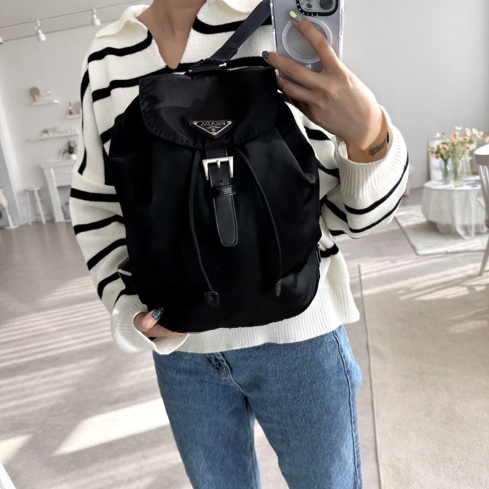 프라다 헤리티지 나일론 바디와 프라다 삼각 플레이트 장식이 매력적인 모델입니다.