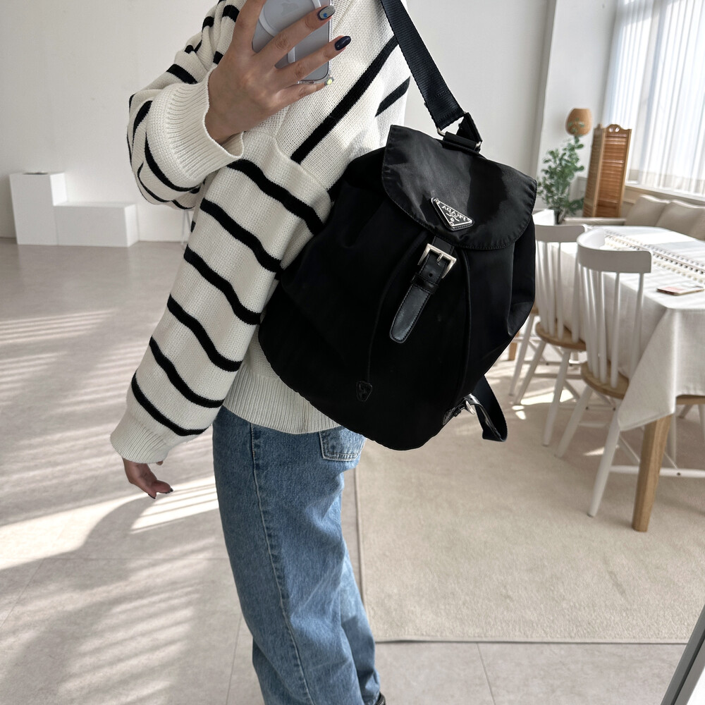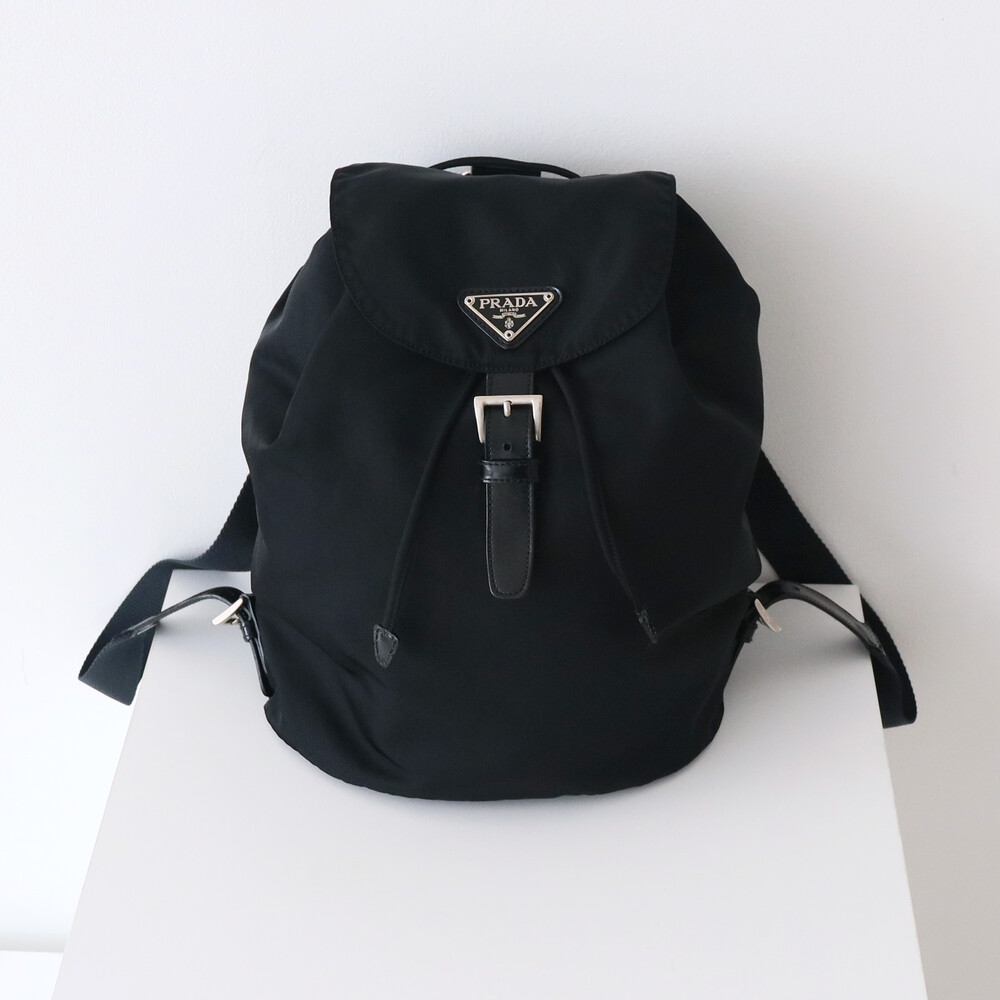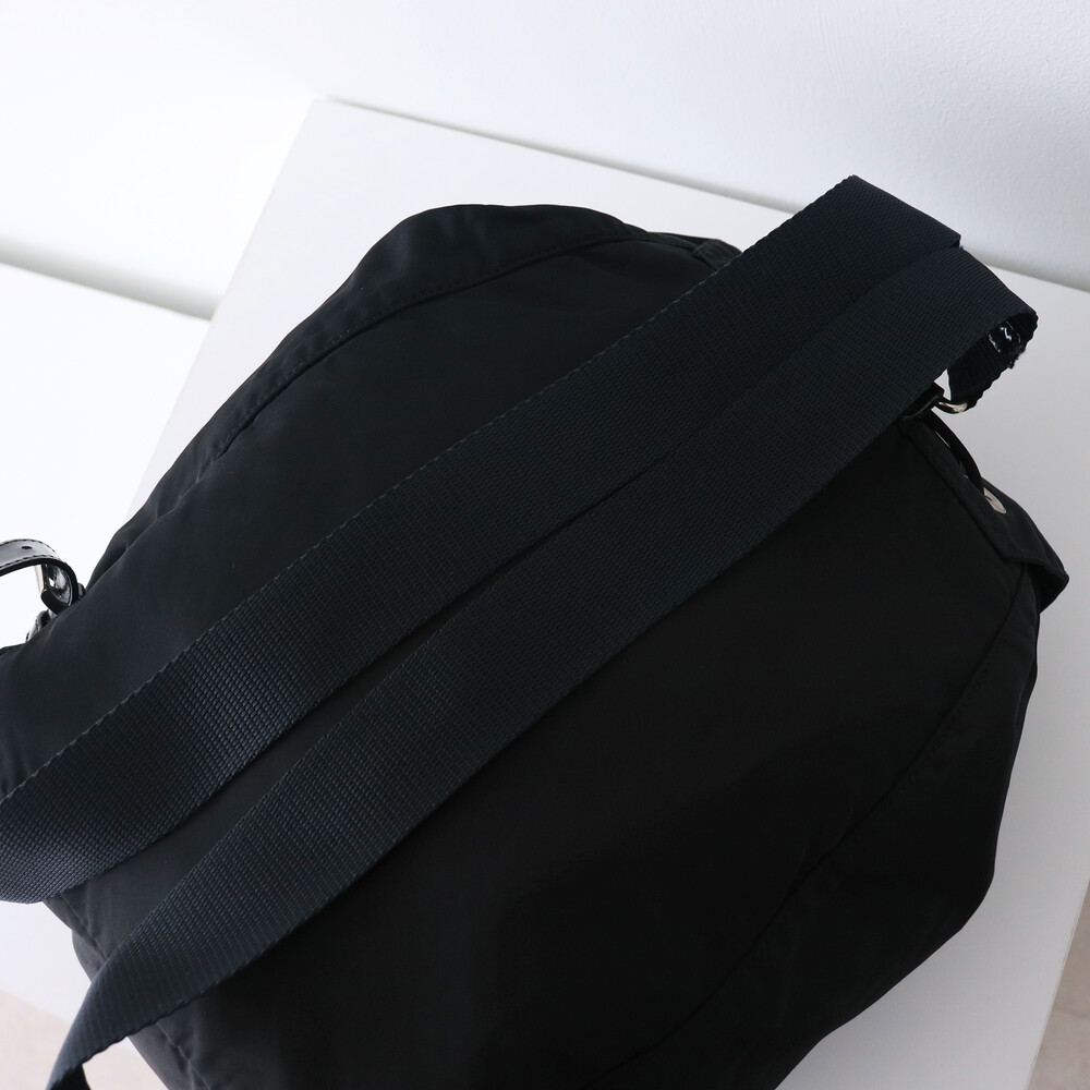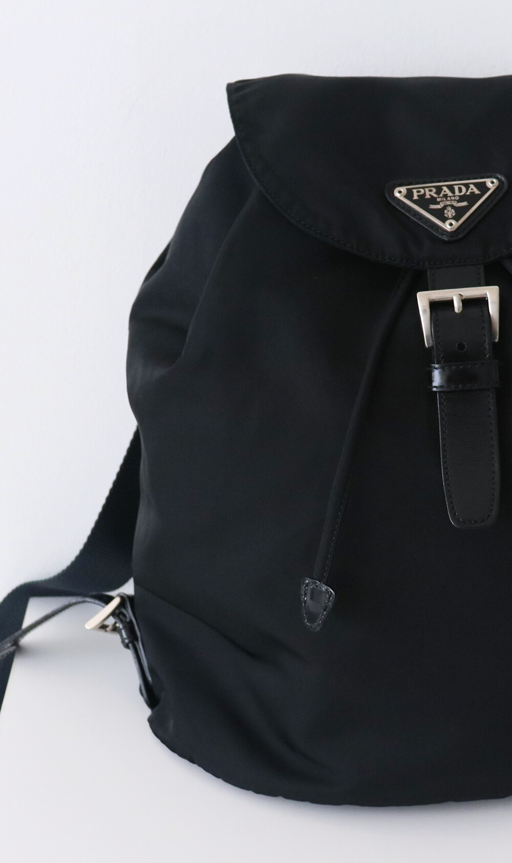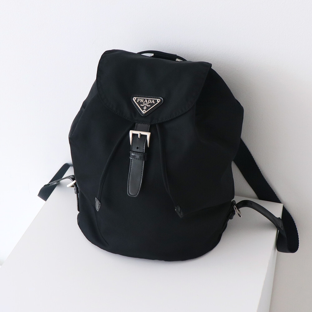 프라다 헤리티지 나일론 바디와 프라다 삼각 플레이트 장식이 매력적인 모델입니다.