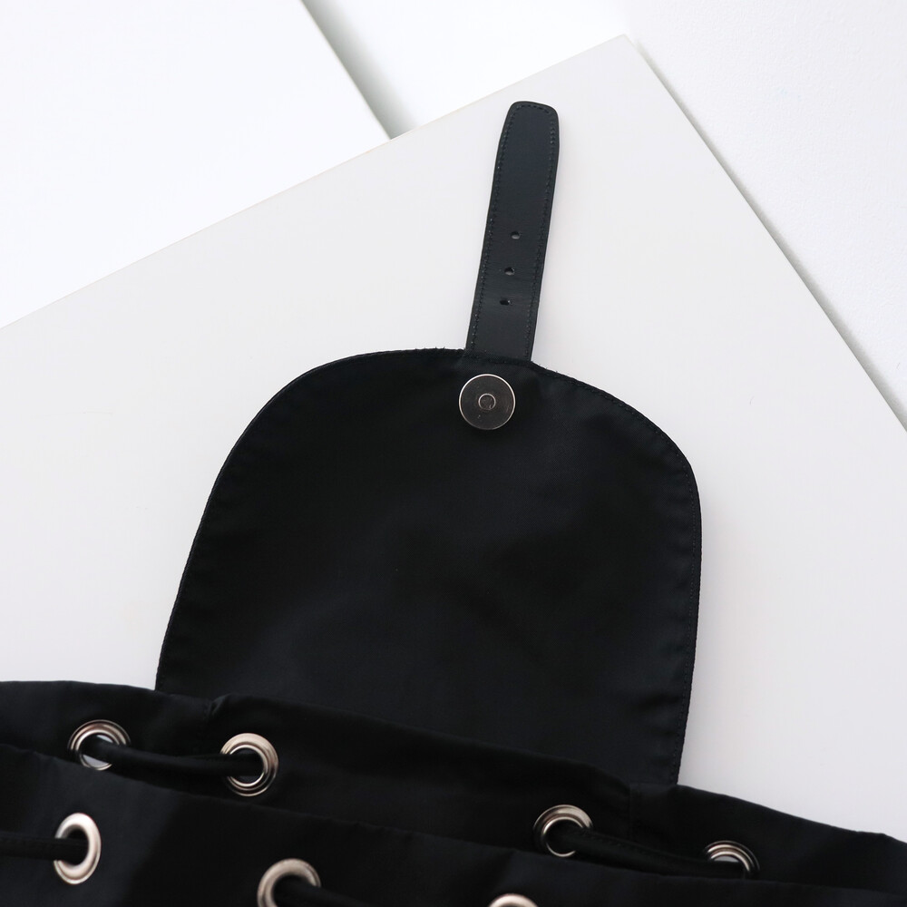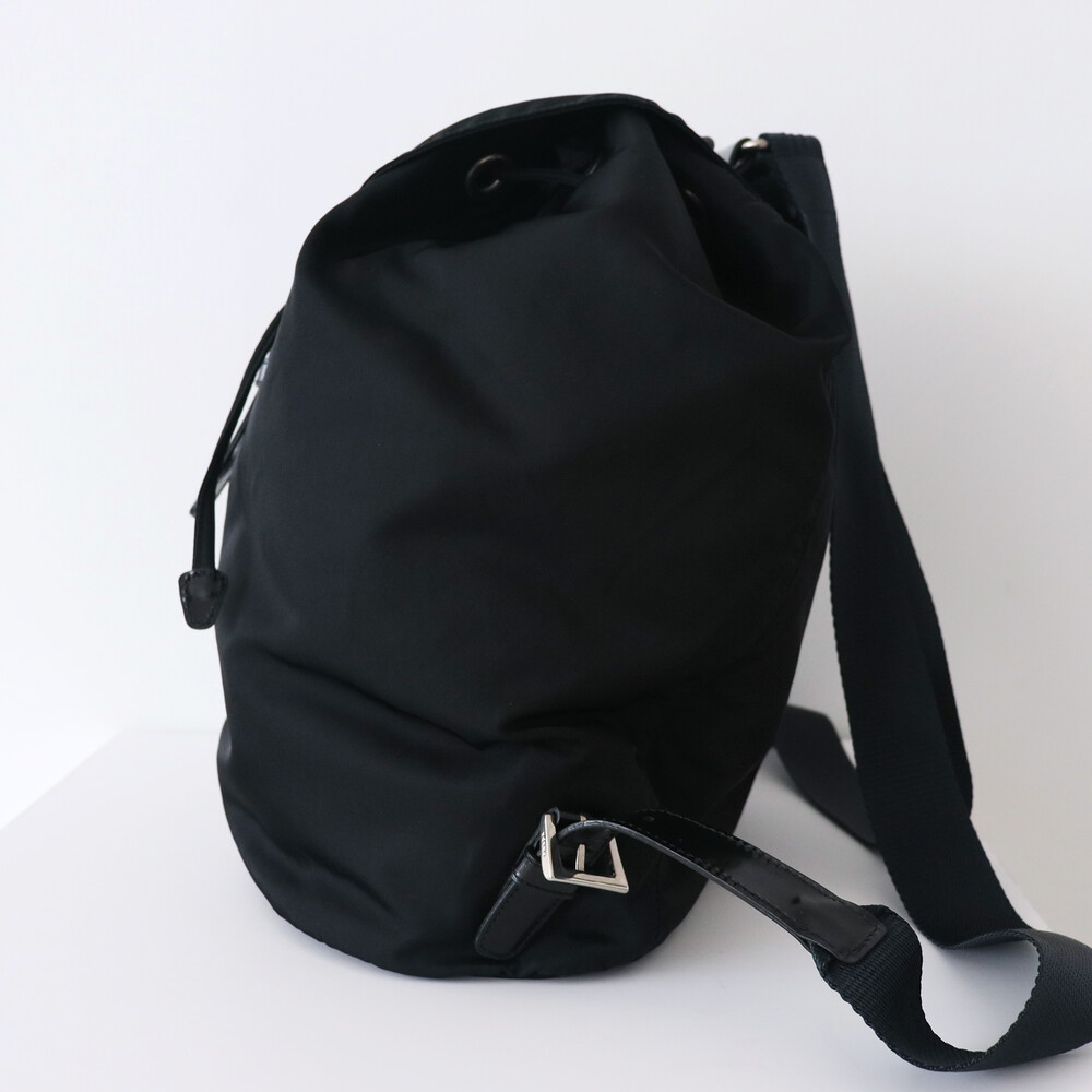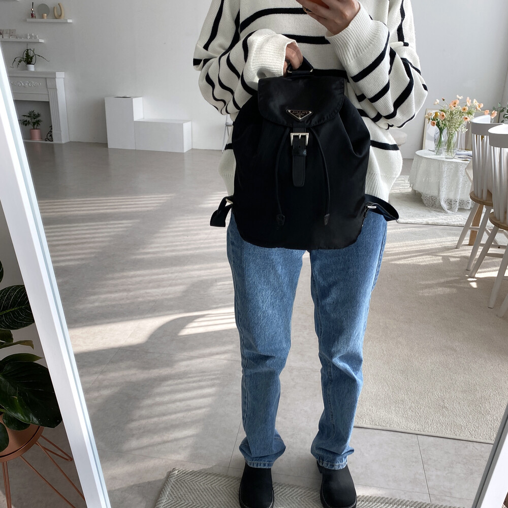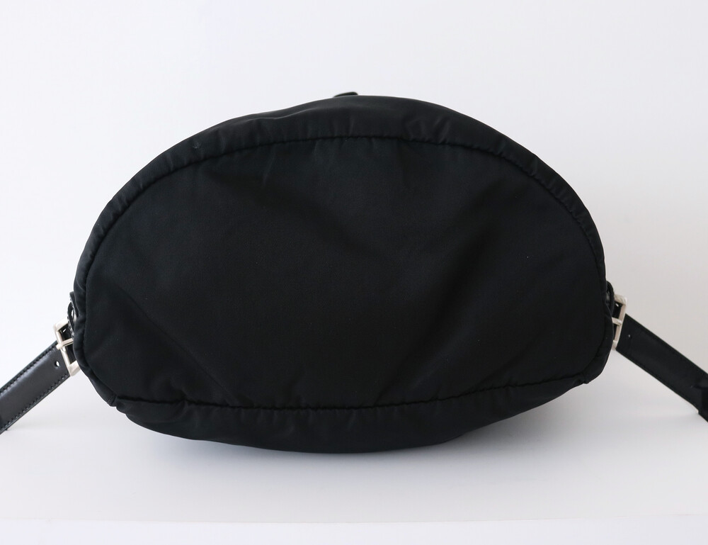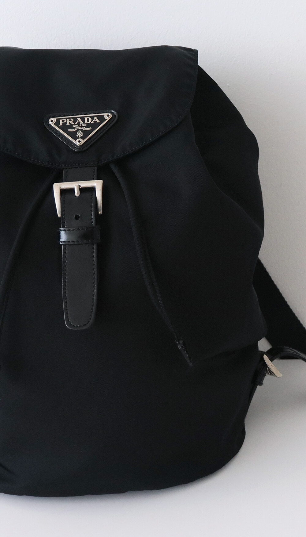 프라다 헤리티지 나일론 바디와 프라다 삼각 플레이트 장식이 매력적인 모델입니다.
