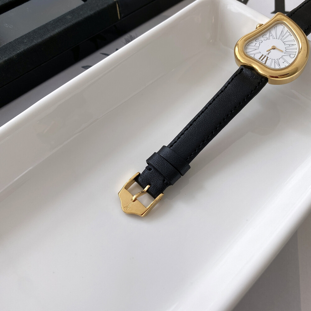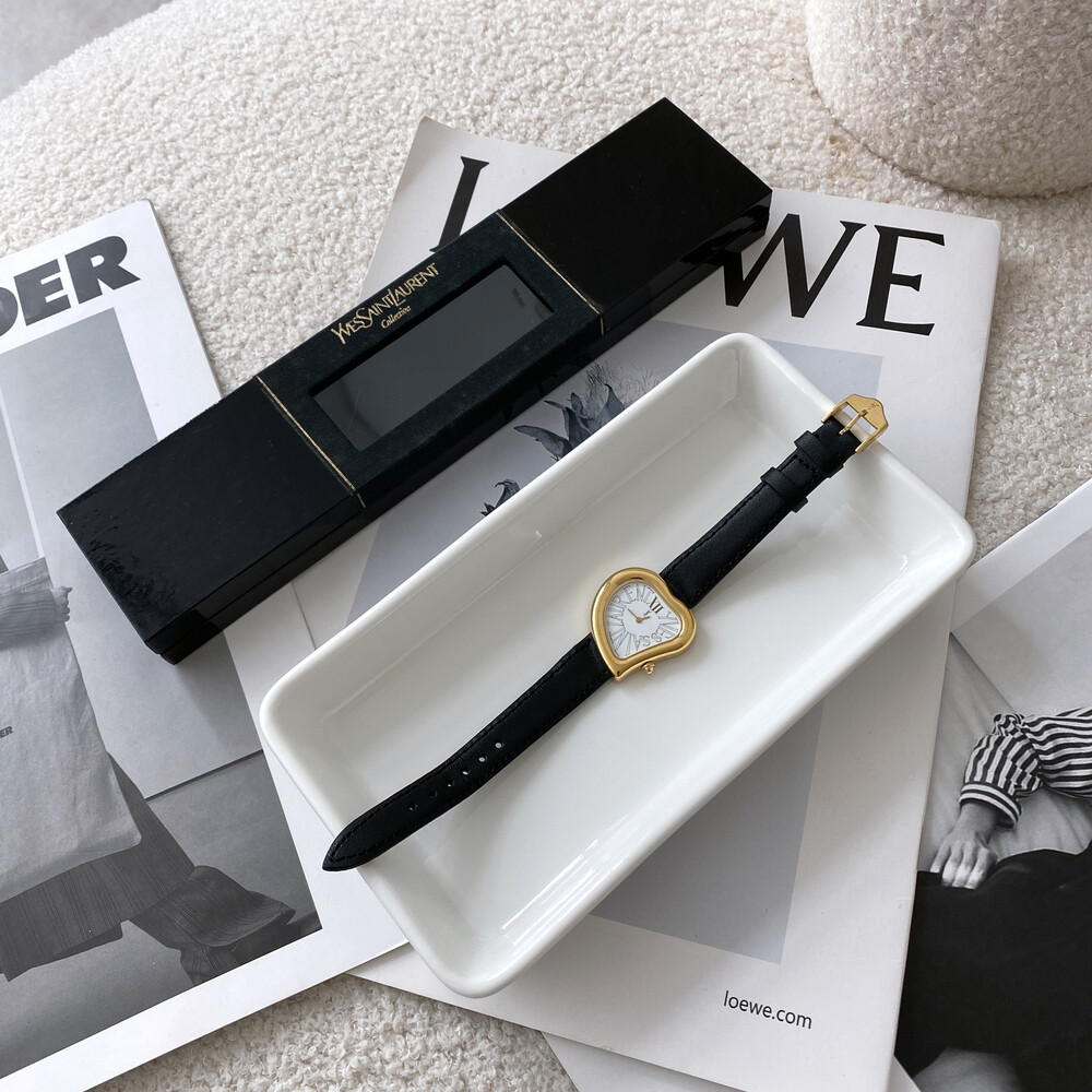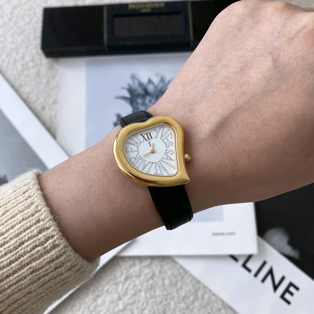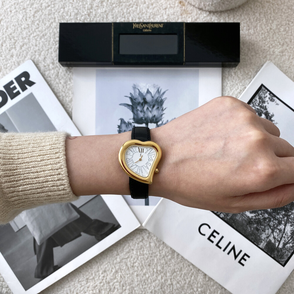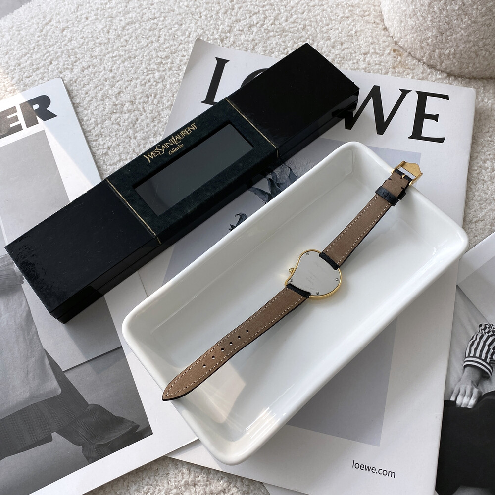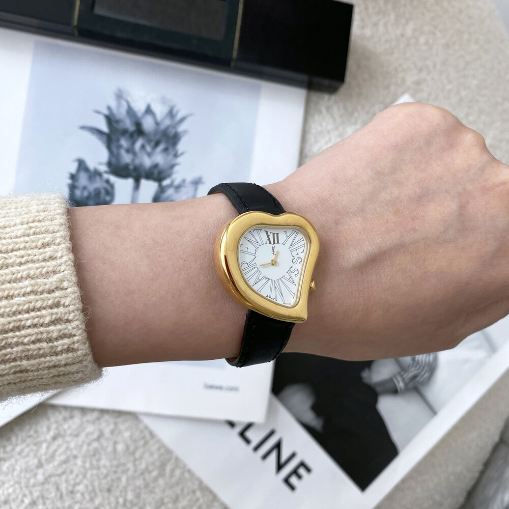 입생로랑 40주년을 기념하여 제작된 모델로 골드 톤 하트 케이스와 가죽 밴드,