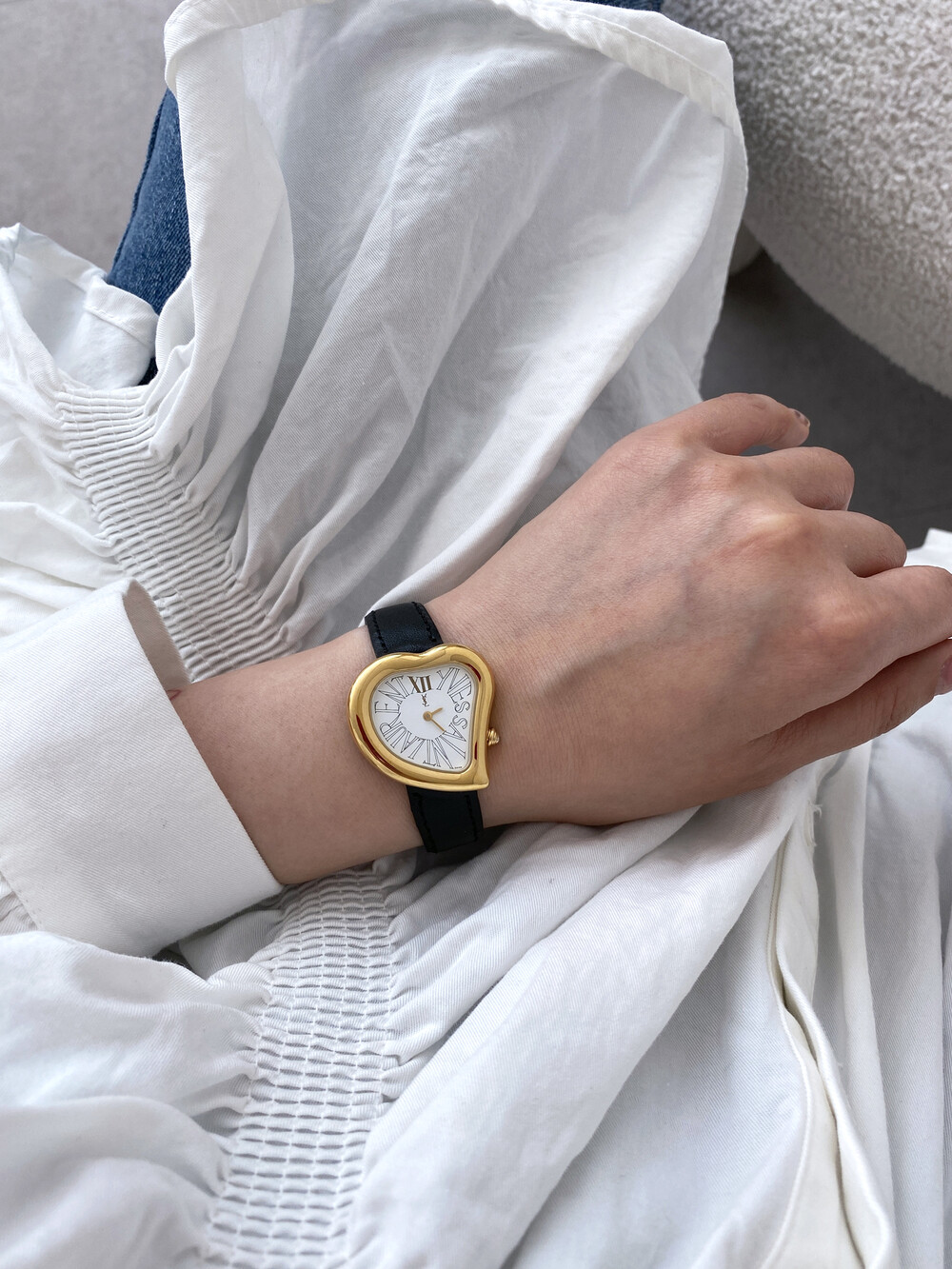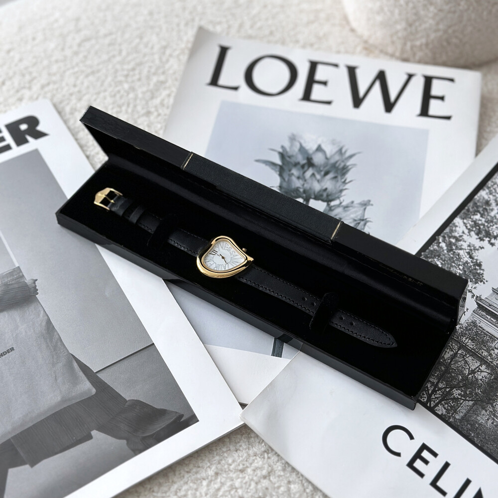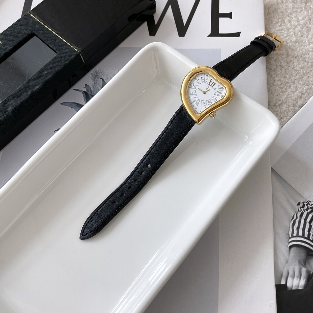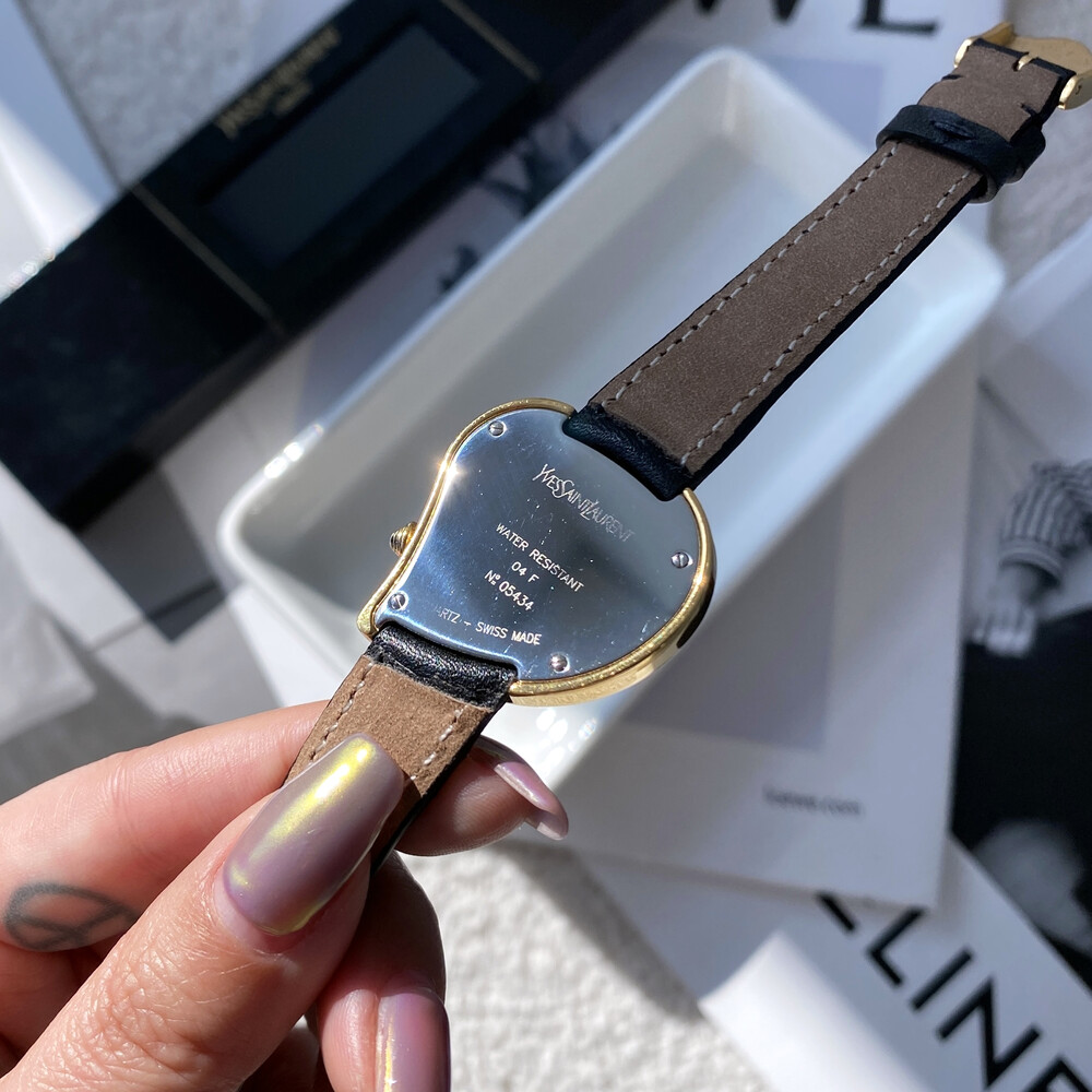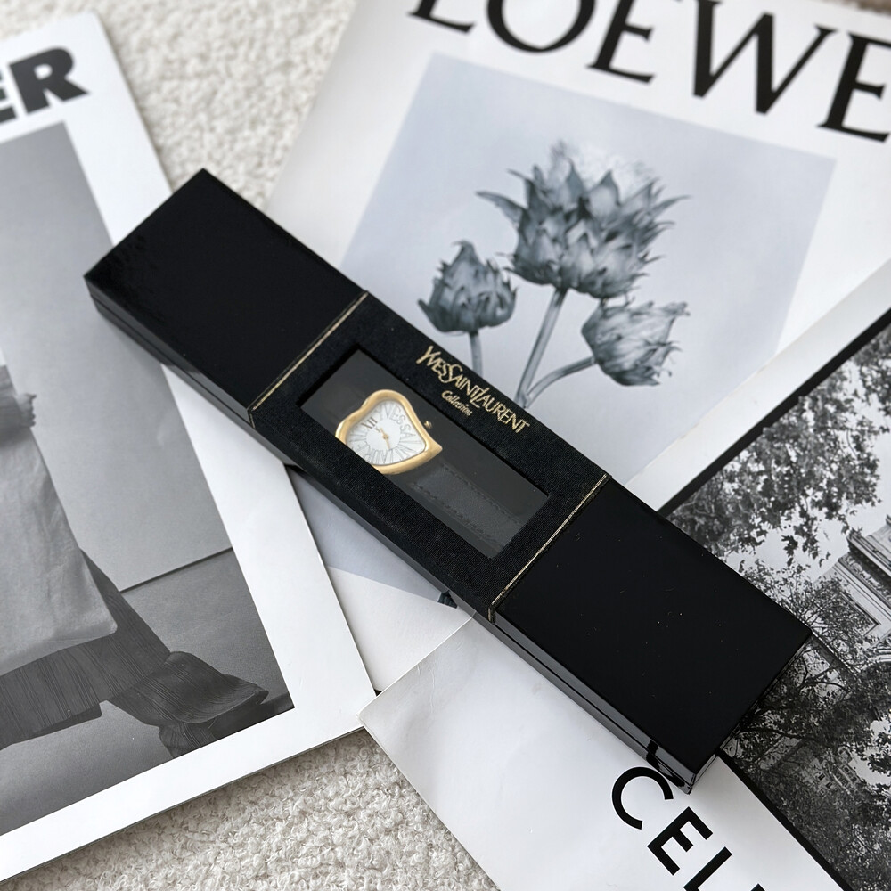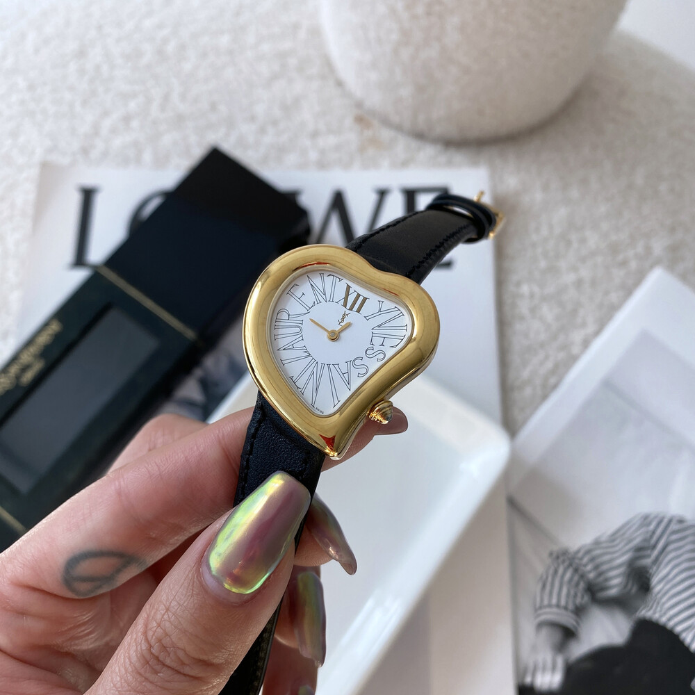 입생로랑 40주년을 기념하여 제작된 모델로 골드 톤 하트 케이스와 가죽 밴드,
