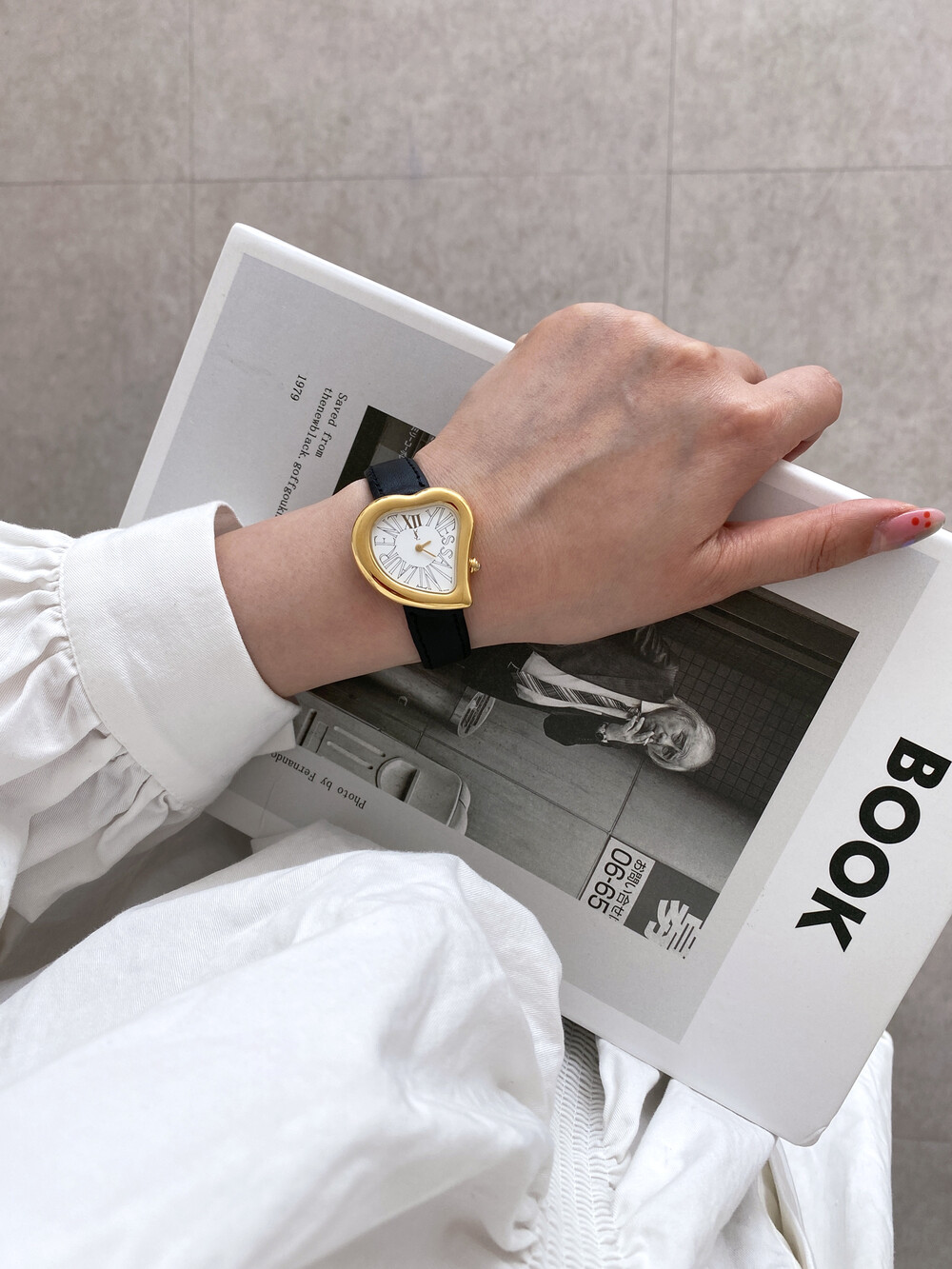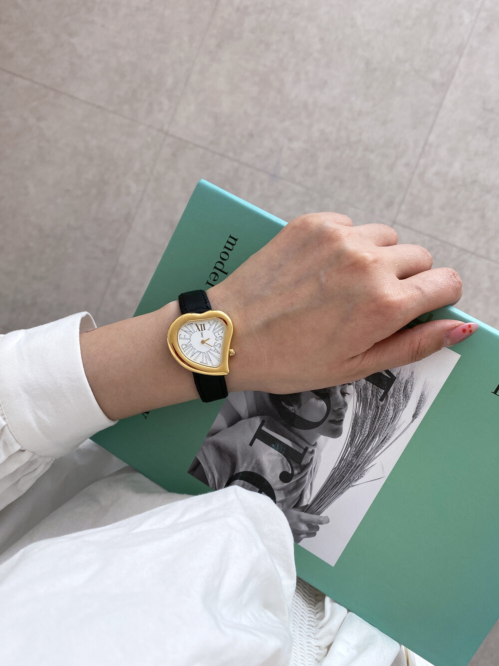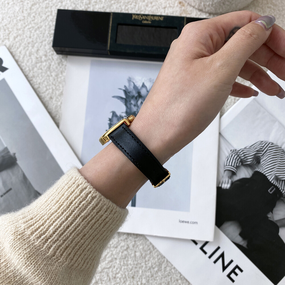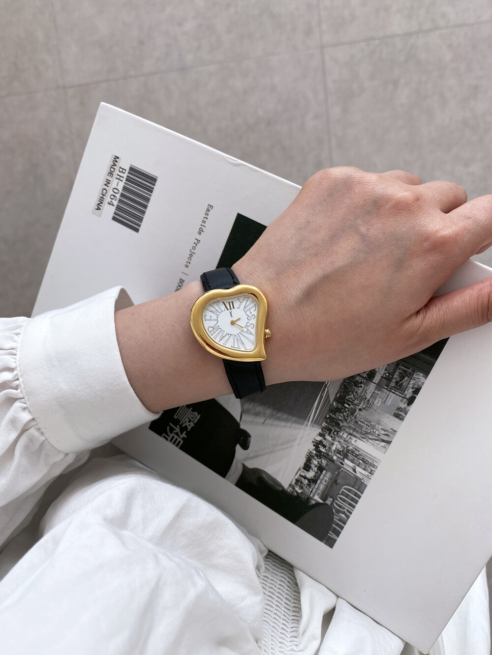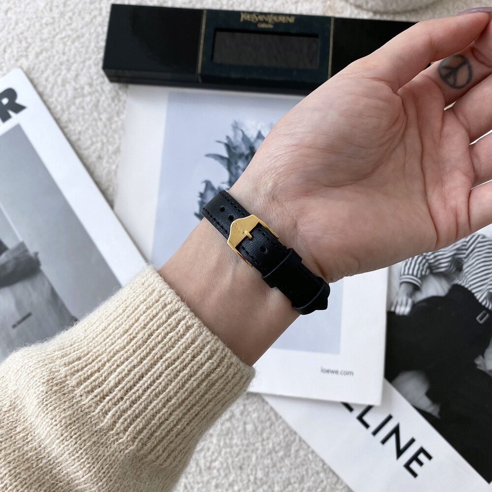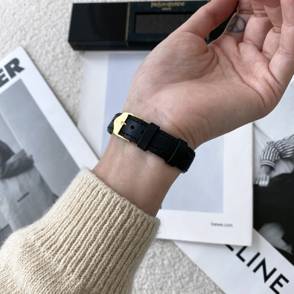 입생로랑 40주년을 기념하여 제작된 모델로 골드 톤 하트 케이스와 가죽 밴드,