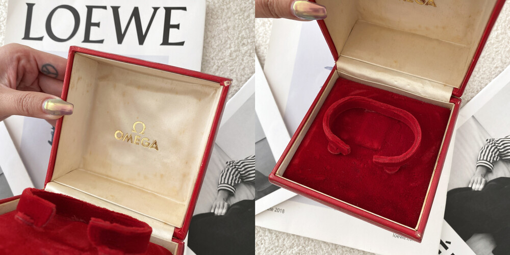 오메가 시계 케이스, 오메가 보증서가 포함된 제품입니다.