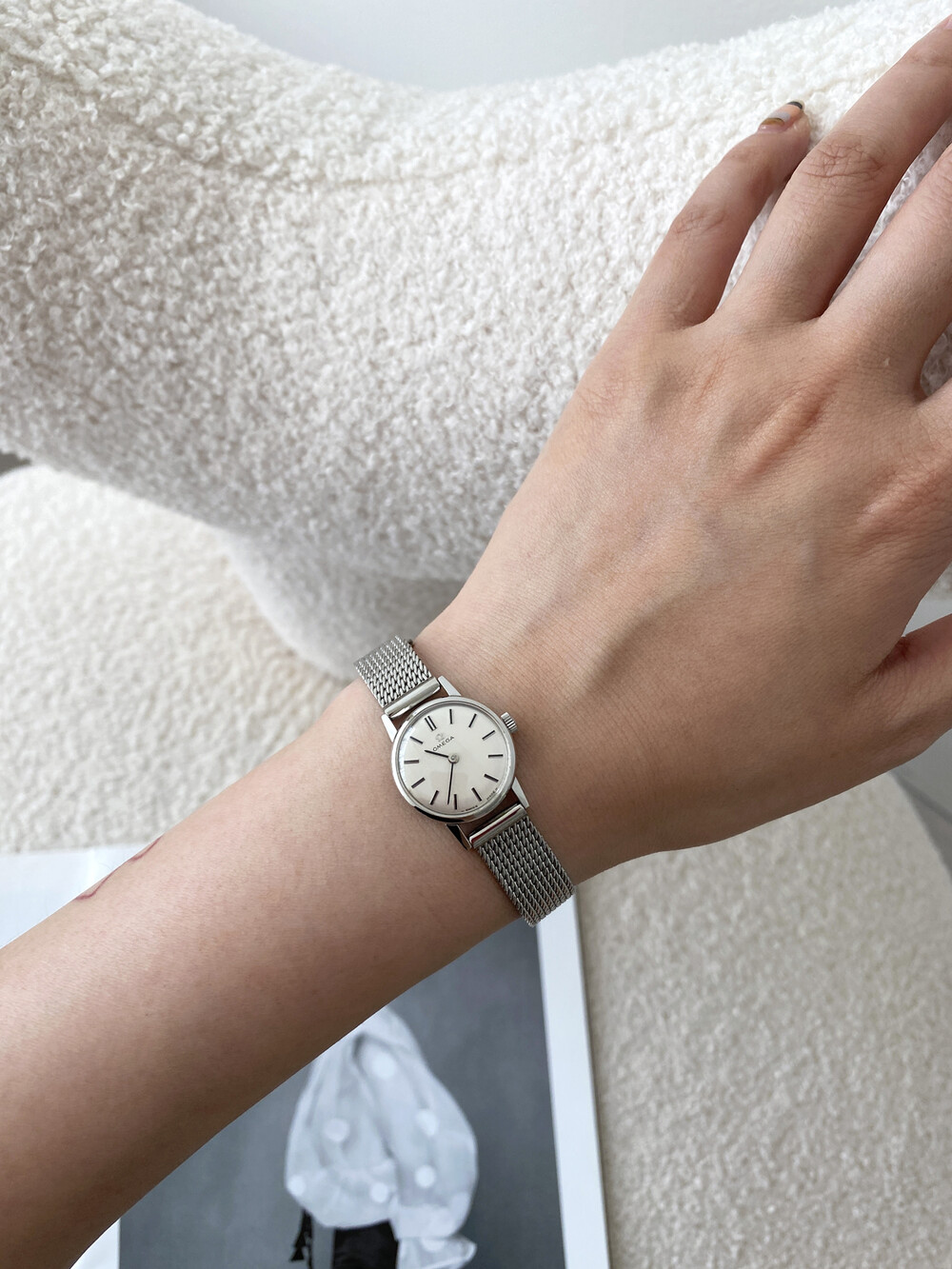 1966년도에 제작된 오메가 모델로 실버톤 다이얼 위를 장식하는 오메가 심볼이 매력적인 모델입니다.