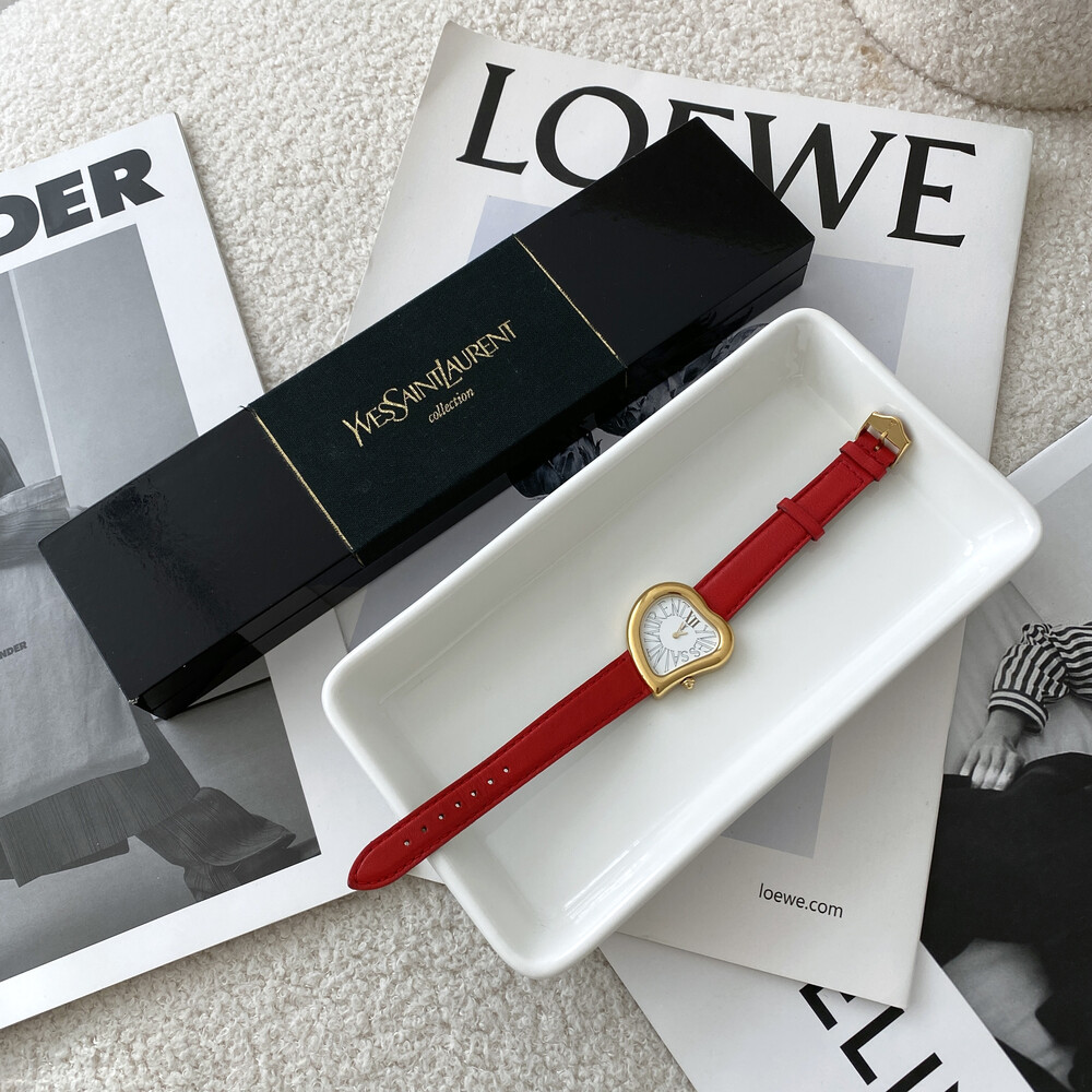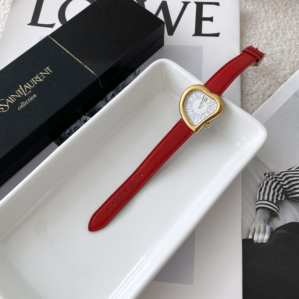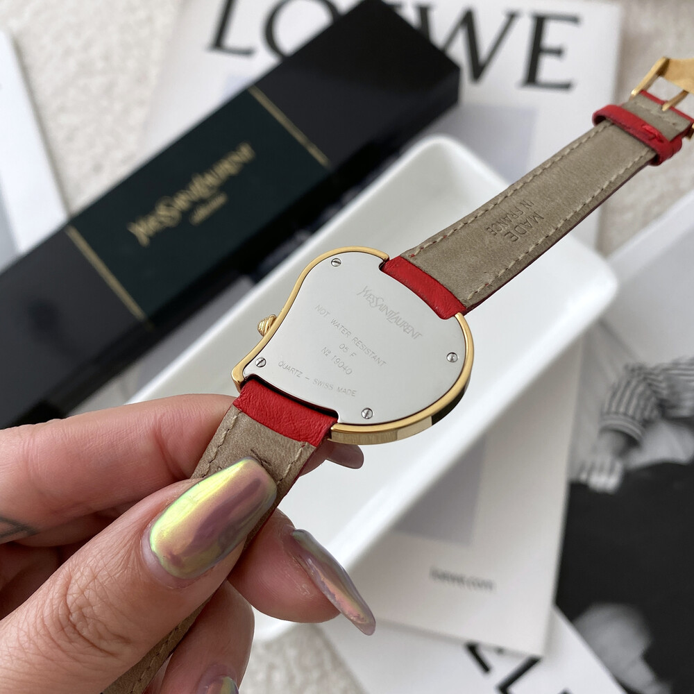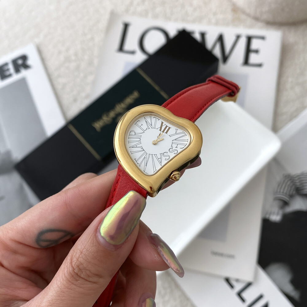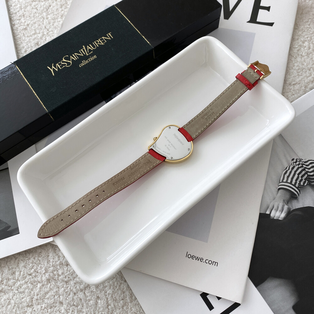 입생로랑 40주년을 기념하여 제작된 모델로 골드 톤 하트 케이스와 가죽 밴드,