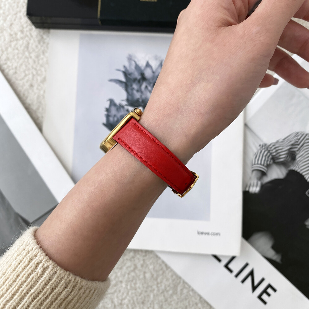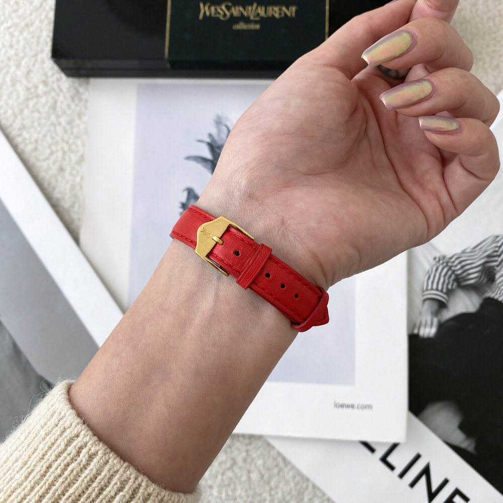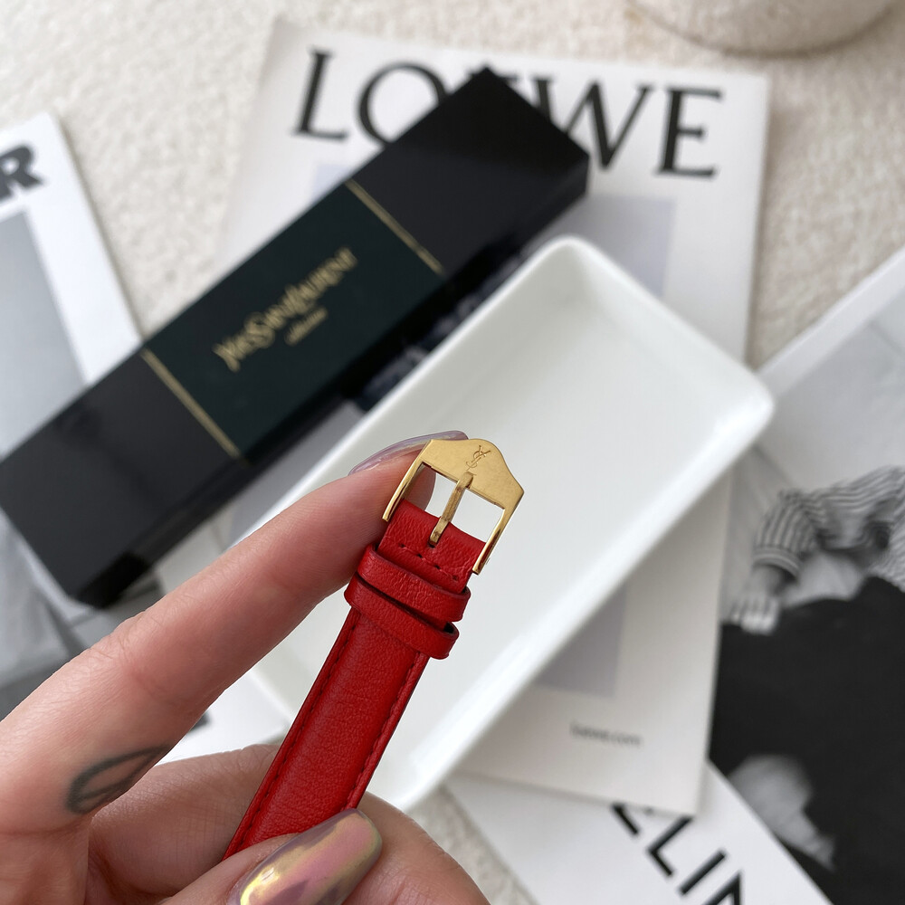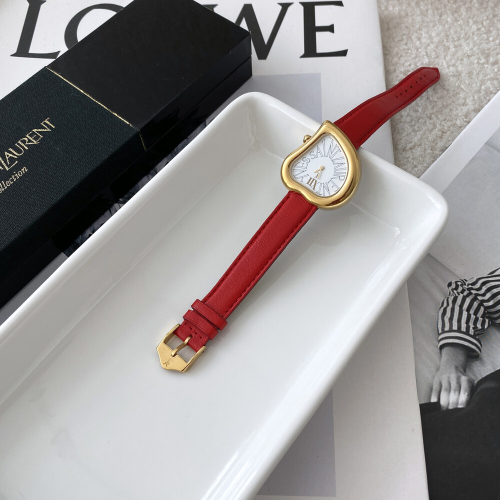 입생로랑 40주년을 기념하여 제작된 모델로 골드 톤 하트 케이스와 가죽 밴드,